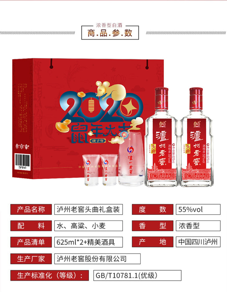 【会员日7折】55度 泸州老窖 头曲礼盒套装 625ml*2 泸州老窖官方旗舰店