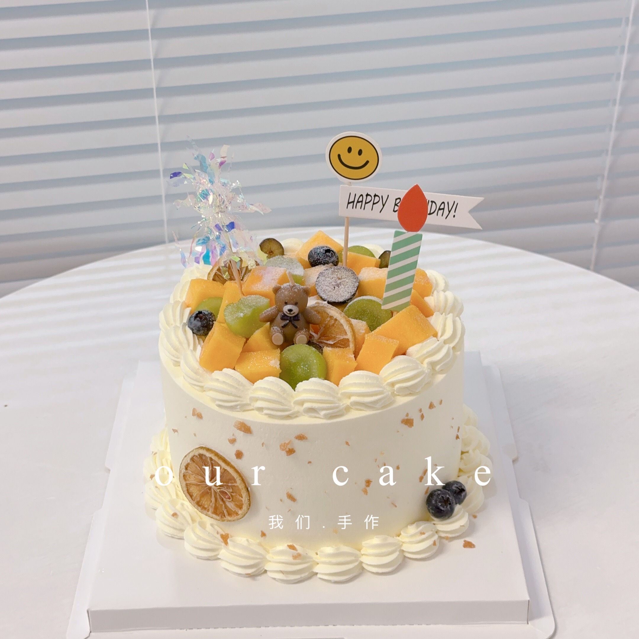 小熊蜡烛水果多多蛋糕(按当季水果装饰)-低糖处理无添加