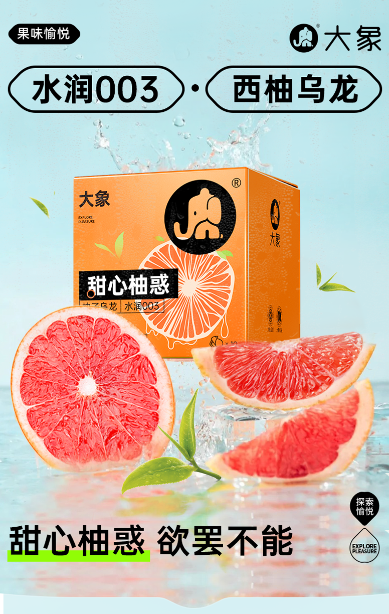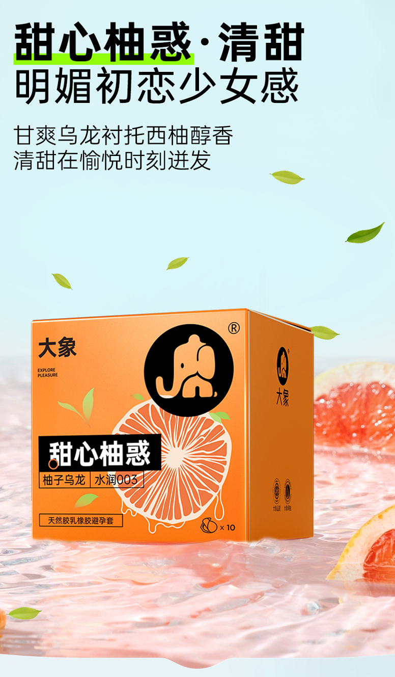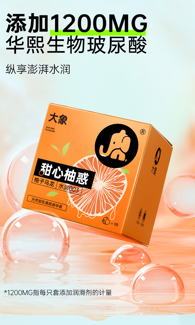 【双旦狂欢·钜惠来袭】 大象果茶系列避孕套 甜心柚惑 003超薄 1200㎎玻尿酸润滑