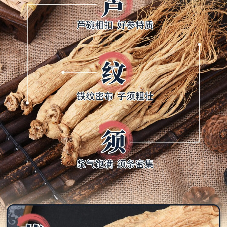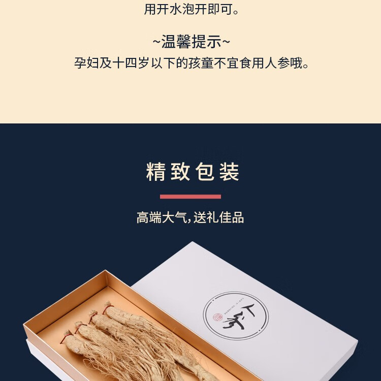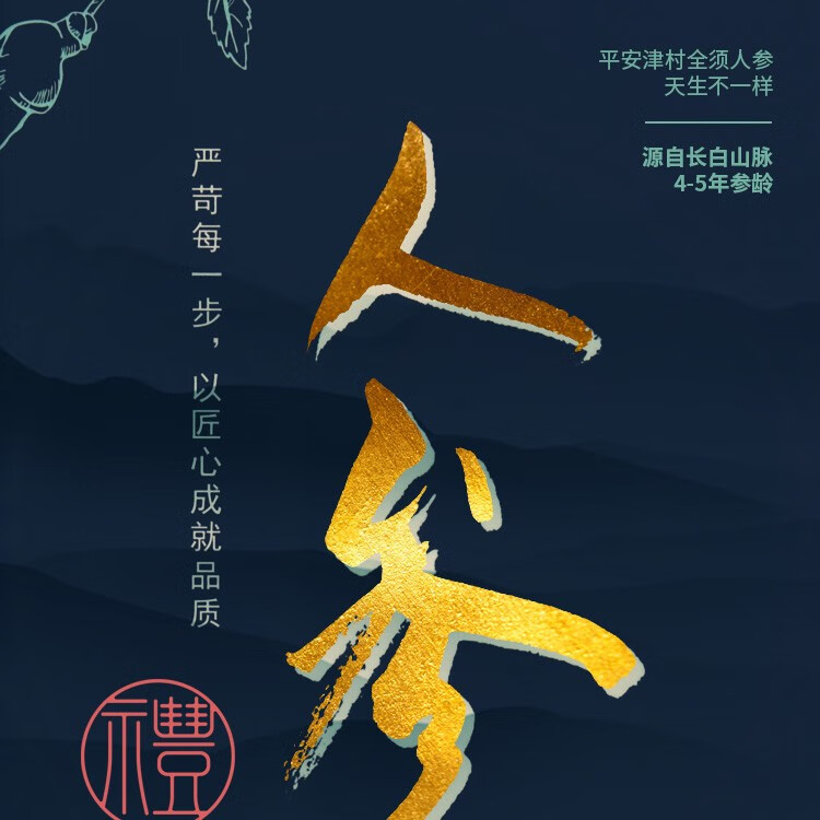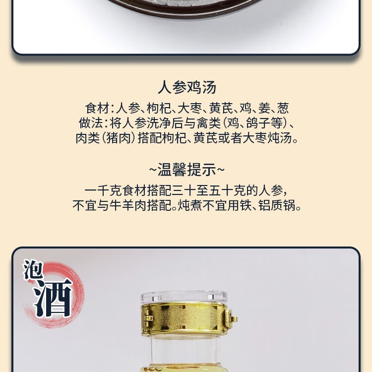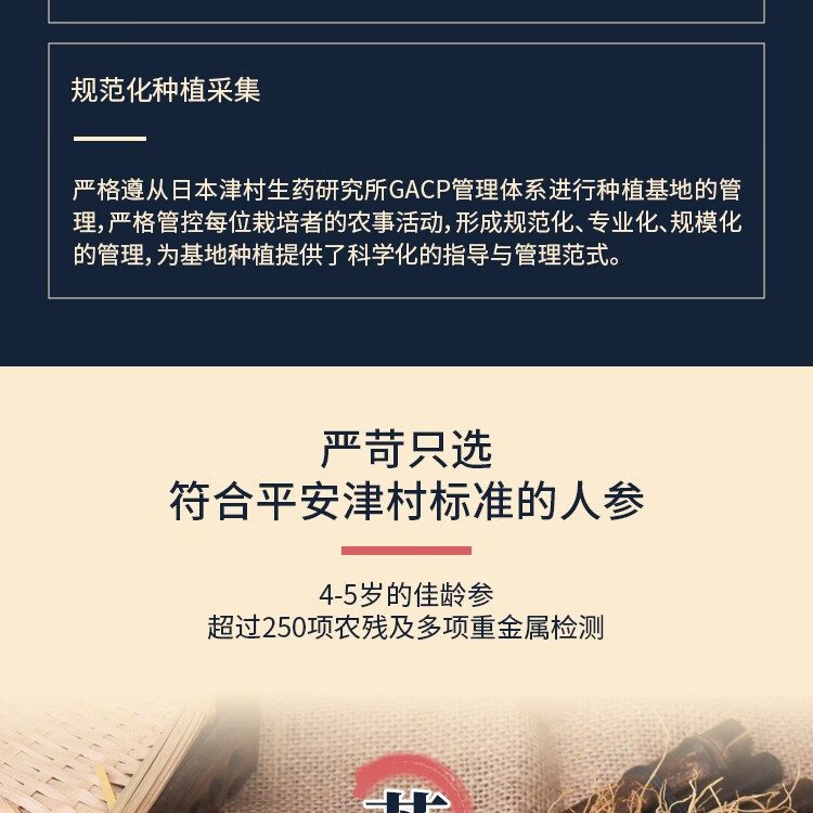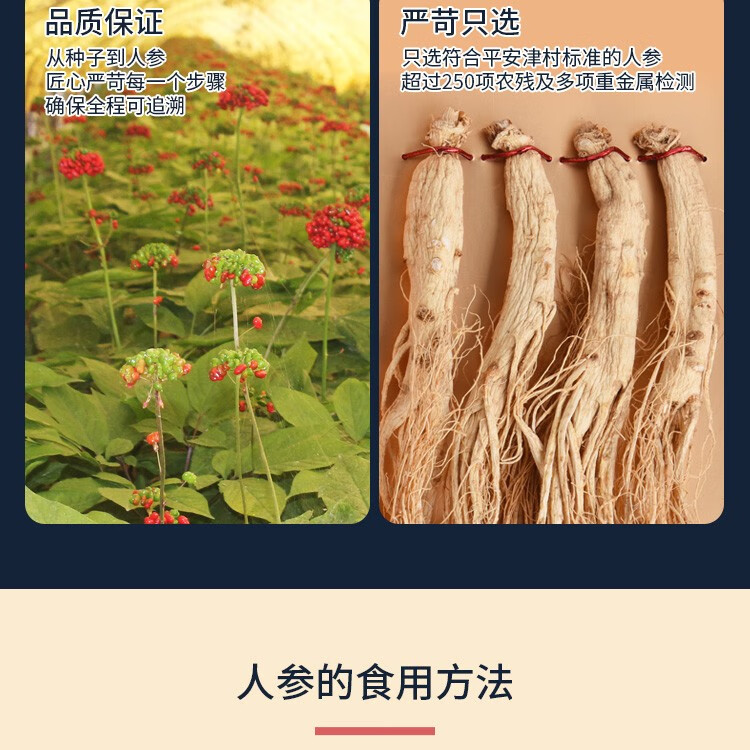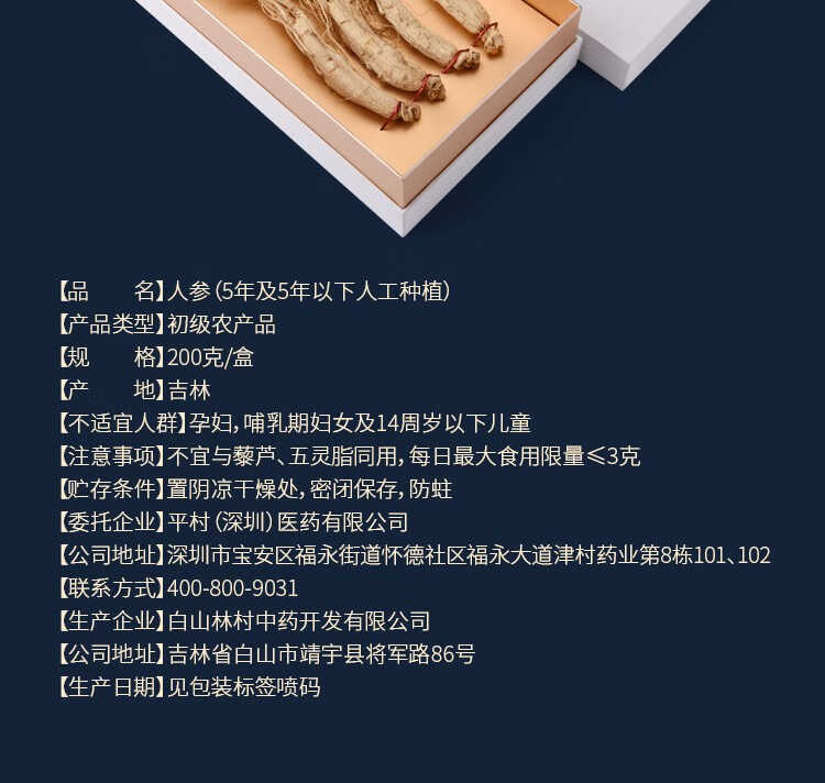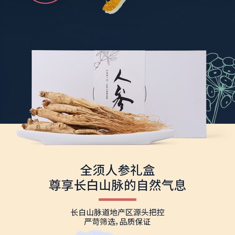平安津村全须人参礼盒200g/盒(25g*8支)长白山脉人参泡酒煲汤整支干人参4-5年参龄送礼佳品