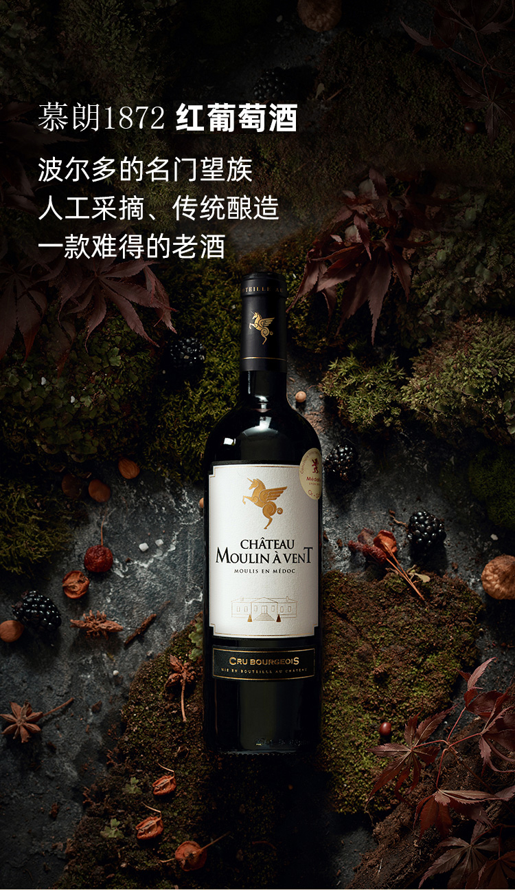 波尔多红葡萄酒 慕朗1872干红单支礼盒12.5%vol 750ml