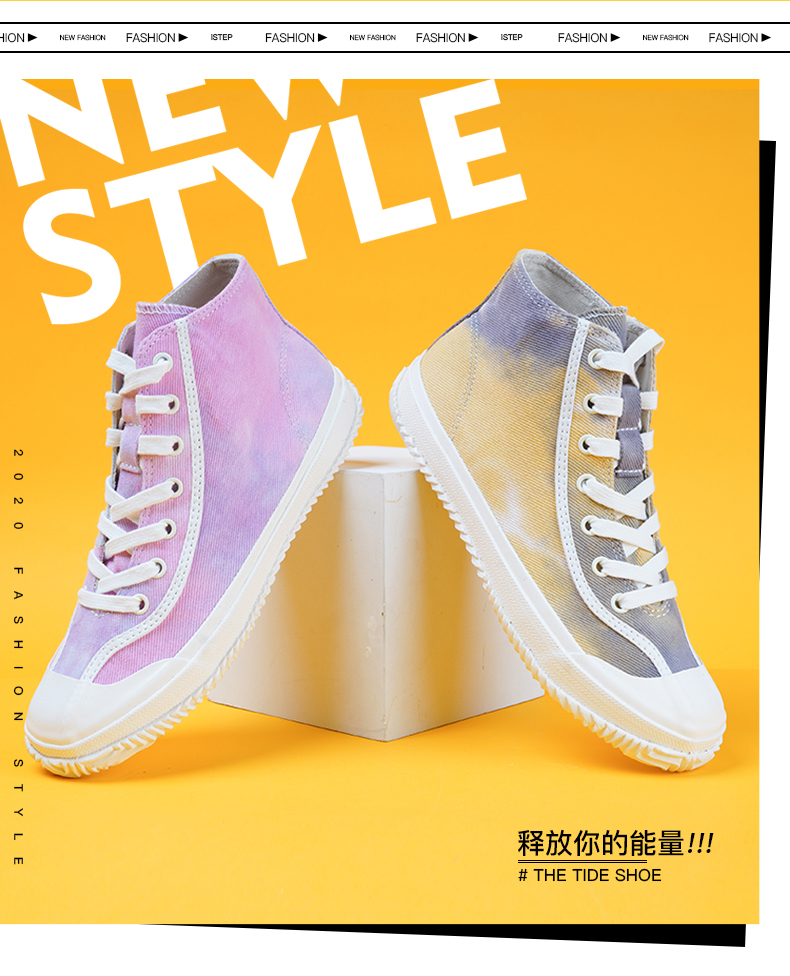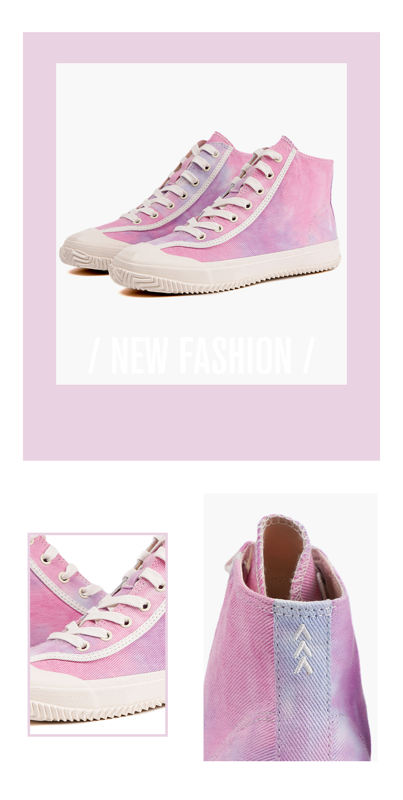 iSTEP女鞋星空帆布鞋女高帮粉色潮流学生2023秋季新款板鞋女ins潮