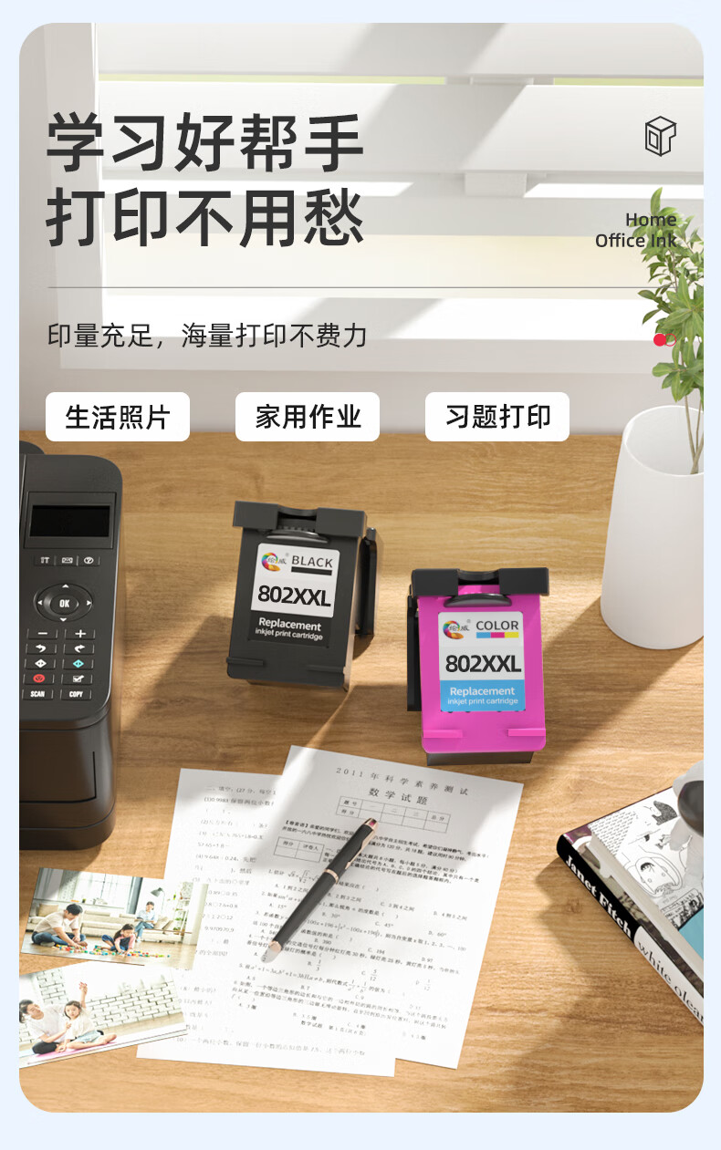 绘威802XXL加大容量黑色墨盒可加墨适用惠普HP Deskjet802s 1000 1010 1011 1050 2000 2050 1510 1511打印机
