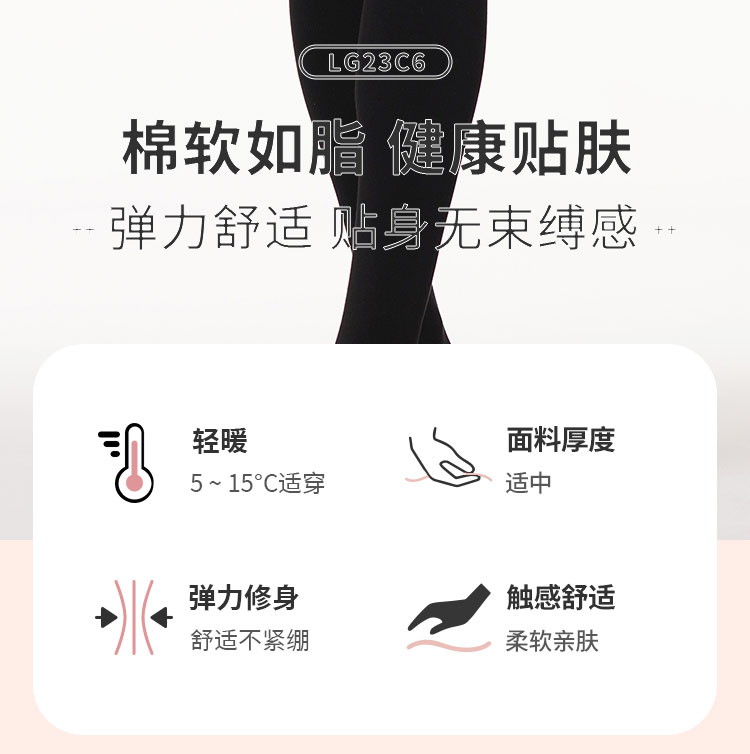 都市丽人基础系列舒暖负5度至5度中连裤袜粘纤中裤袜打底裤LG23C6