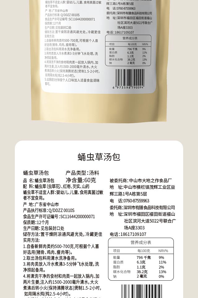 梧下农庄蛹虫草汤包60g