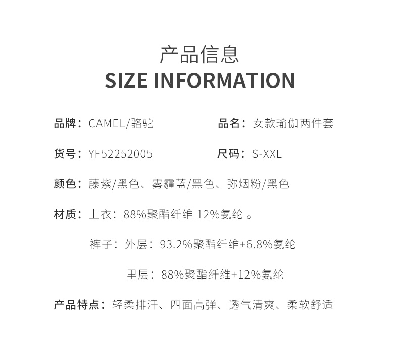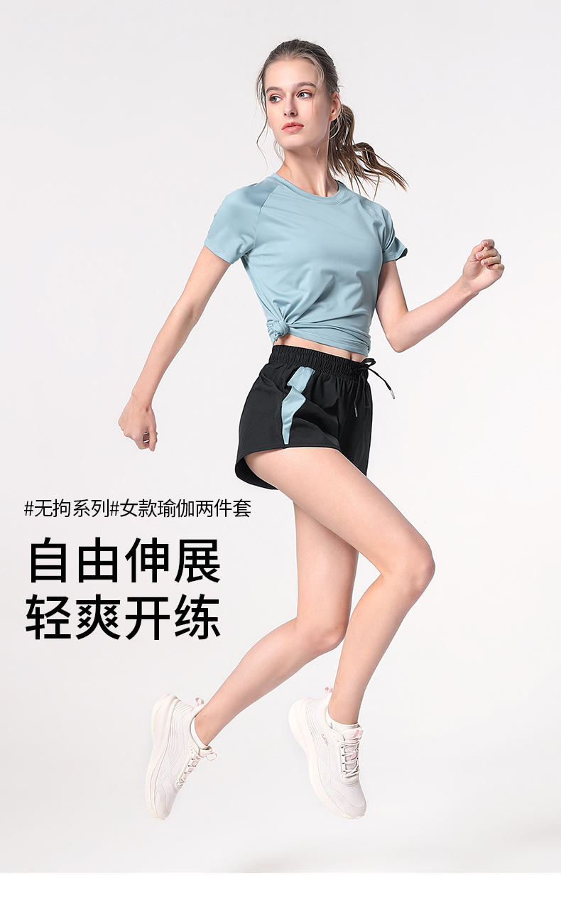 骆驼瑜伽服套装女夏季跑步服透气宽松健身服短袖速干衣显瘦运动服 YF52252005