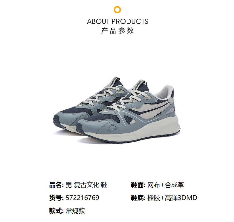 361度男鞋运动鞋防滑高弹2022春网面透气轻便复古文化鞋572216769