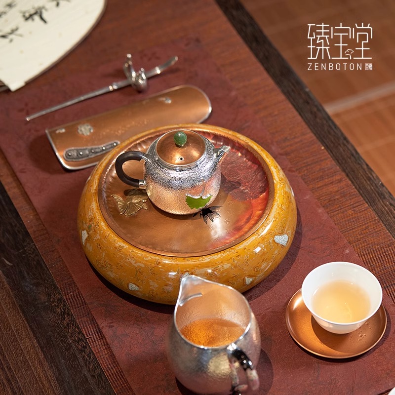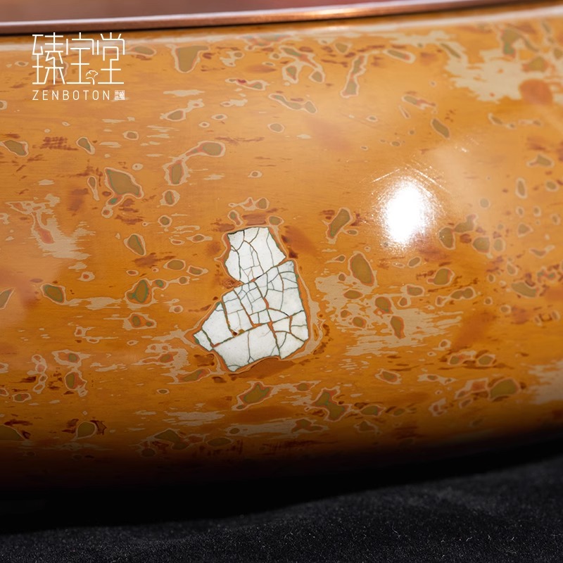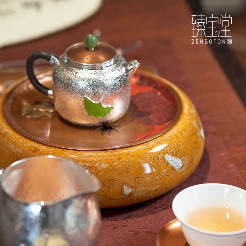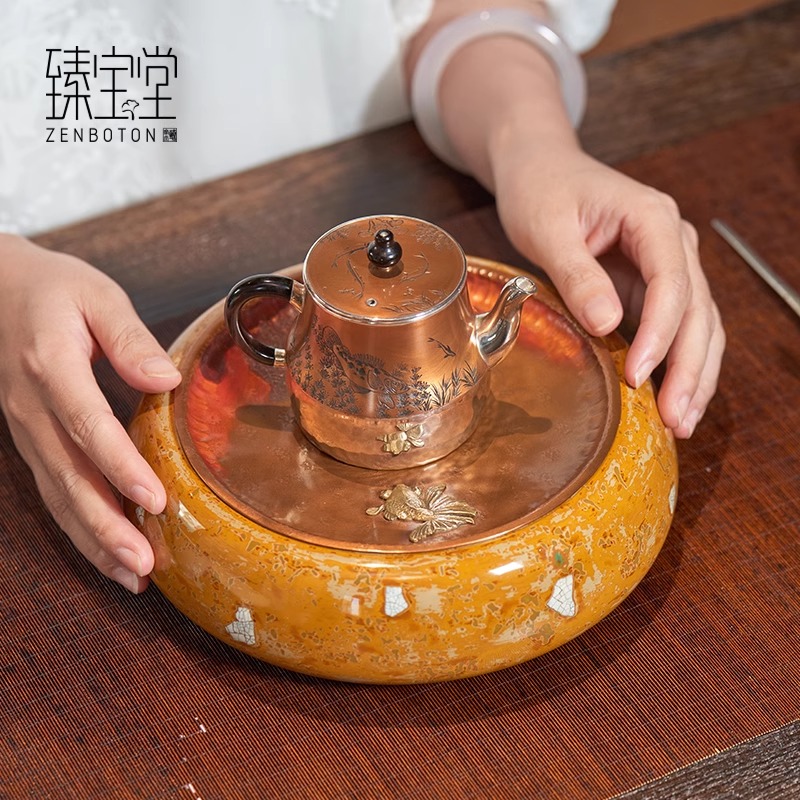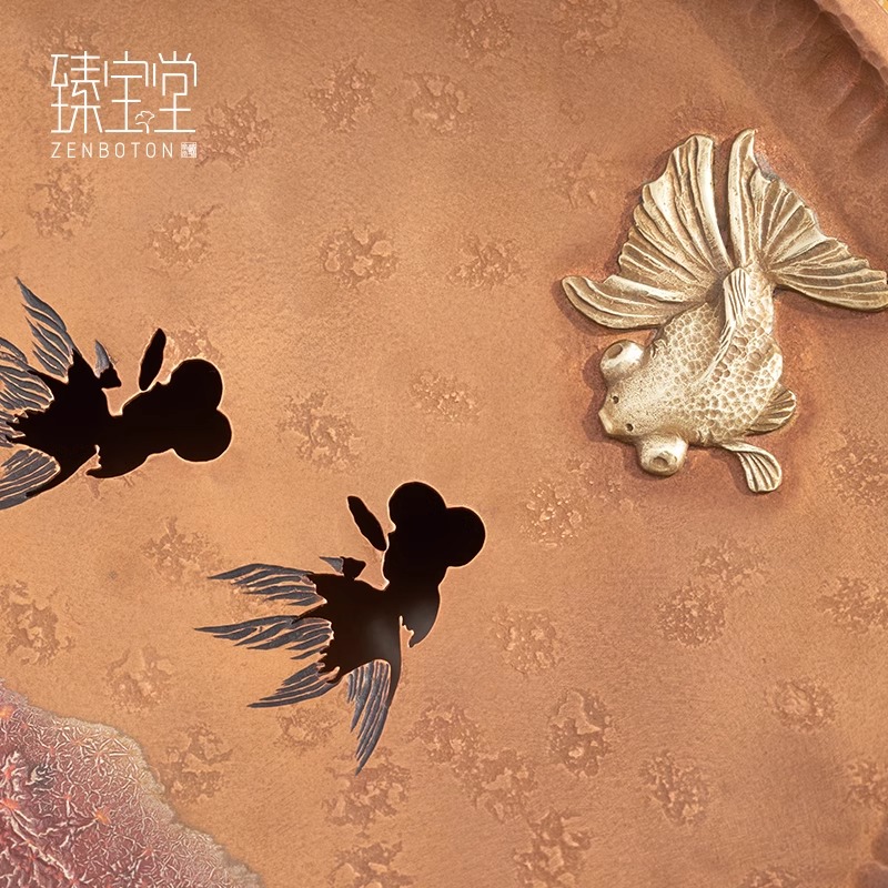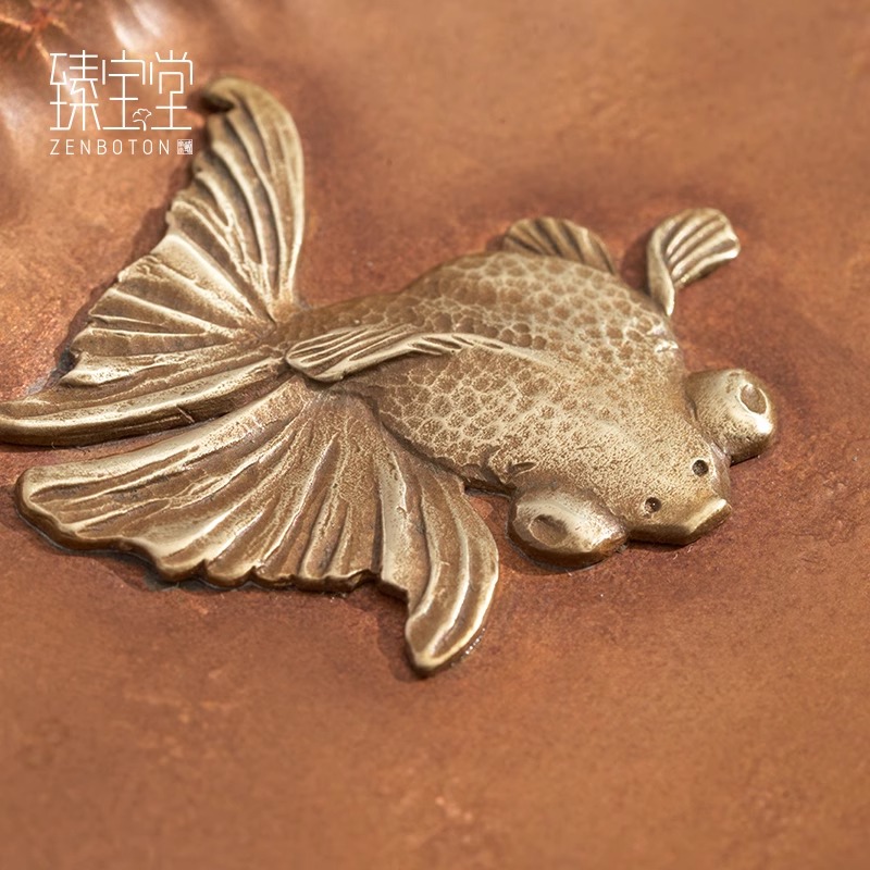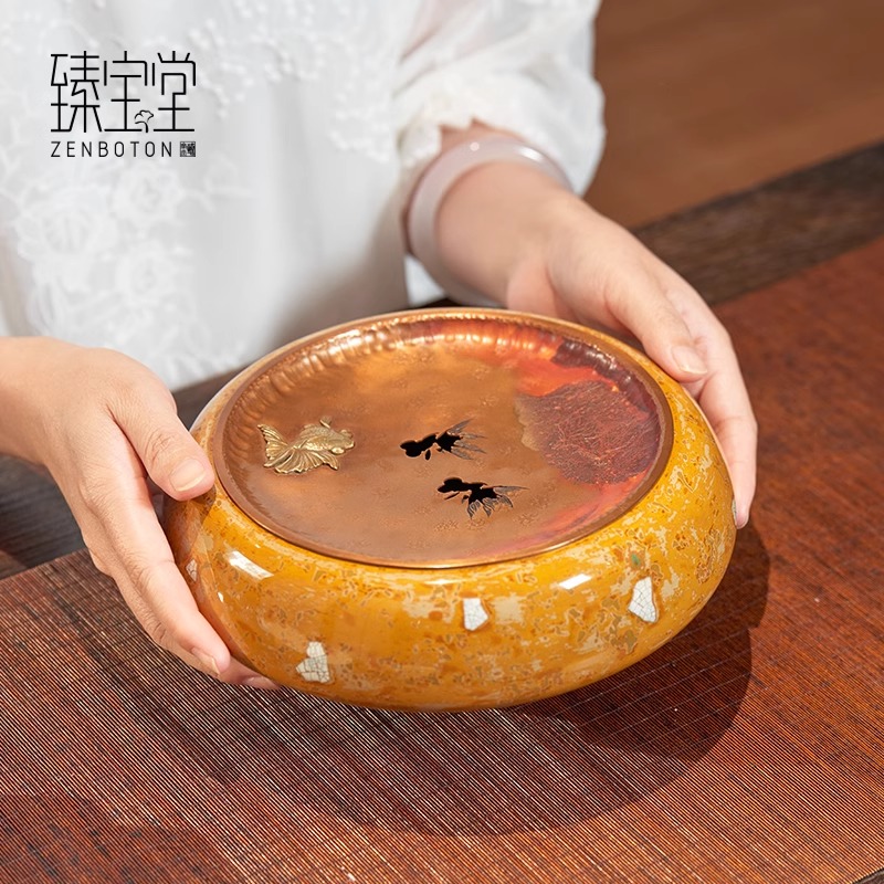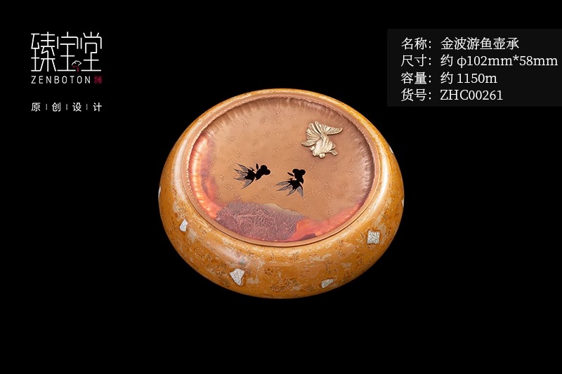 臻宝堂壶承大漆圆形干泡台纯手工金鱼养壶蓄水小茶盘高端茶具配件金波游鱼壶承