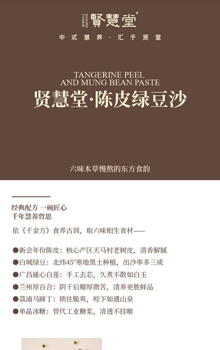 贤慧堂 陈皮绿豆沙200g/碗*8/箱