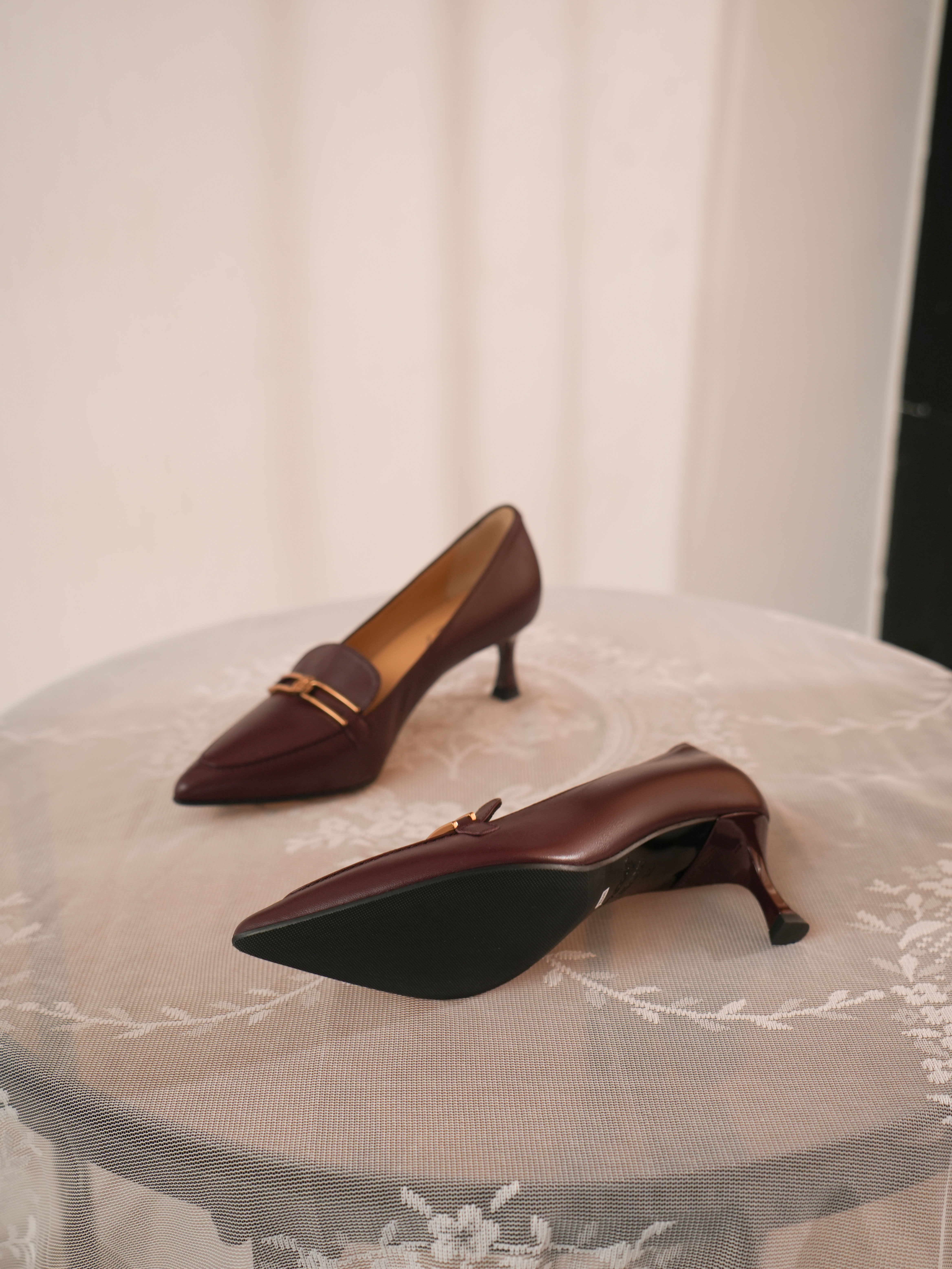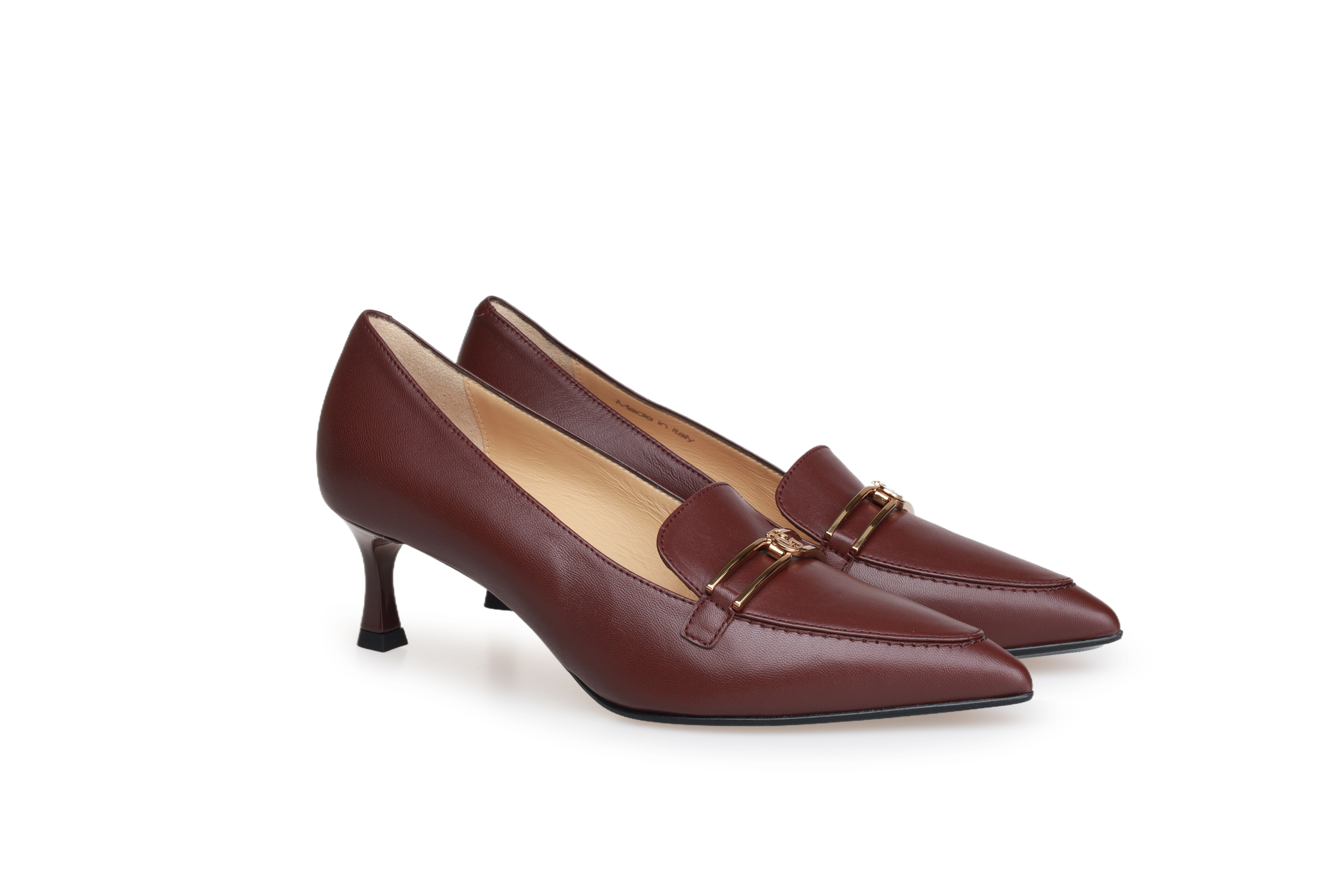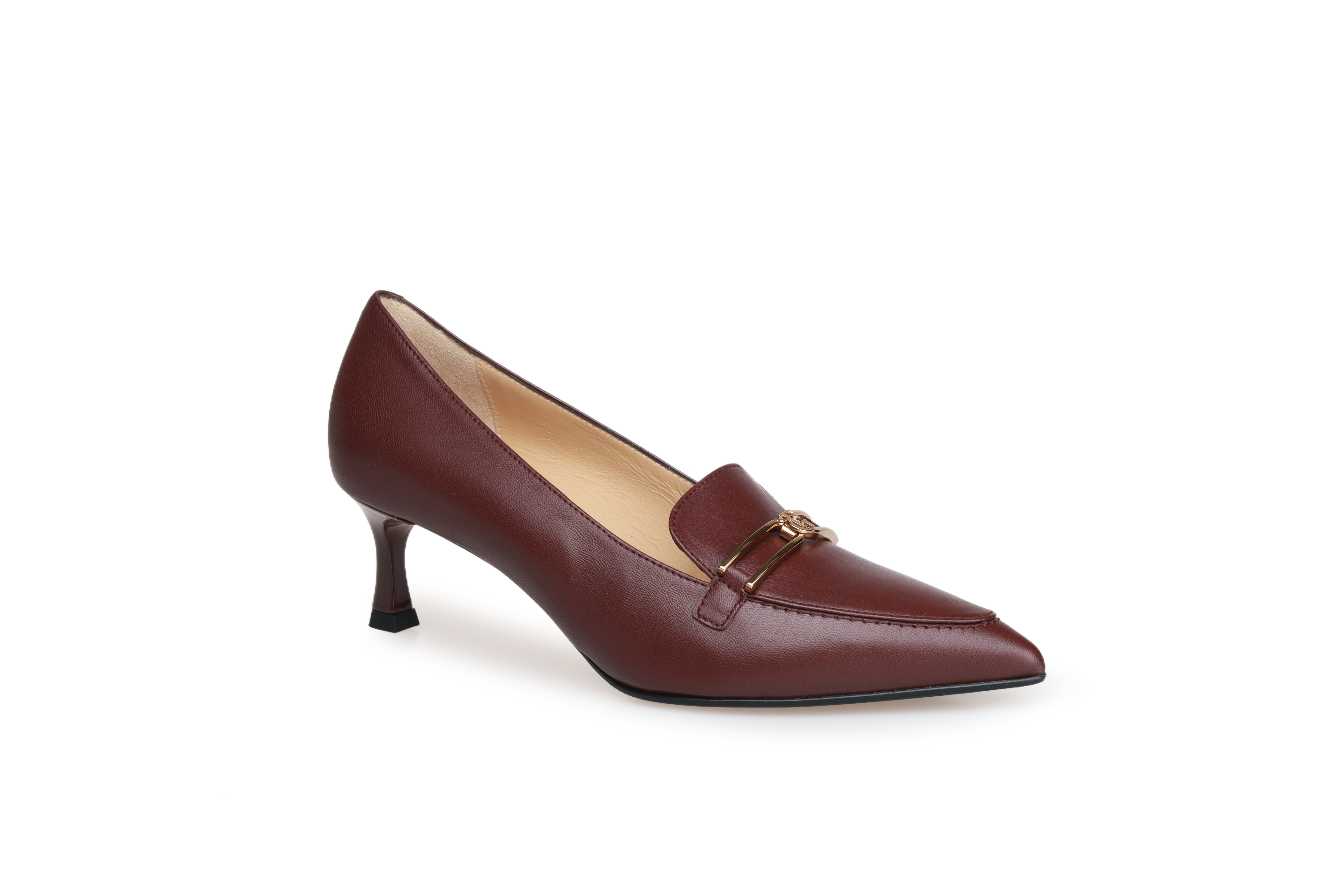 豪麟名鞋进口迪嘉女鞋皮鞋羊皮革W25445酒红色