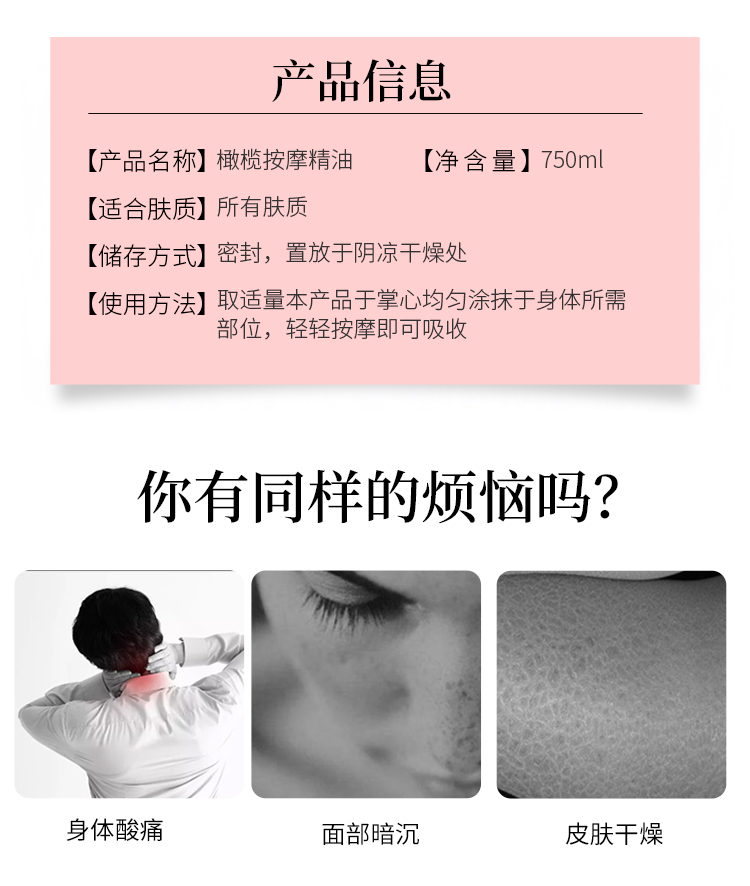 橄榄精油护肤按摩刮痧开背全身通经络推背推拿spa身体美容院用品