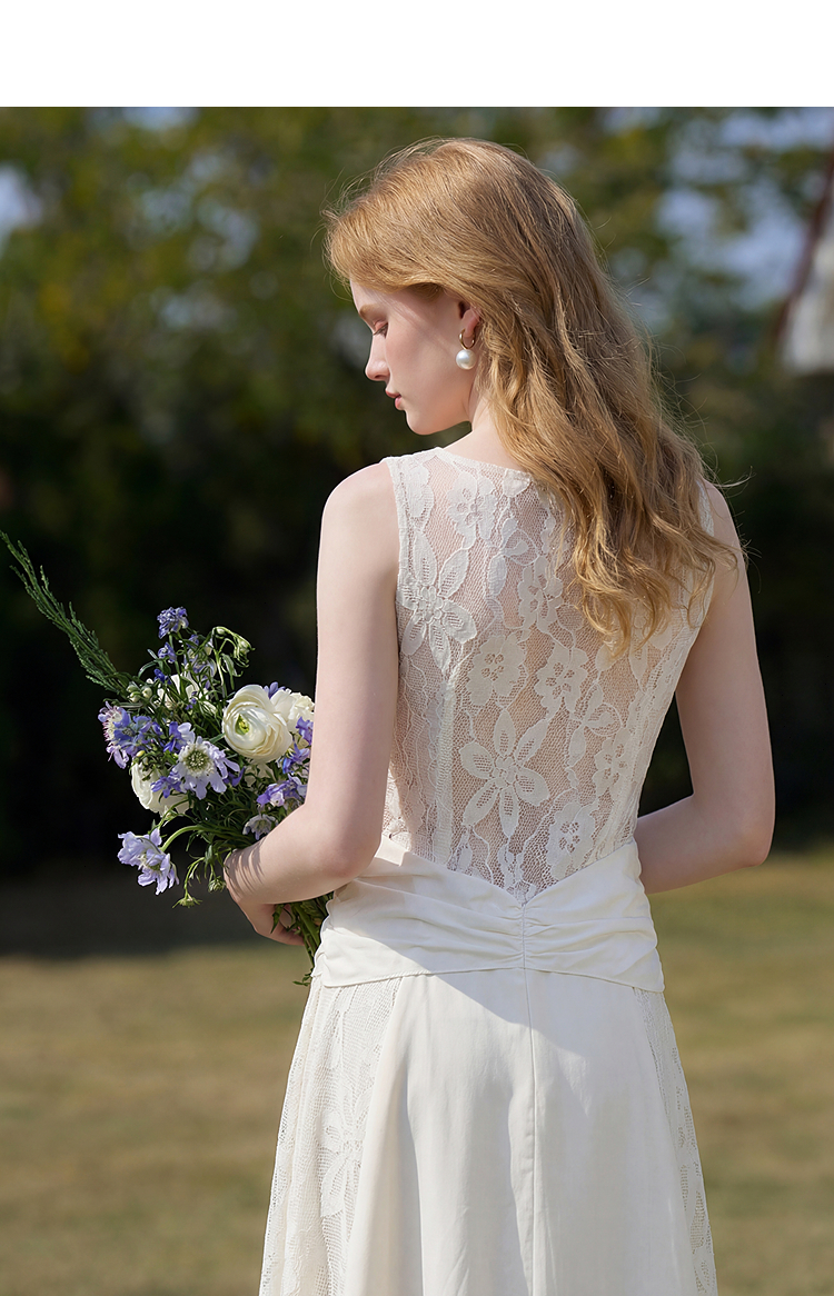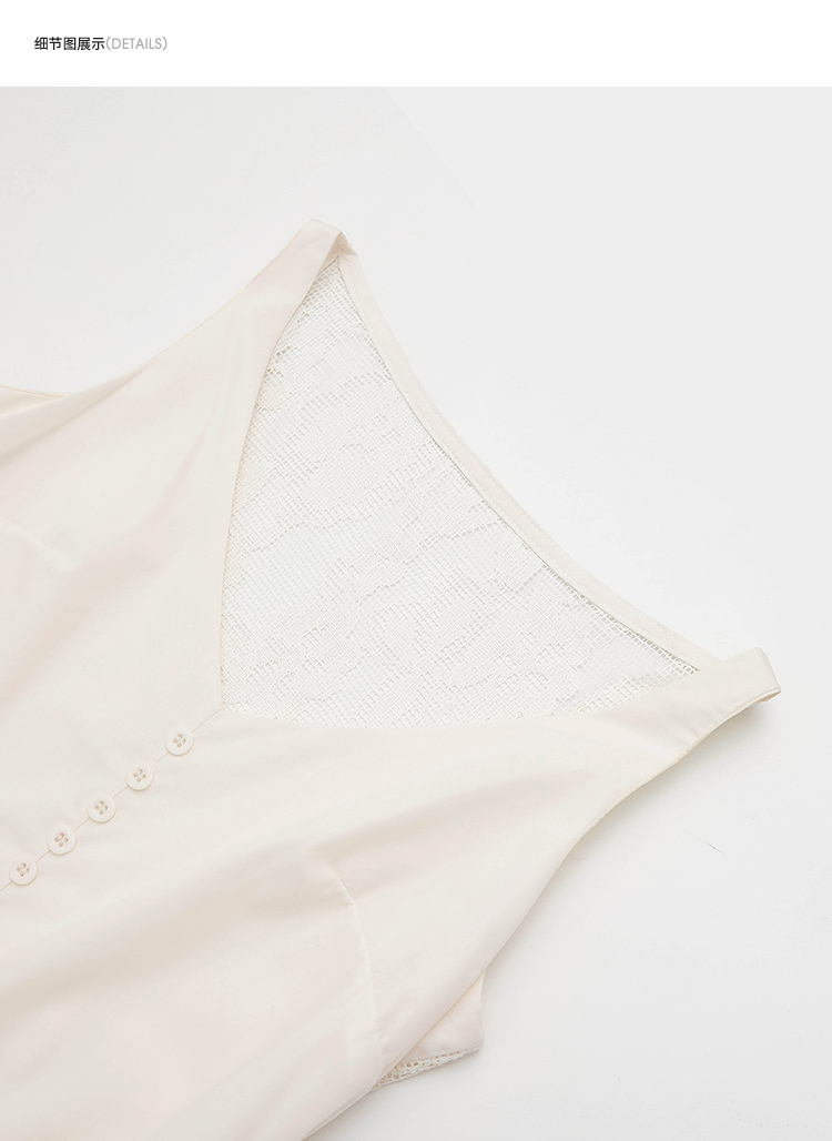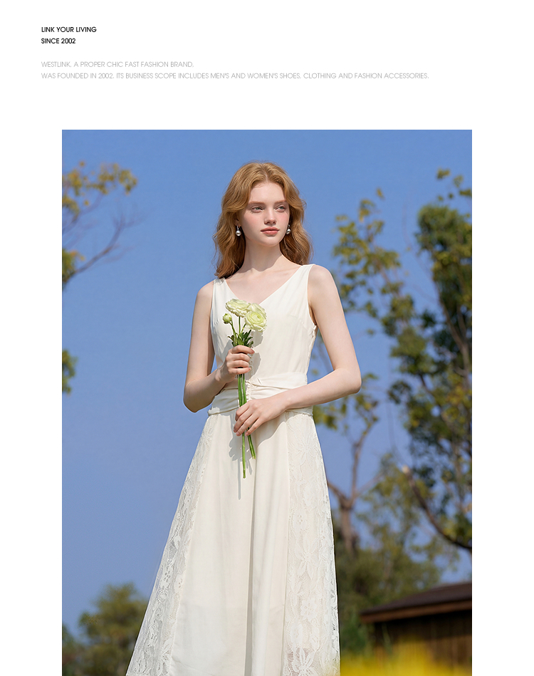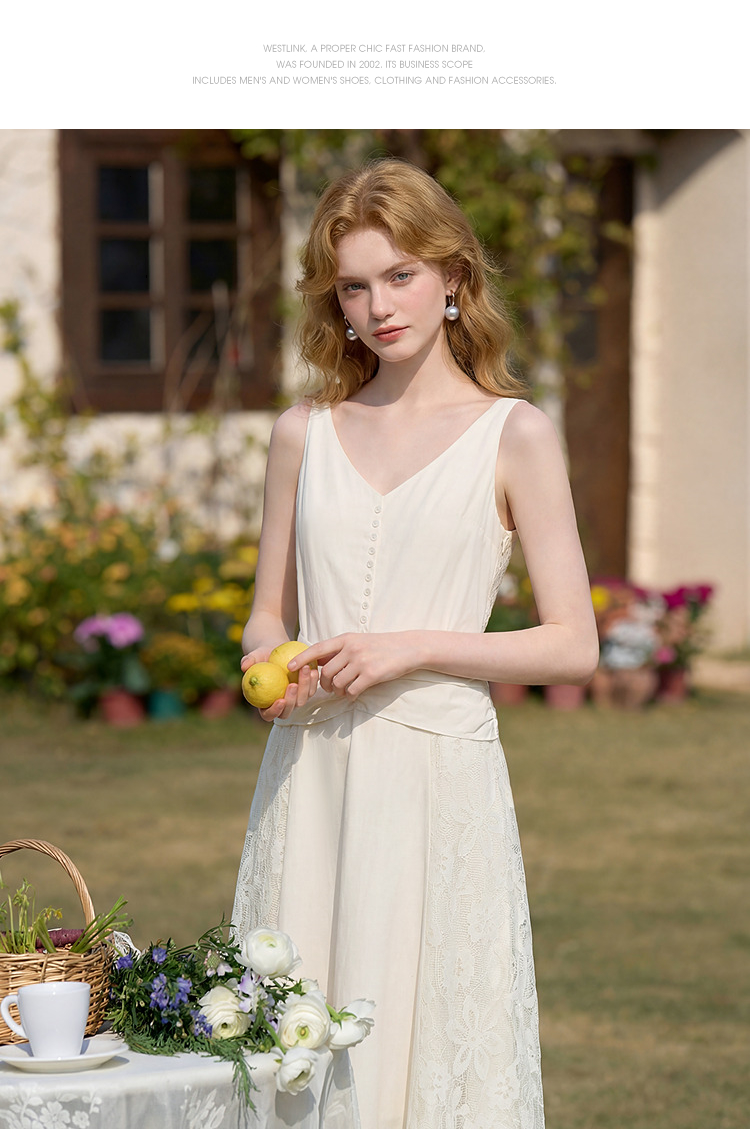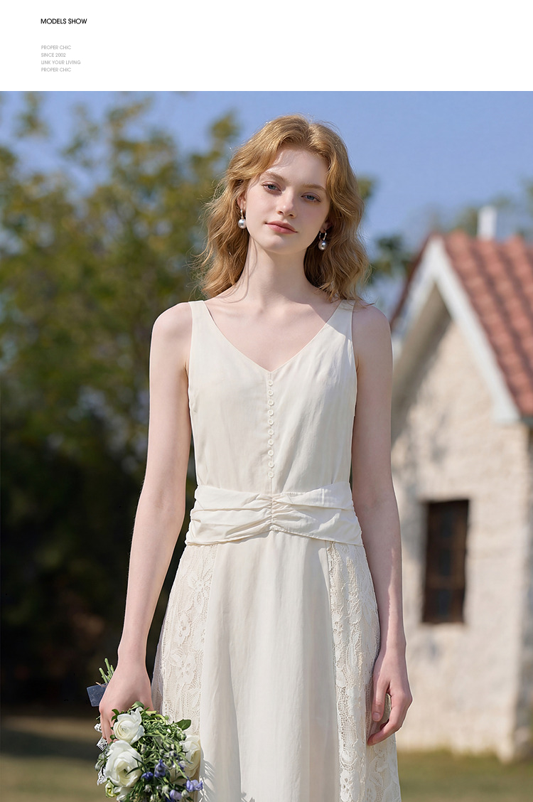 西遇法式V领吊带连衣裙女2026夏季新款重工蕾丝拼接气质背心长裙E0060266