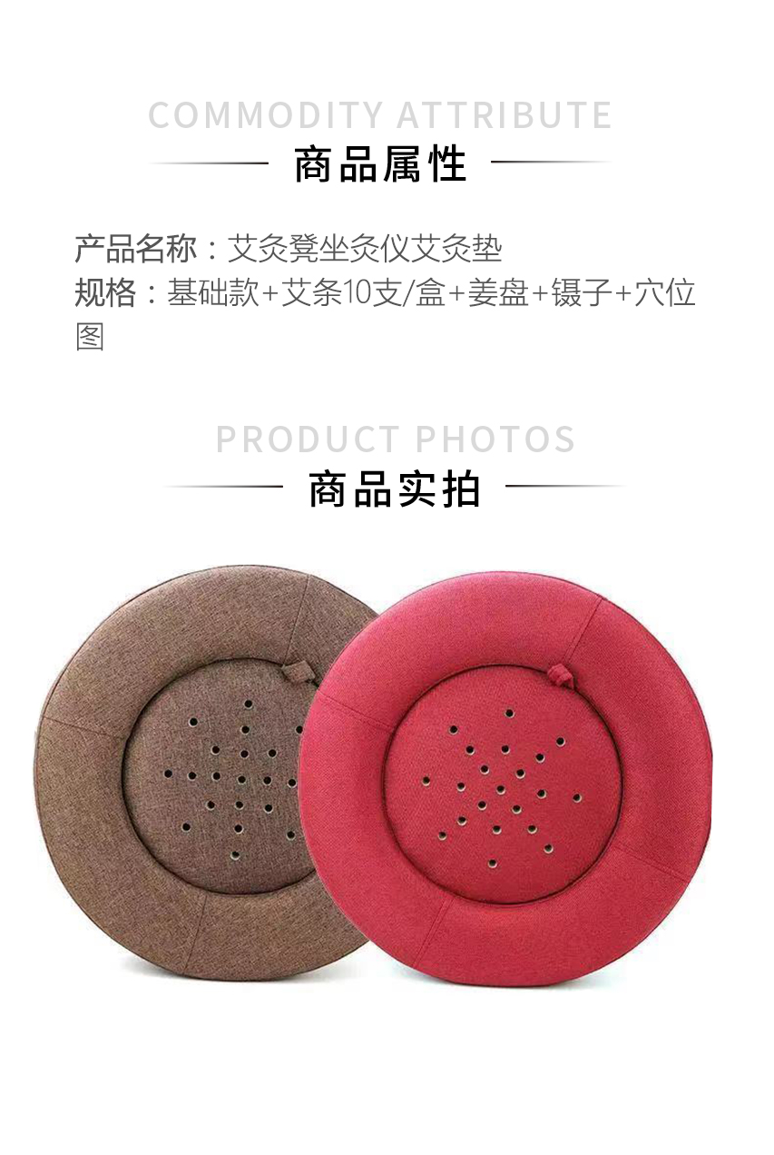 【1.11 应季好物】艾灸凳坐灸仪艾灸垫(基础款暗红+艾条10支/盒+姜盘+镊子+穴位图)/艾灸垫 艾条10支/盒*2盒