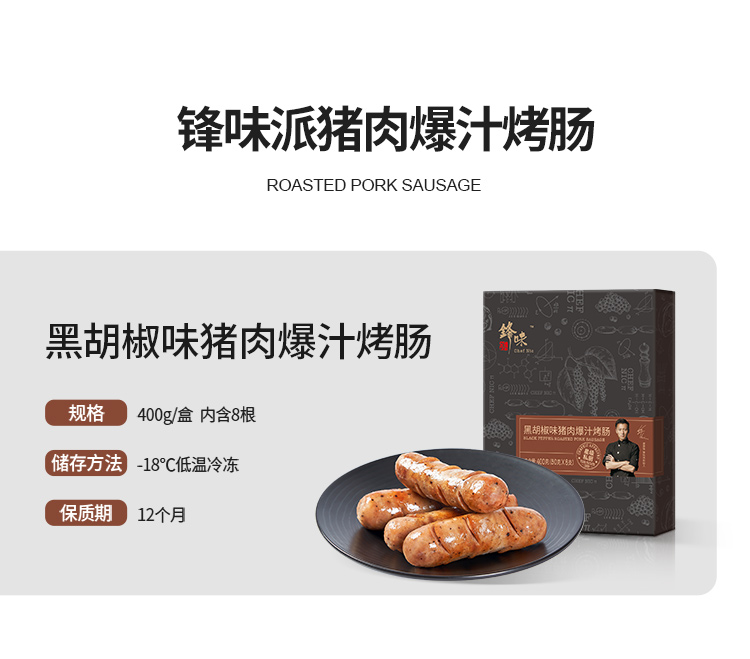 锋味派黑胡椒味猪肉爆汁烤肠 440g *1 +锋味派原味黑猪肉爆汁烤肠 440g*1