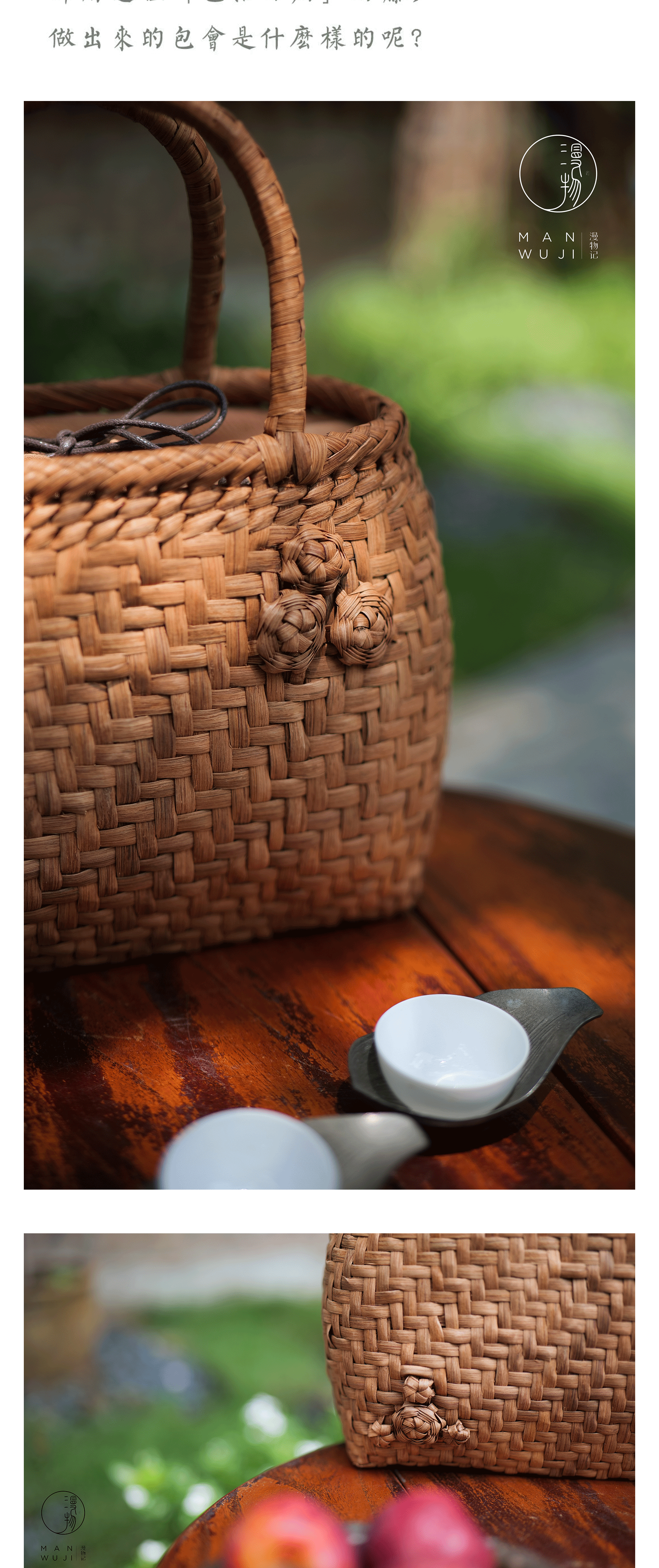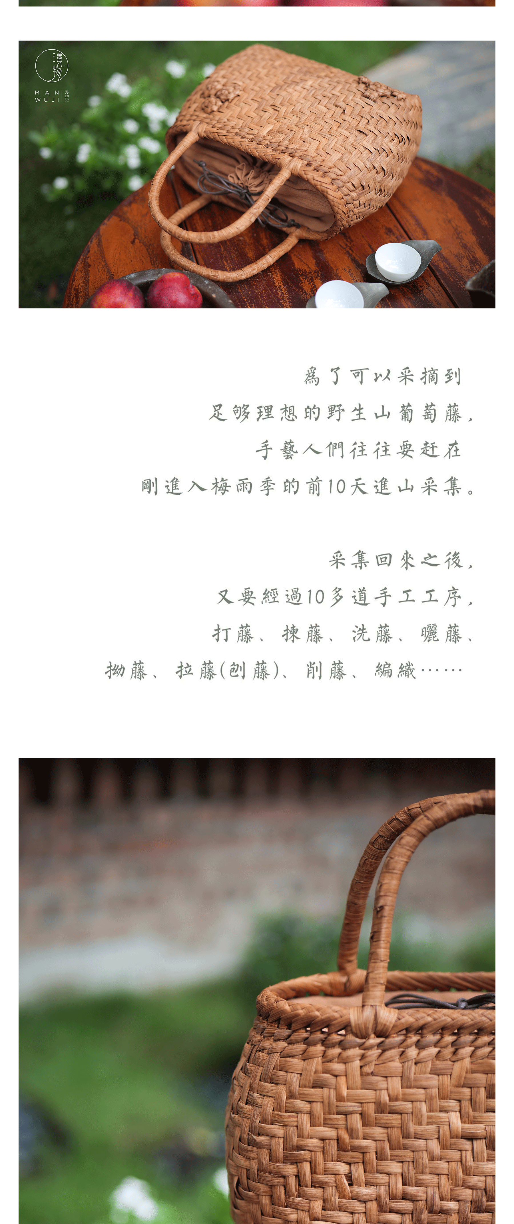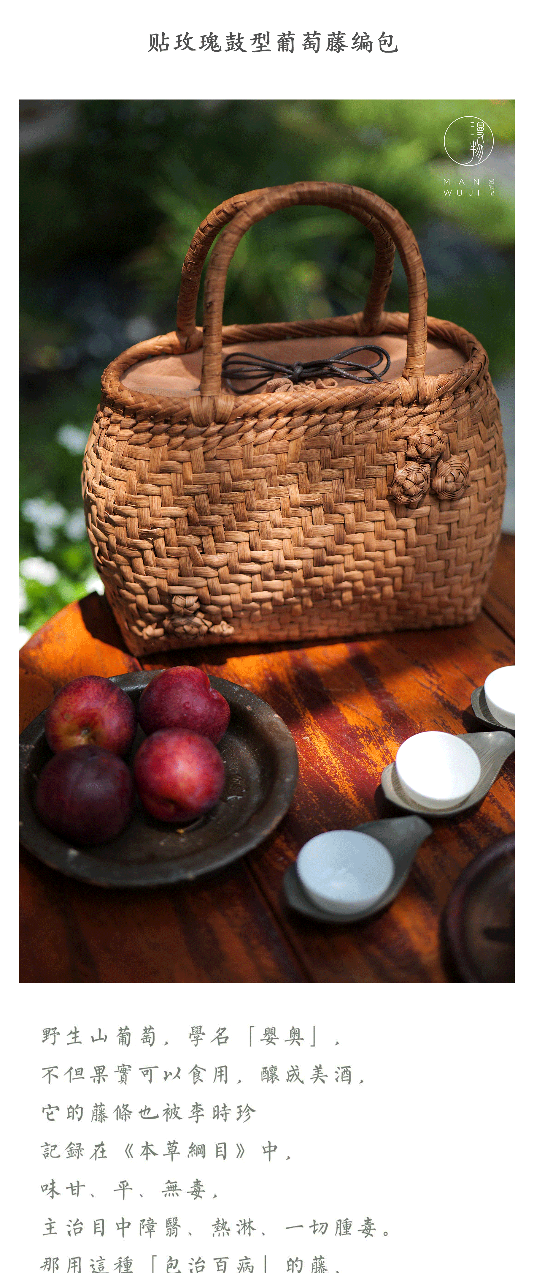 贴玫瑰鼓型葡萄藤编包