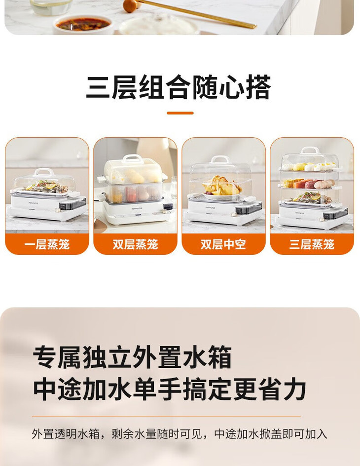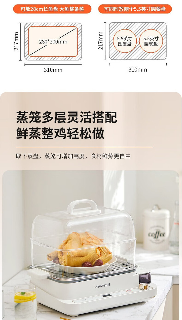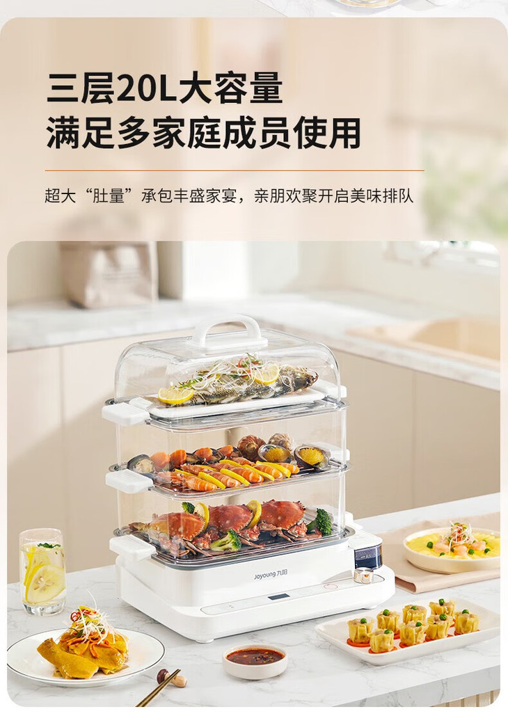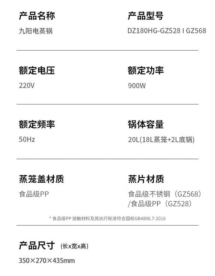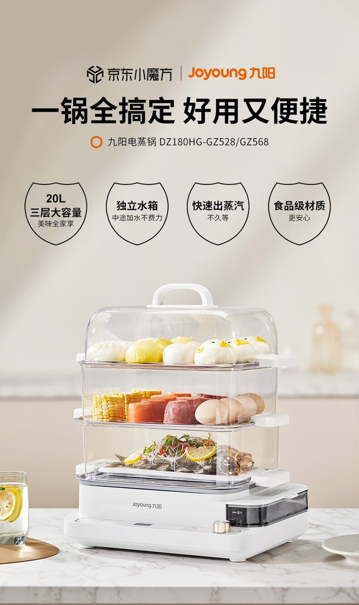 九阳(Joyoung) 电蒸锅多功能锅家用多用途锅电煮锅蒸汽锅电蒸箱电蒸笼电火锅20L大容量DZ180HG-GZ568 20L-不锈钢蒸格