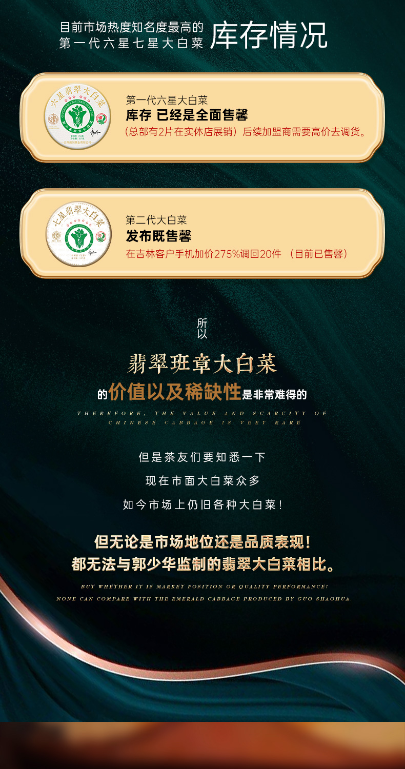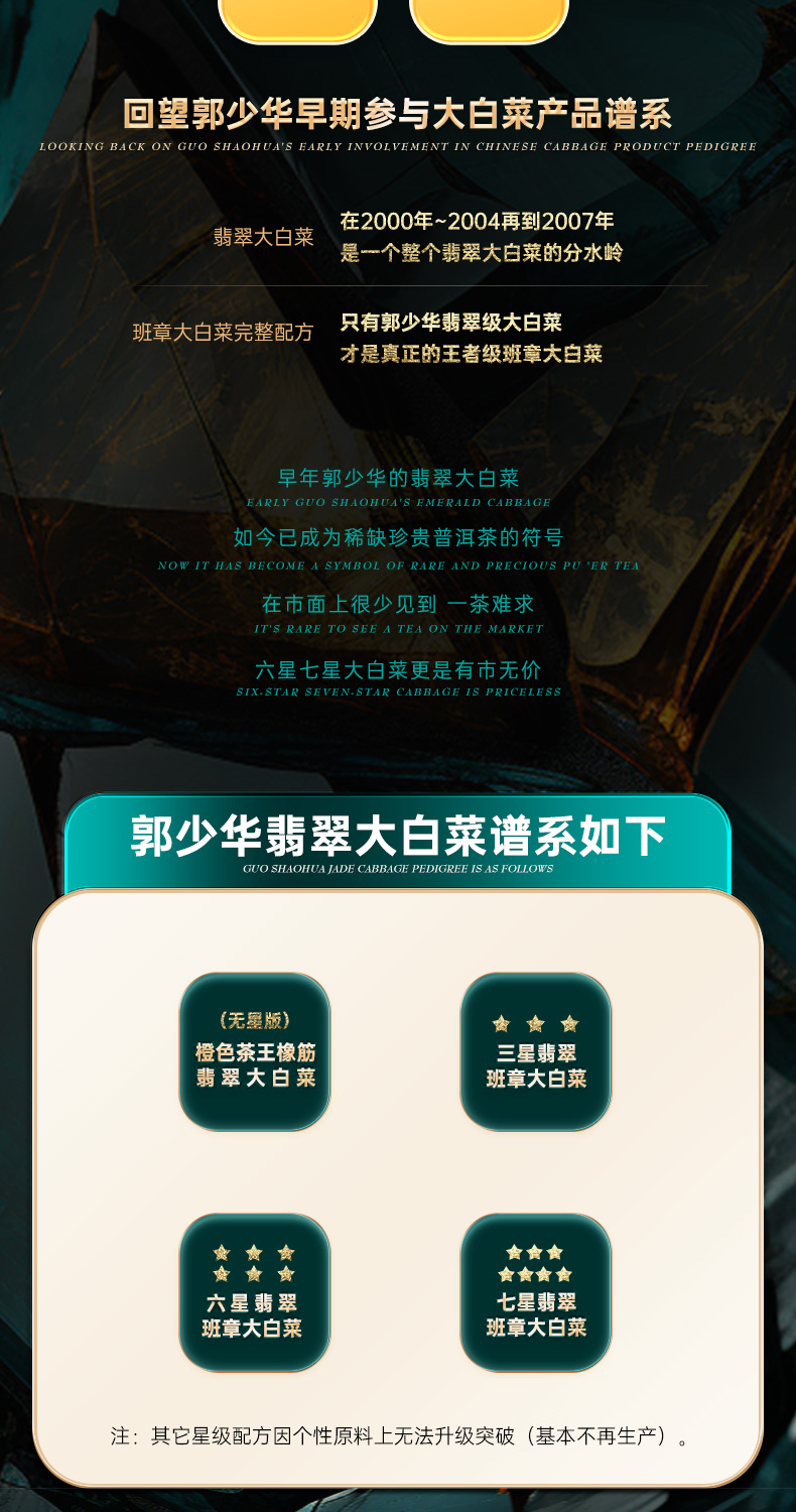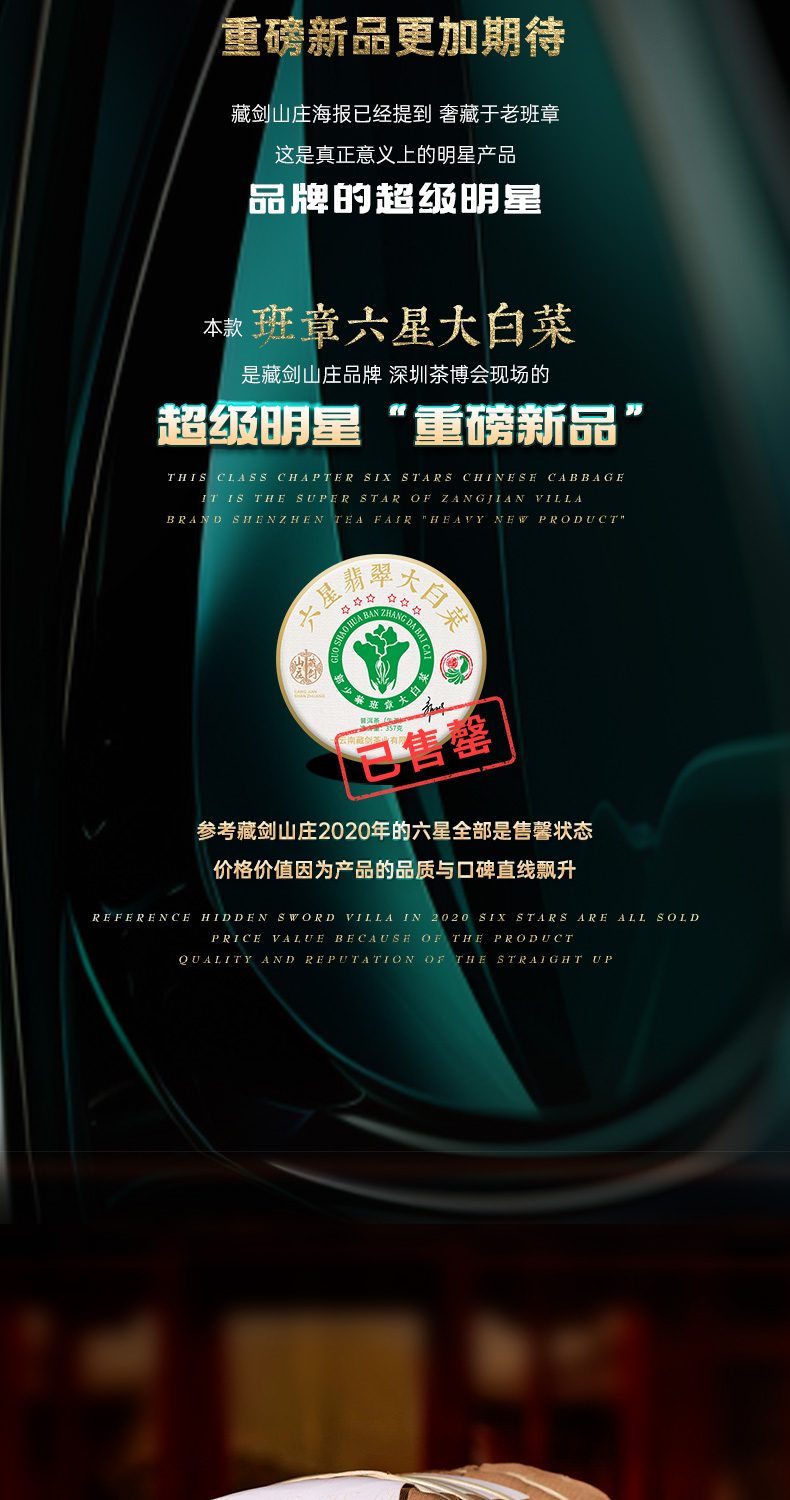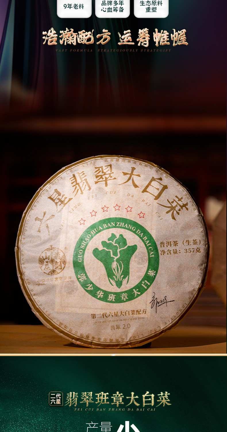 【藏剑山庄】郭少华第2代六星班章大白菜!9年陈原厂老料 !2499克/盒7片《1盒赠1片》【4盒整件28片 赠4片】