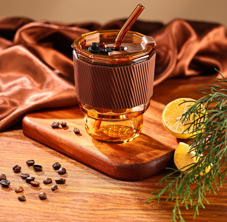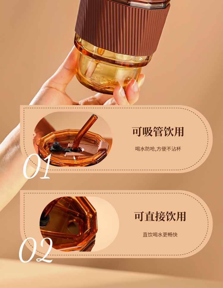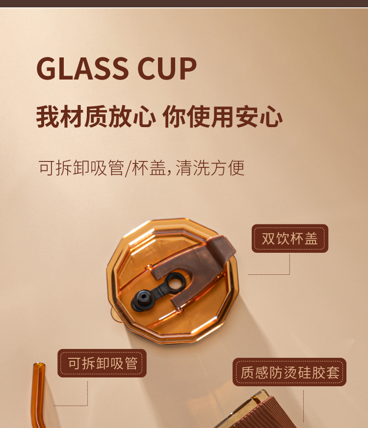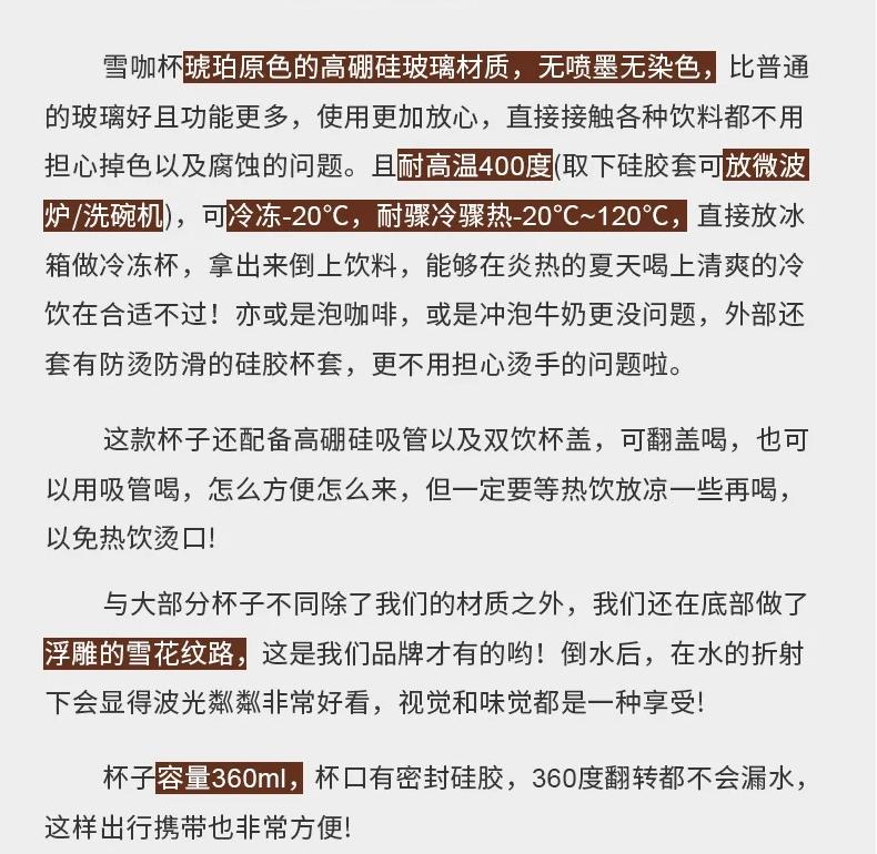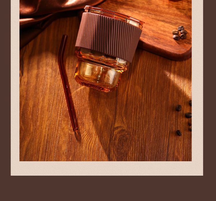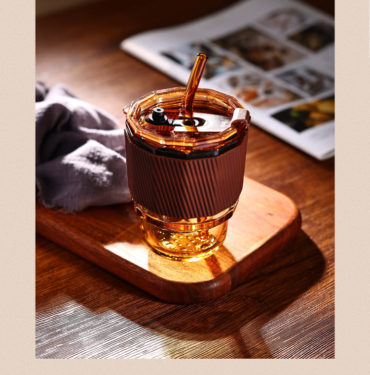 【高硼硅琥珀原色双饮杯】高颜值咖啡杯 带吸管密封防漏双口设计便携玻璃杯 家用办公 耐高温 可微波炉 可洗碗机
