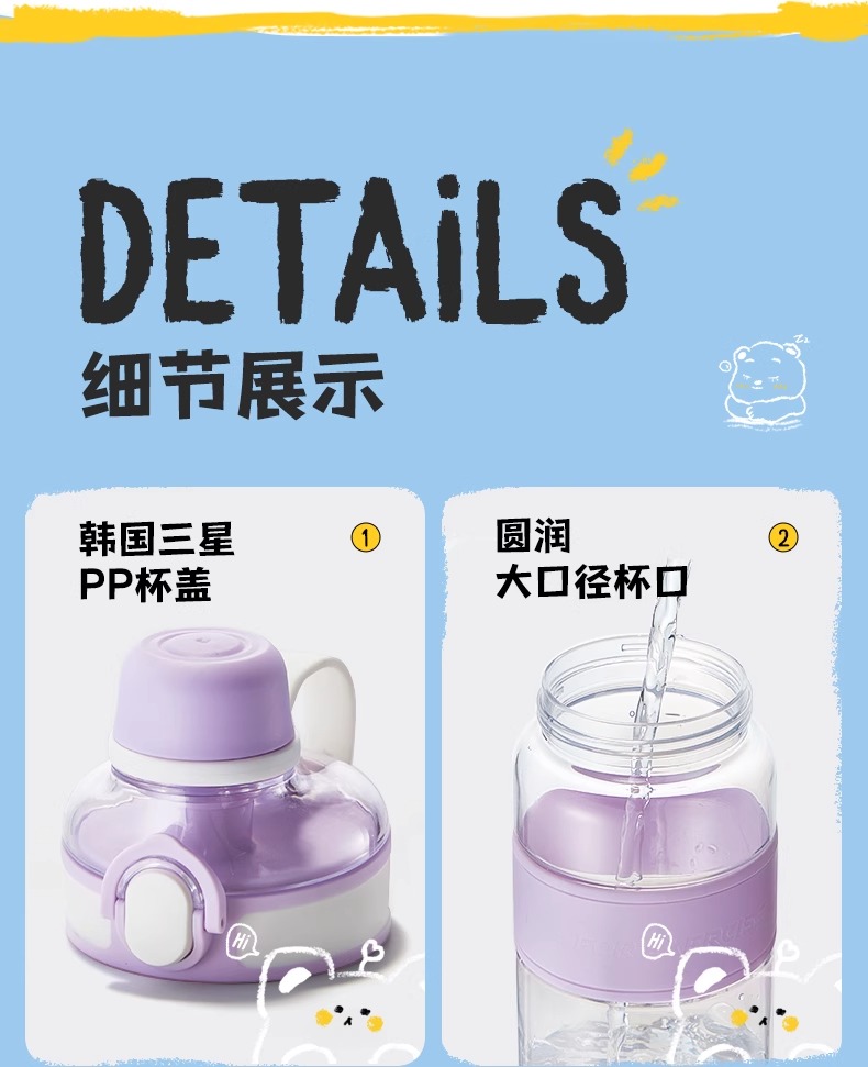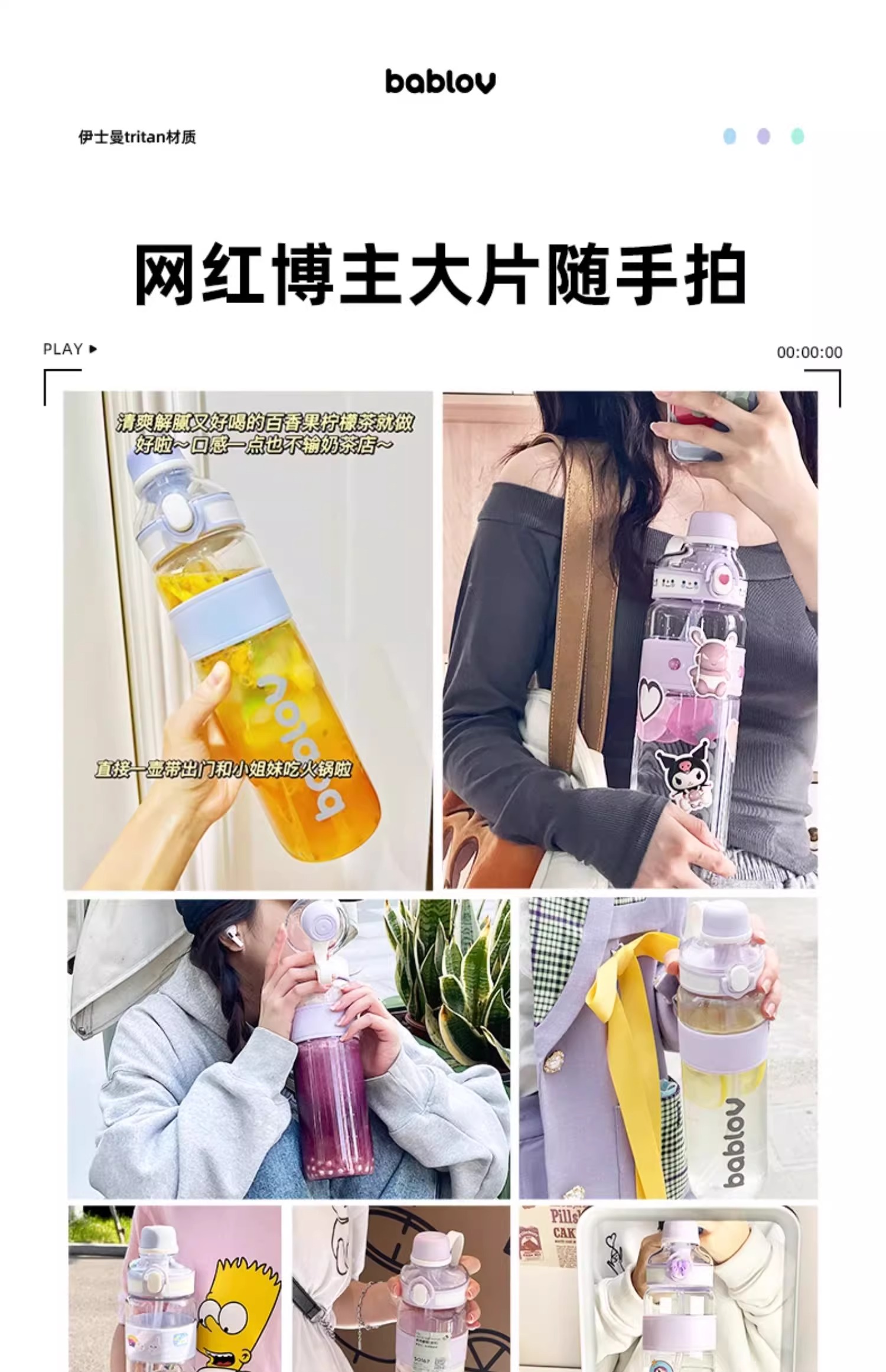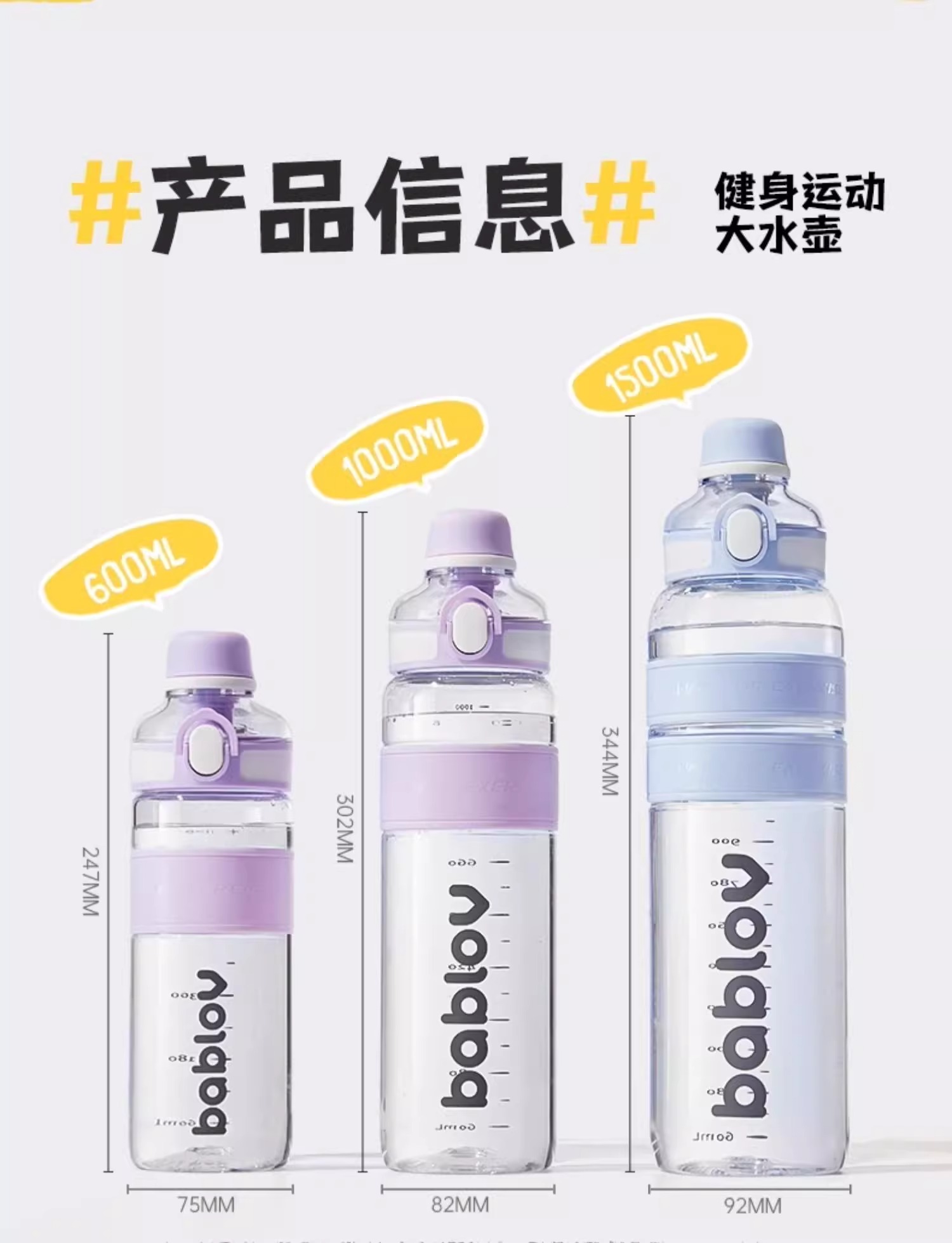 bablov运动水杯女生大号大容量健身水壶夏季耐高温学生吸管水杯子
