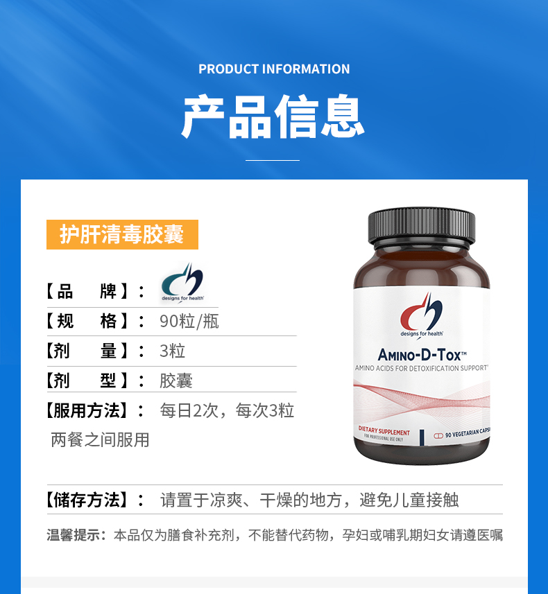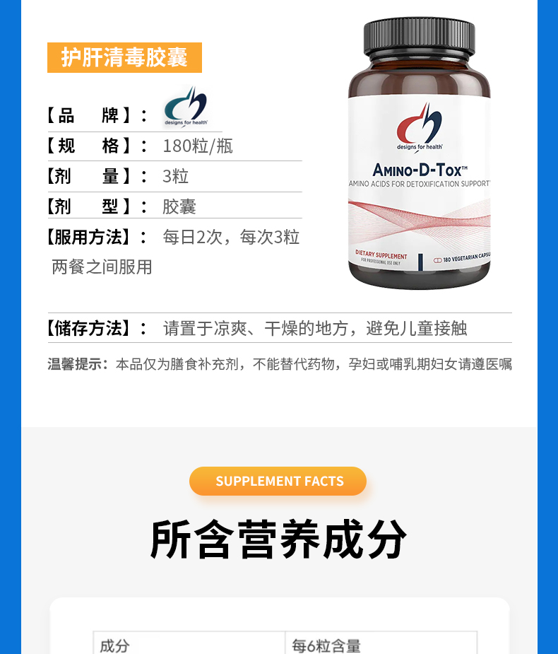 【效期至26年7月】II期肝脏营养胶囊 Designs for health Amino-D-Tox™ 90粒/瓶