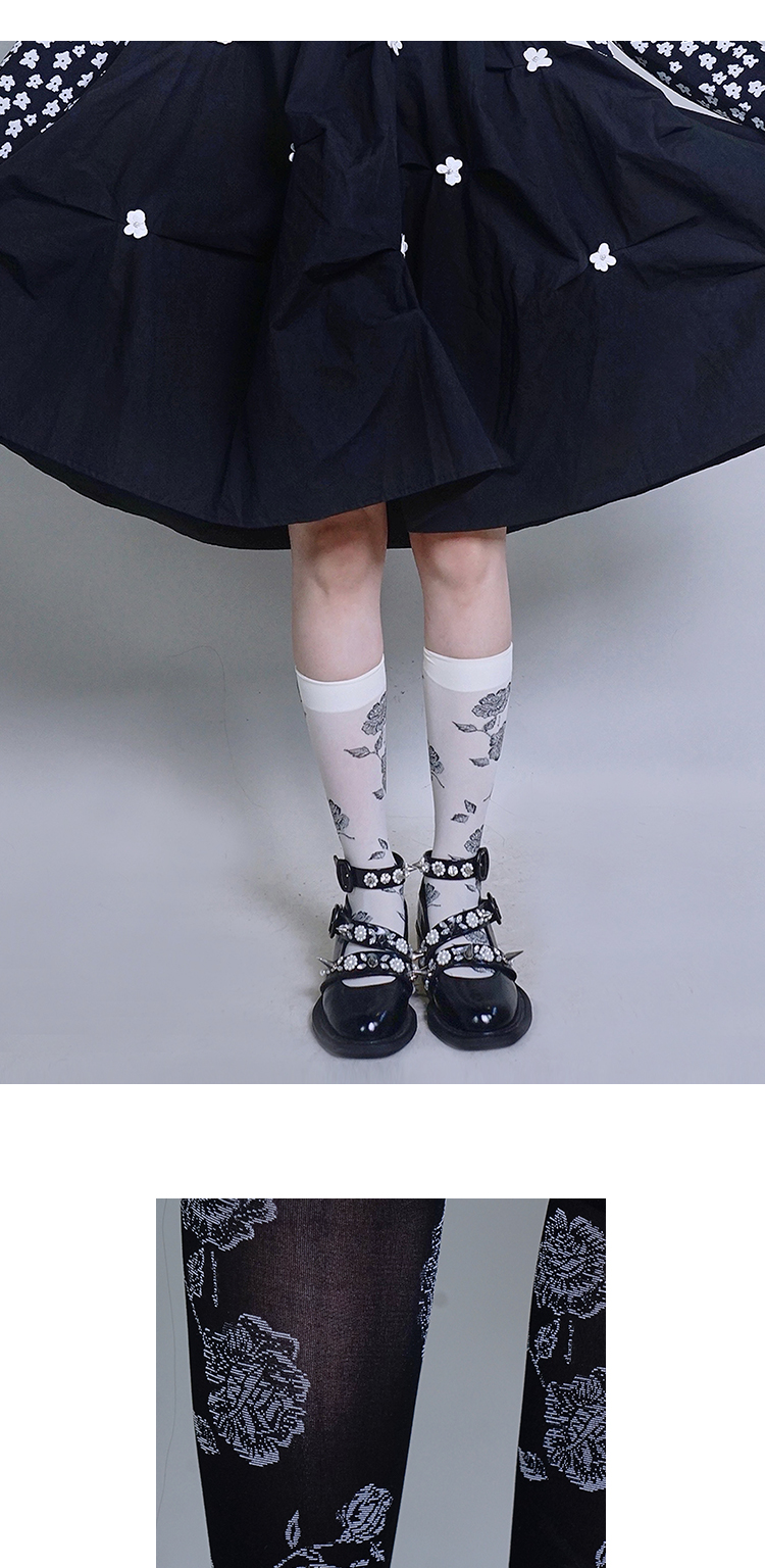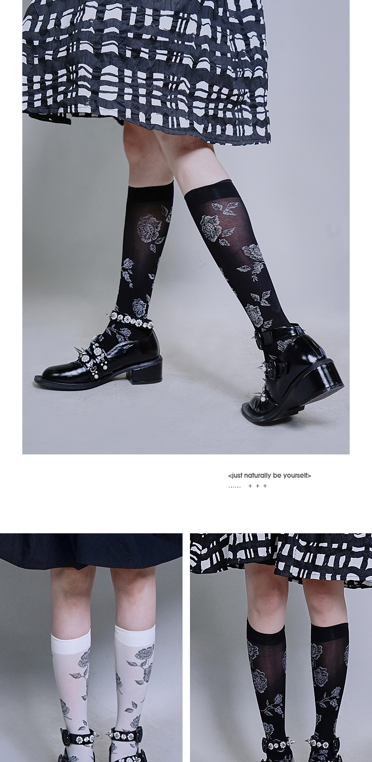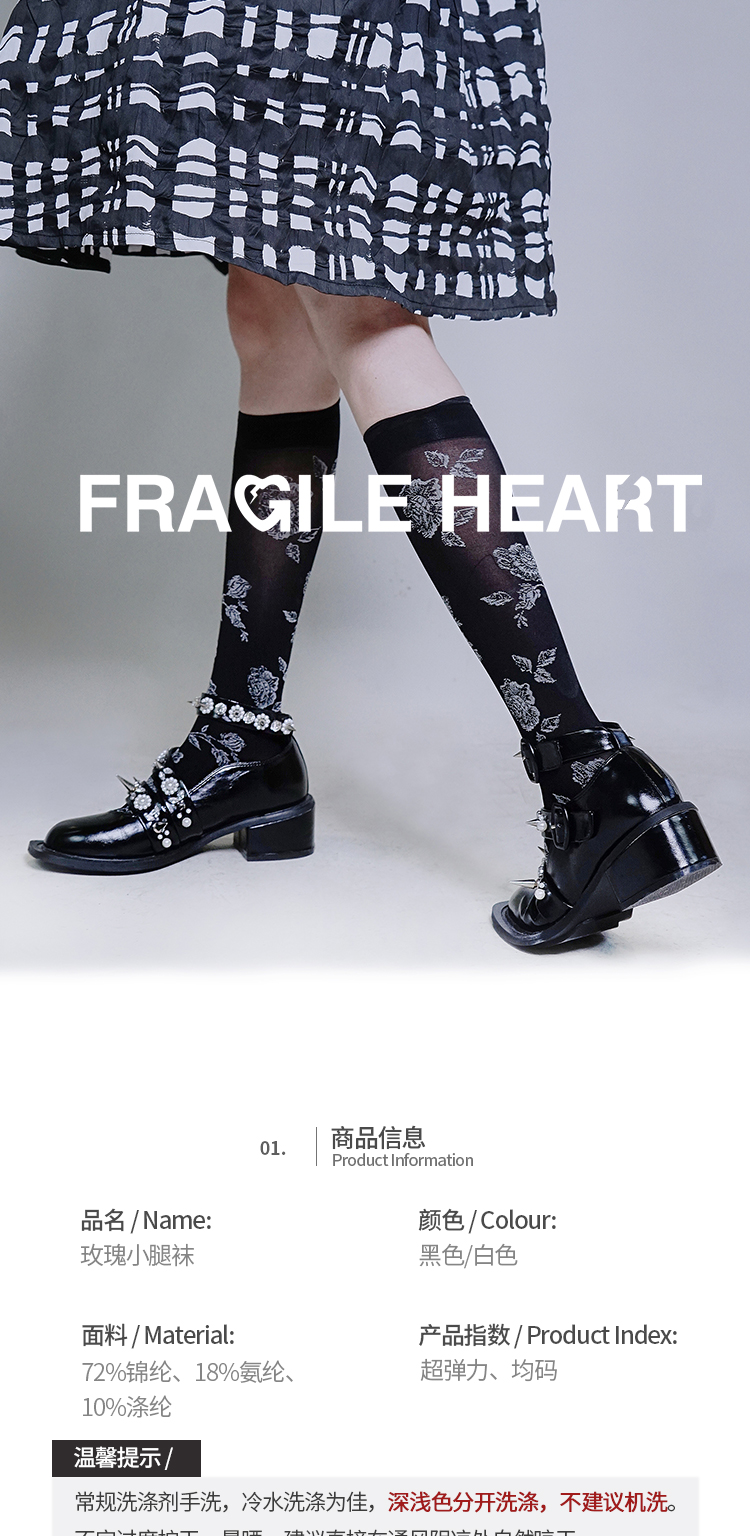 fragileheart易碎商店 原创设计 玫瑰中筒袜女秋(不退不换)