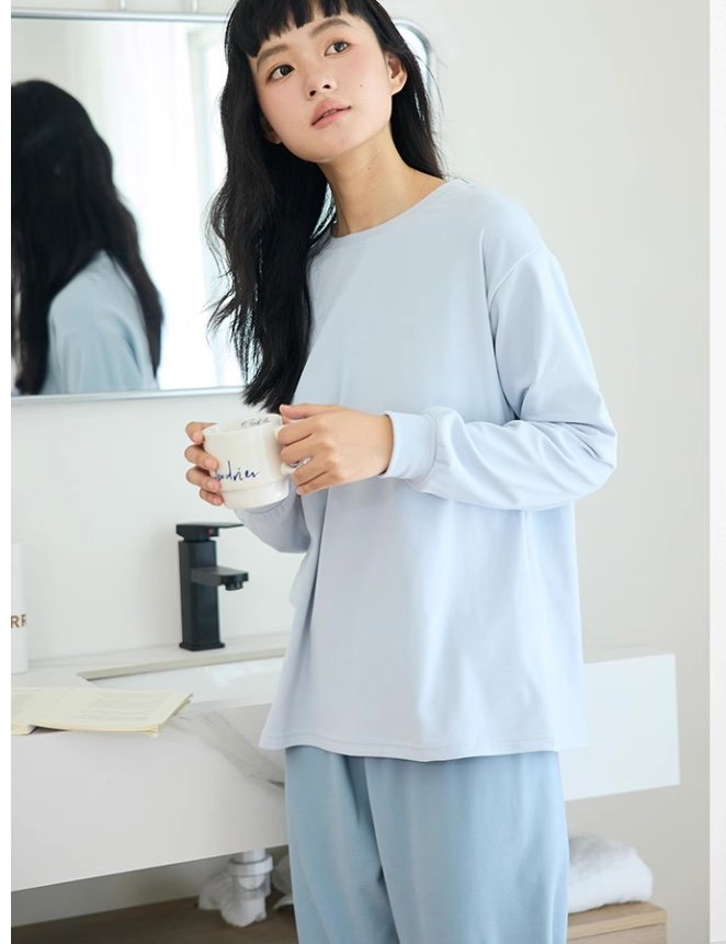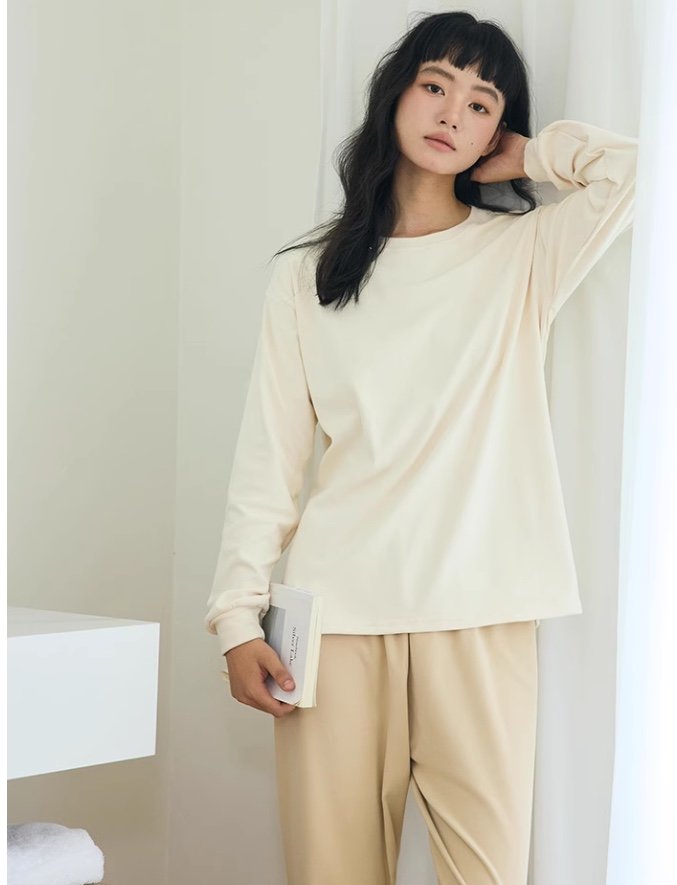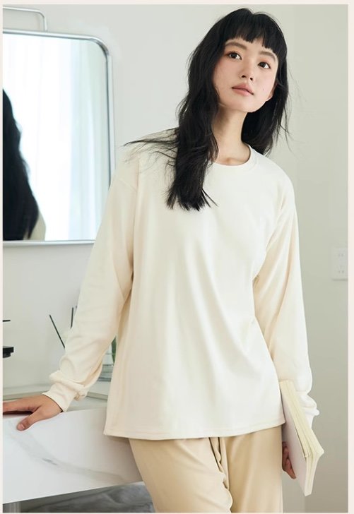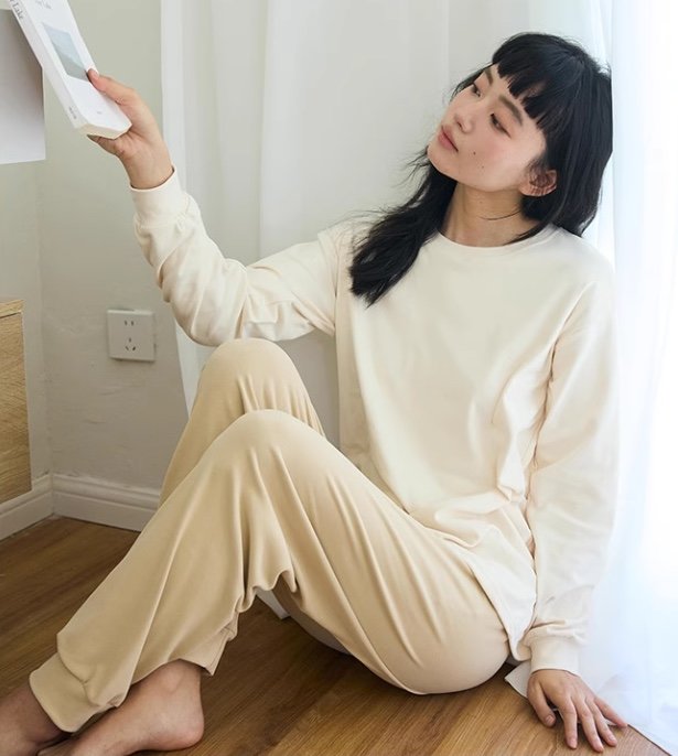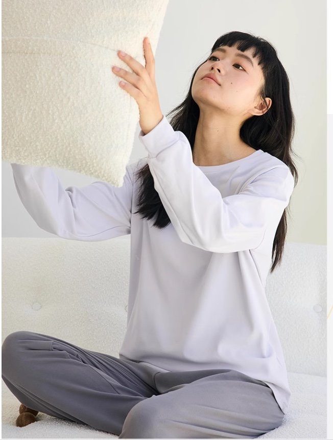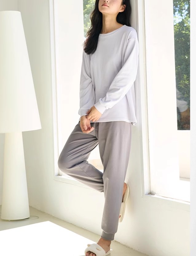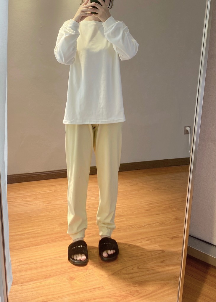 日常清新居家+夜晚畅享好眠,慵懒上衣+束口裤,宽松舒服,对微胖小仙女也很友好,不显胖,各种身材都好穿。