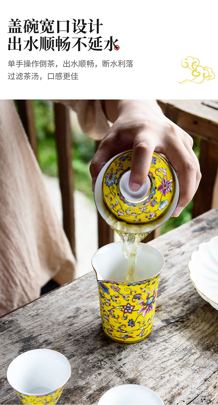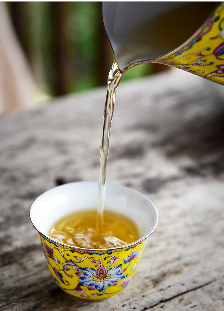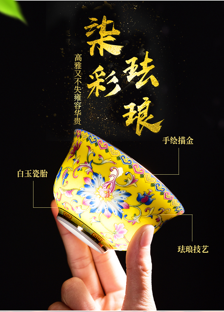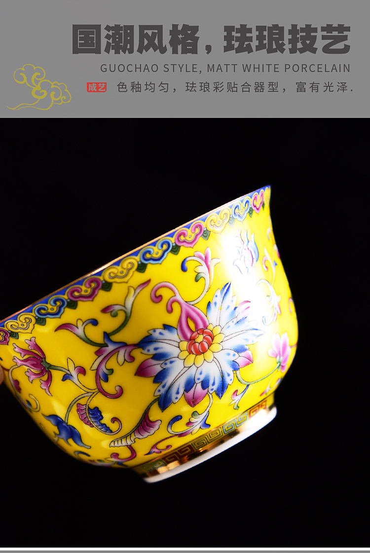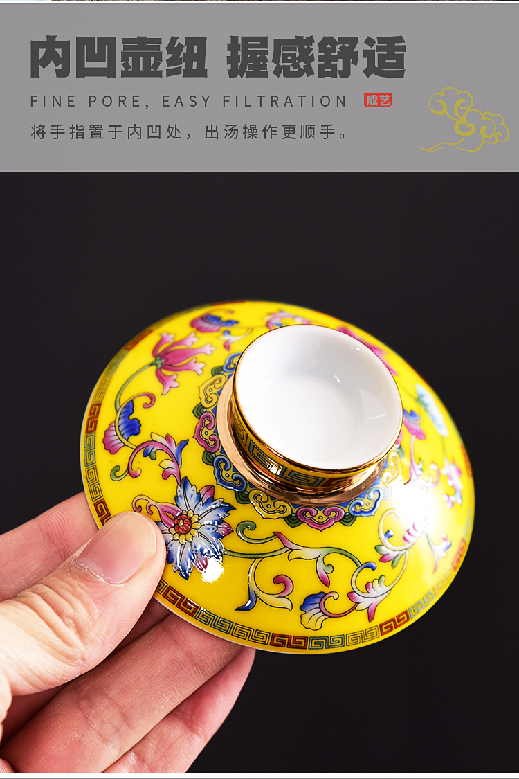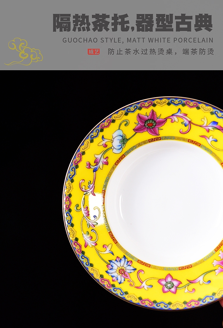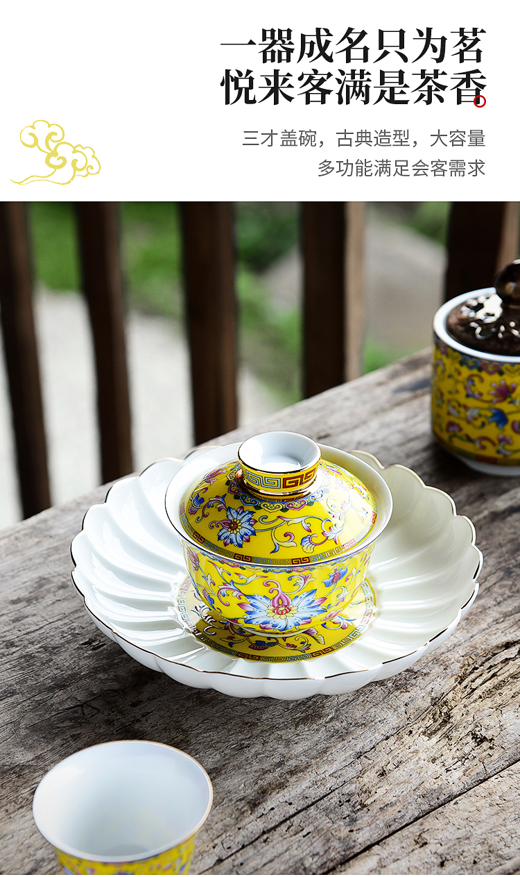 成艺德化陶瓷柒彩珐琅三才盖碗(葵纹黄)
