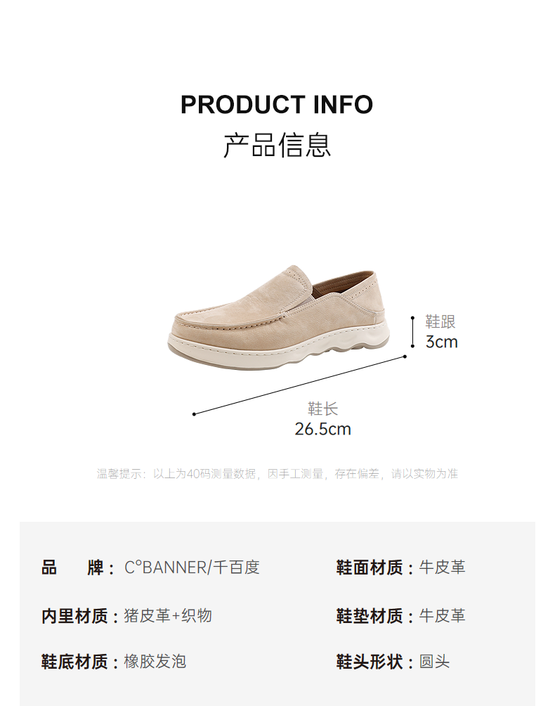 千百度2026春季男鞋时尚的圆头设计穿着更舒适懒人休闲A26181814