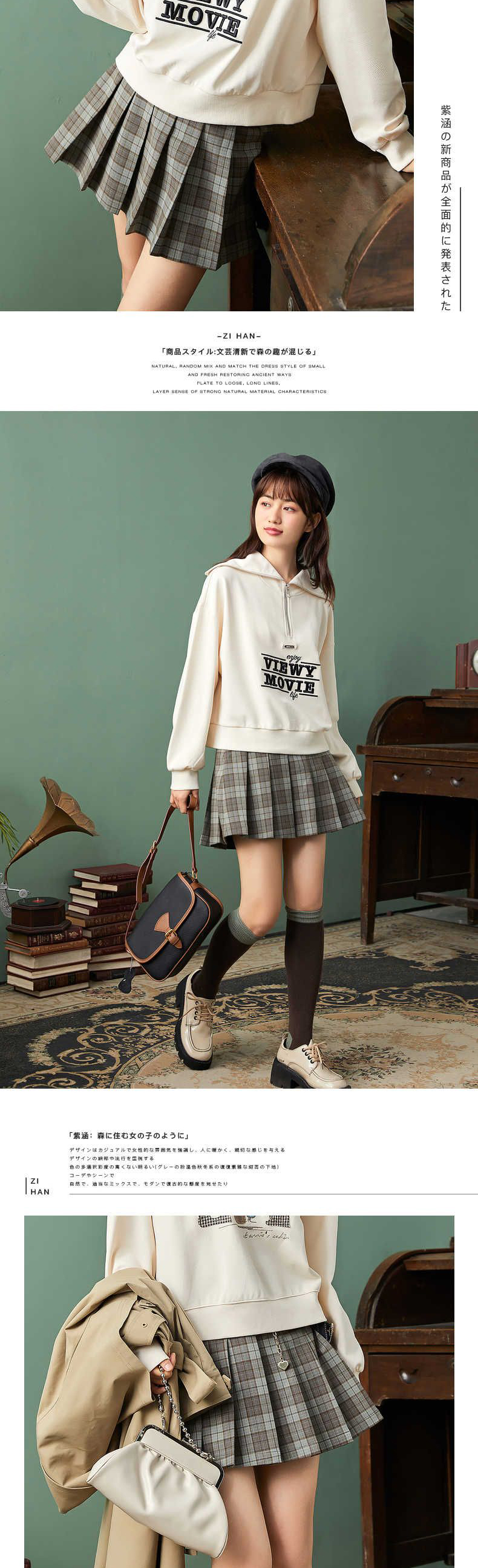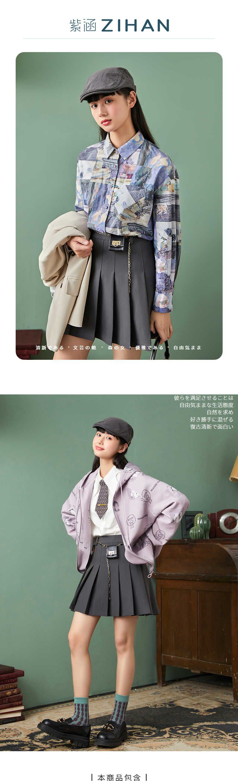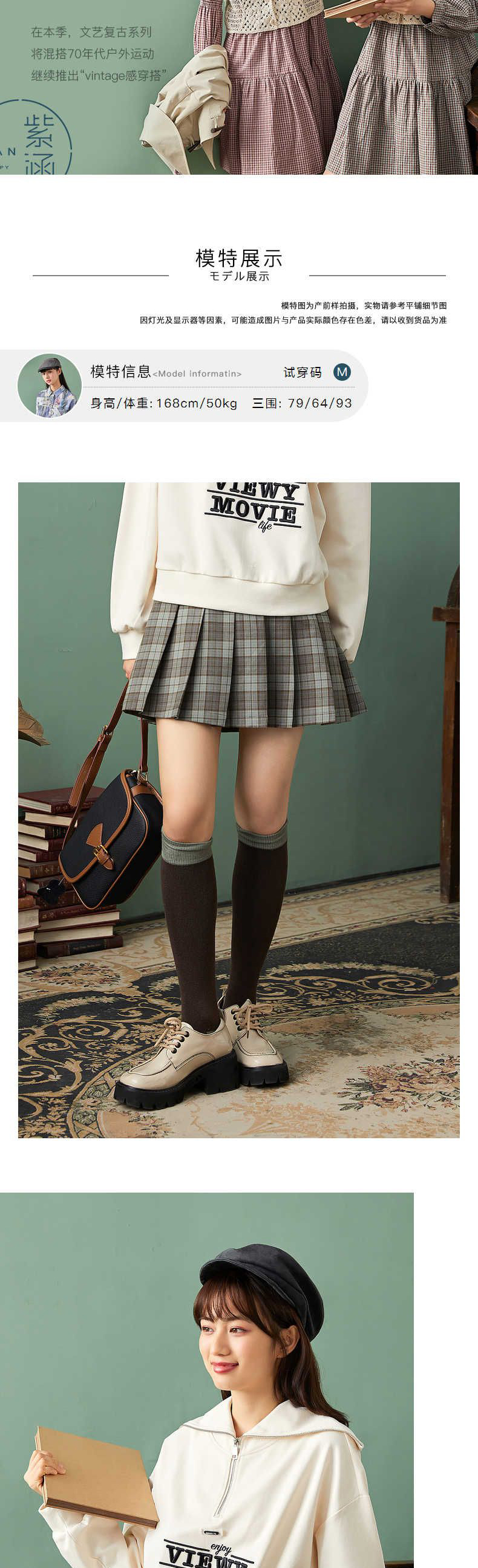 ZIHAN紫涵气质百褶裙半身裙2022春季新款学院风格纹设计感小众链条裙子Z2Z01AS140