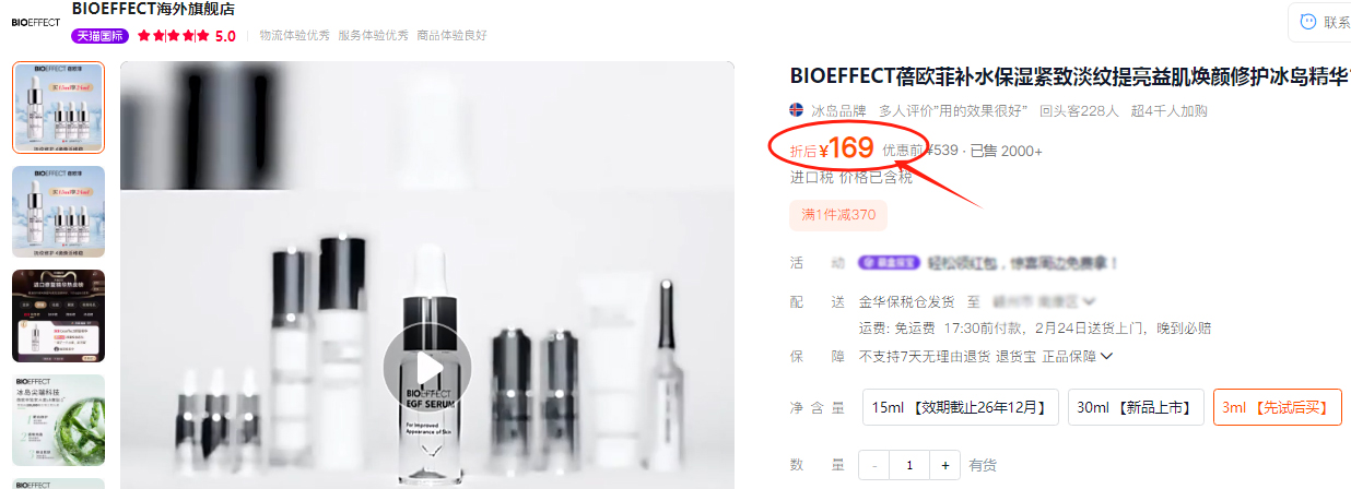 【2.19王炸割肉价】BIOEFFECT 焕颜修护抗老精华3ml*3