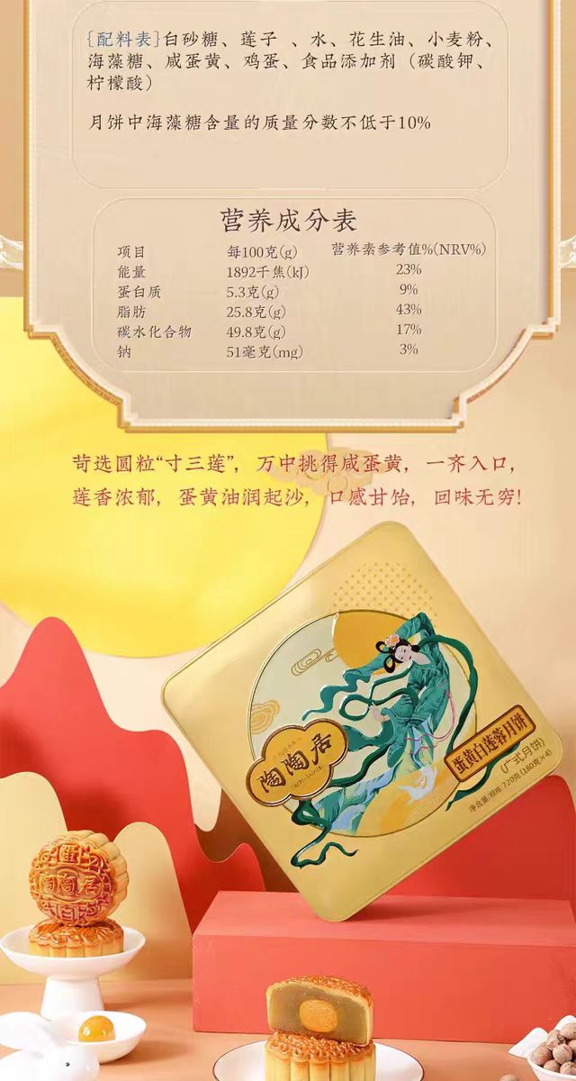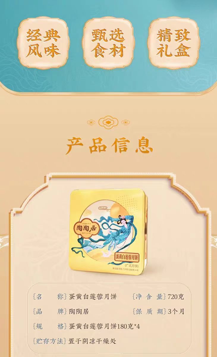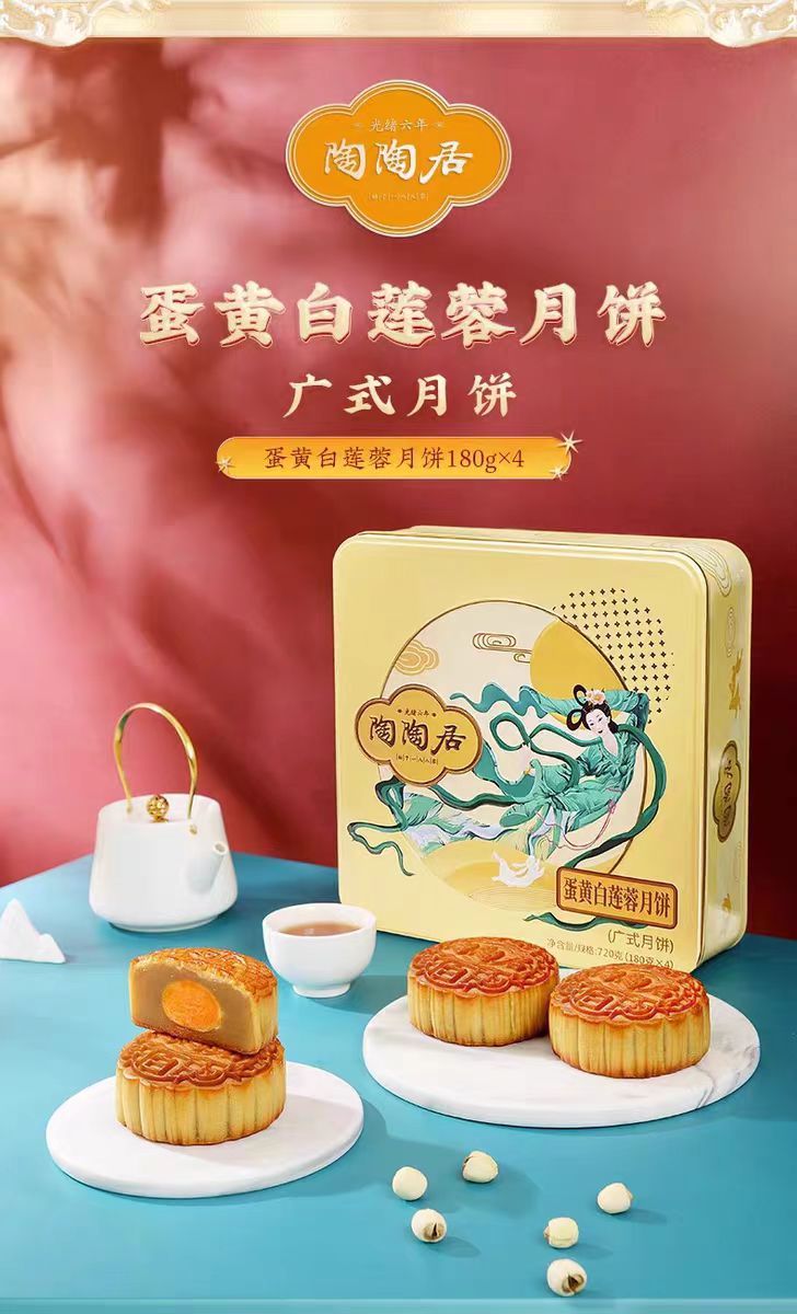 陶陶居经典款 | 蛋黄白莲蓉月饼180g*4粒铁盒装