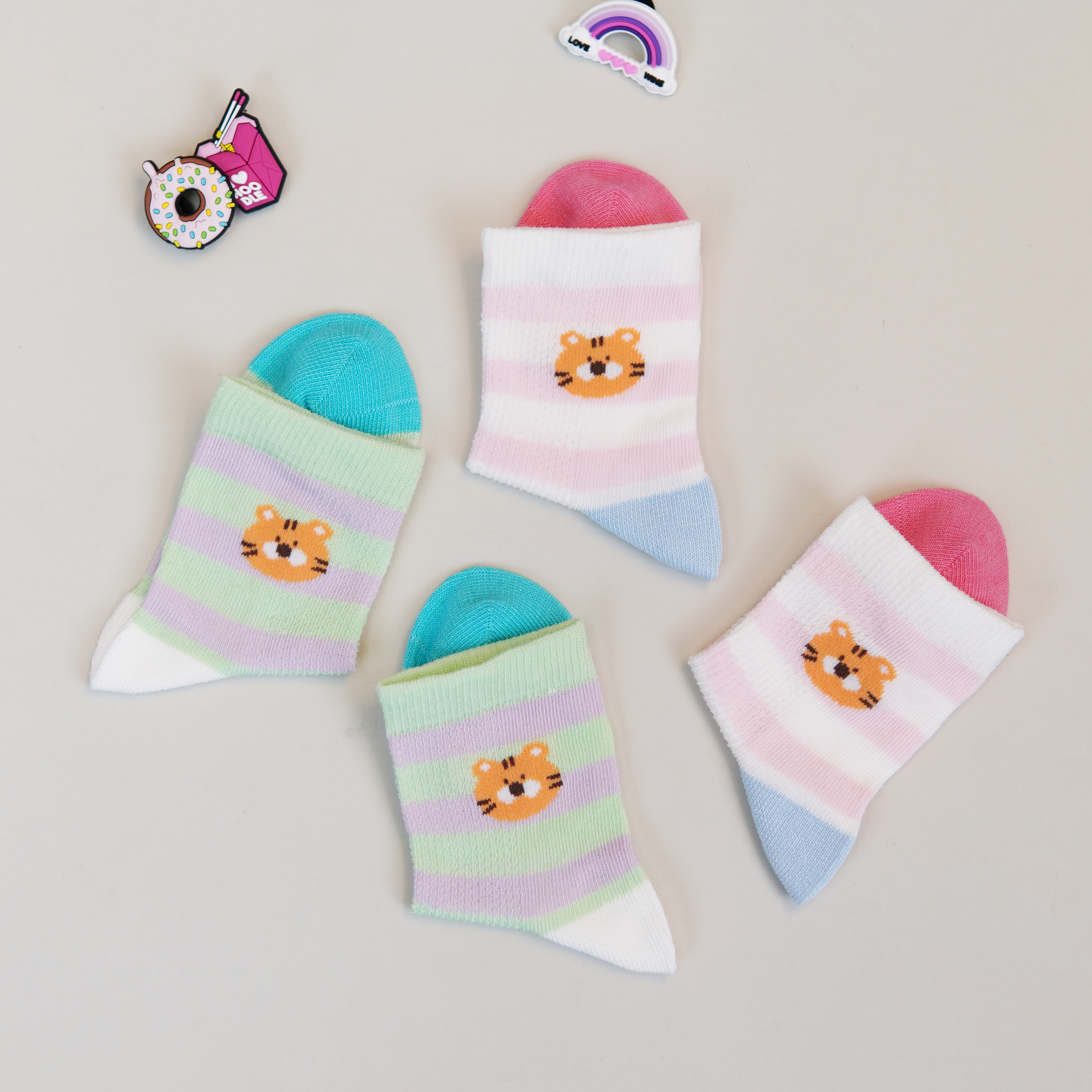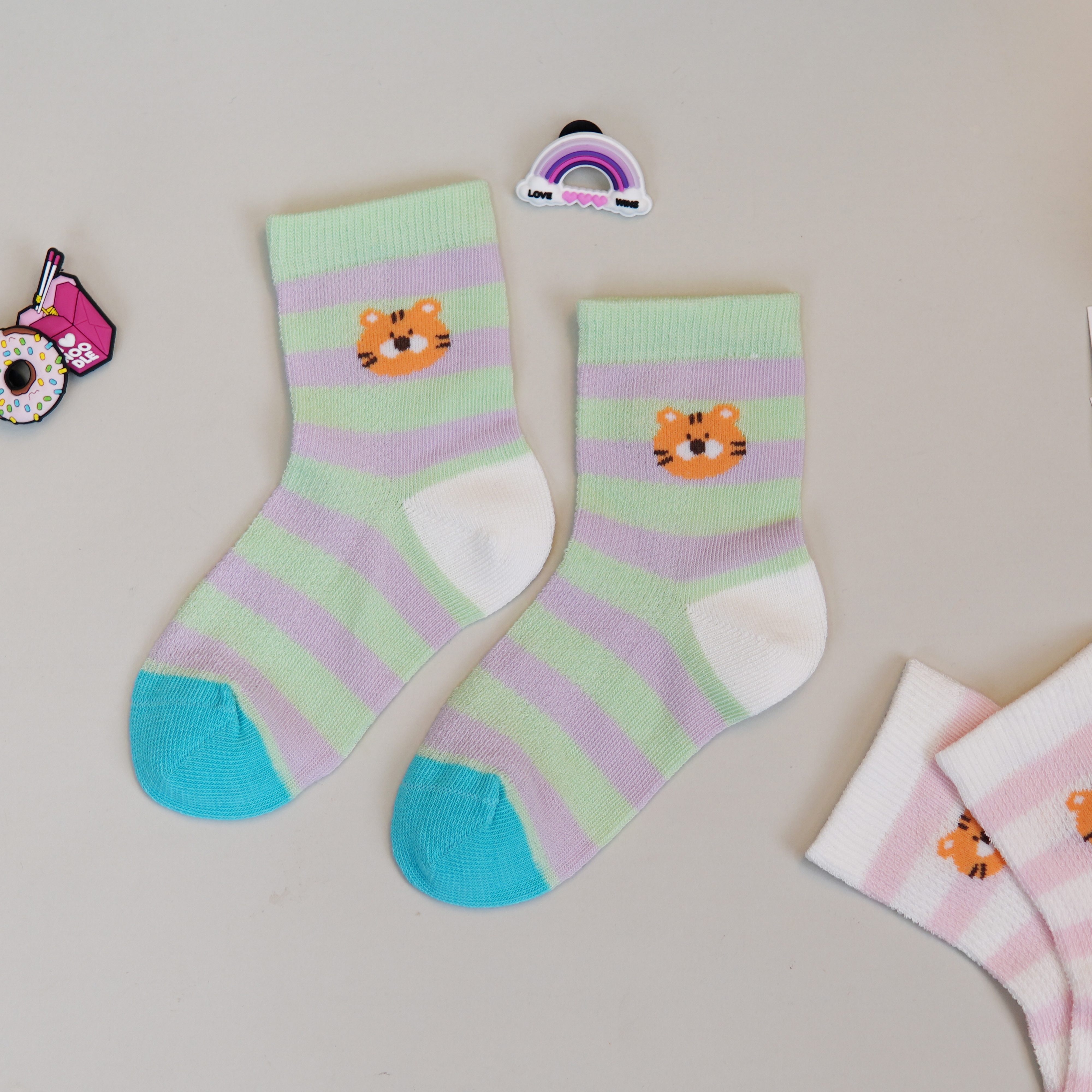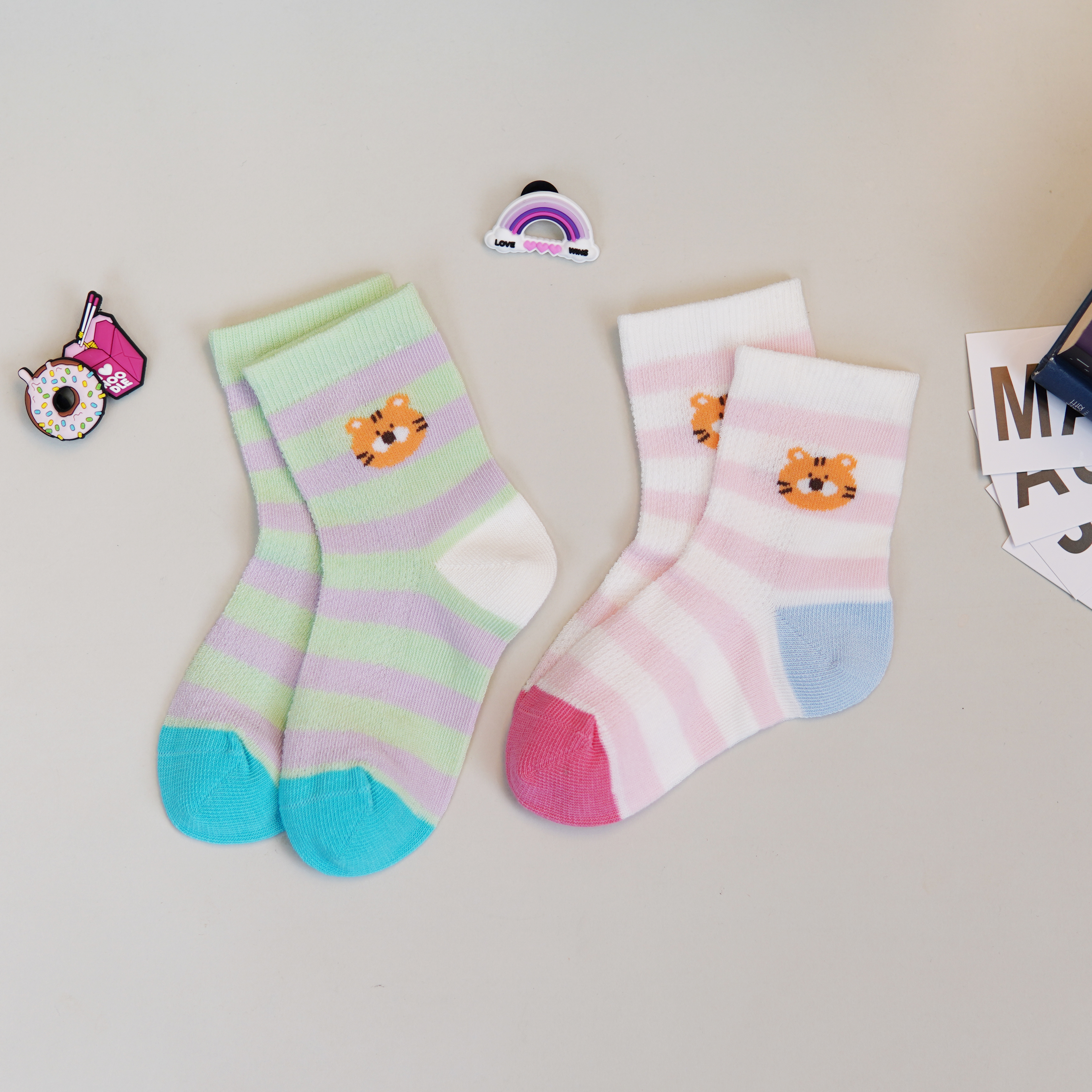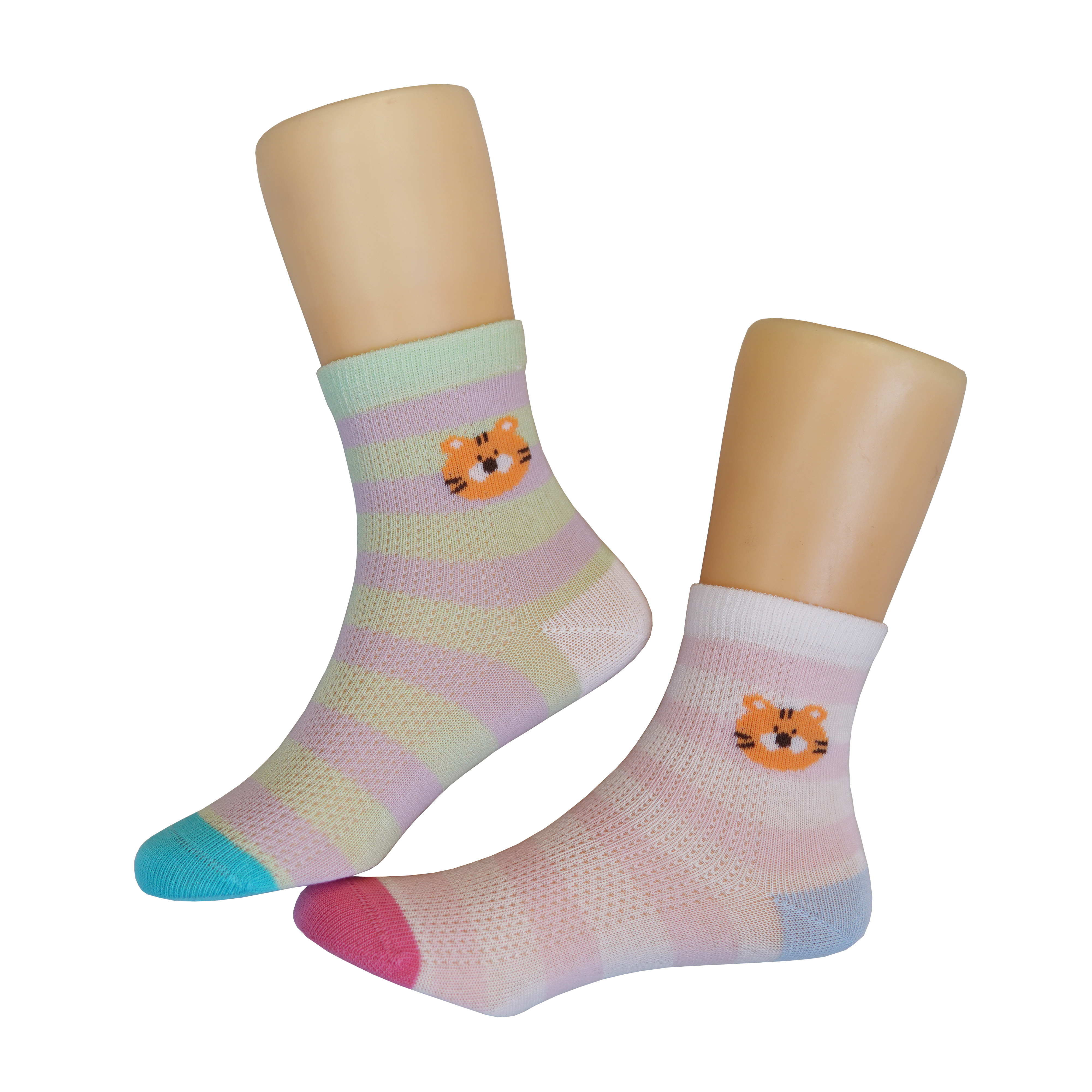 【6双6折】【3-5岁】卡通条纹儿童夏季袜子薄款网面透气中筒袜女宝袜子男宝棉袜【2双装 2513206】