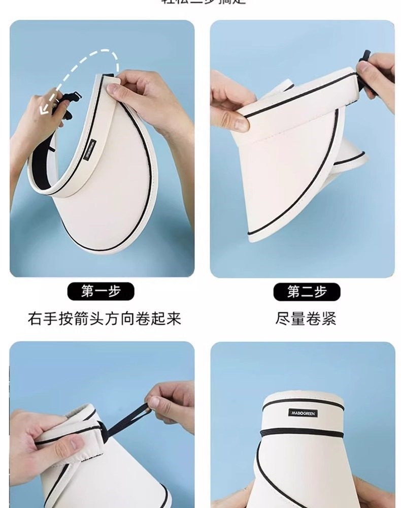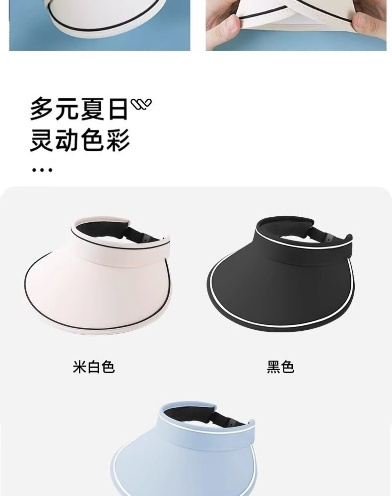 夏季可折叠空顶遮阳帽子 防紫外线无痕遮脸防晒帽 夏天户外太阳帽女