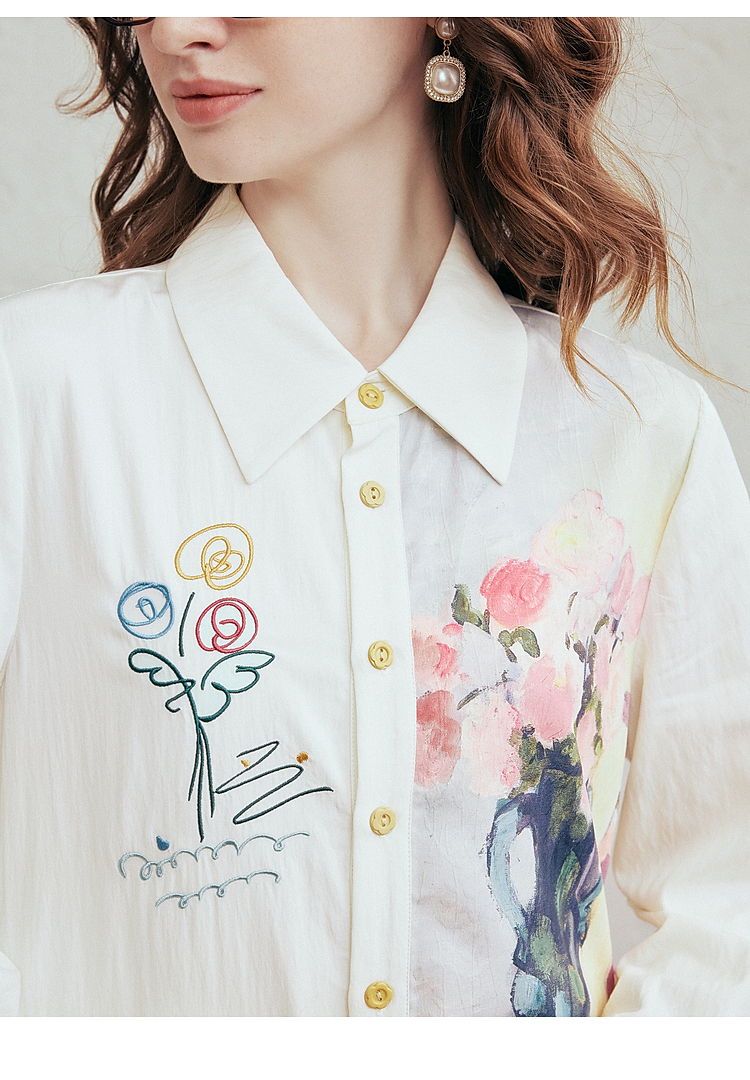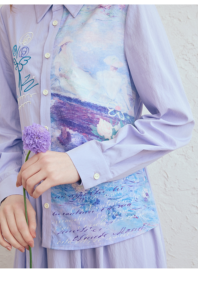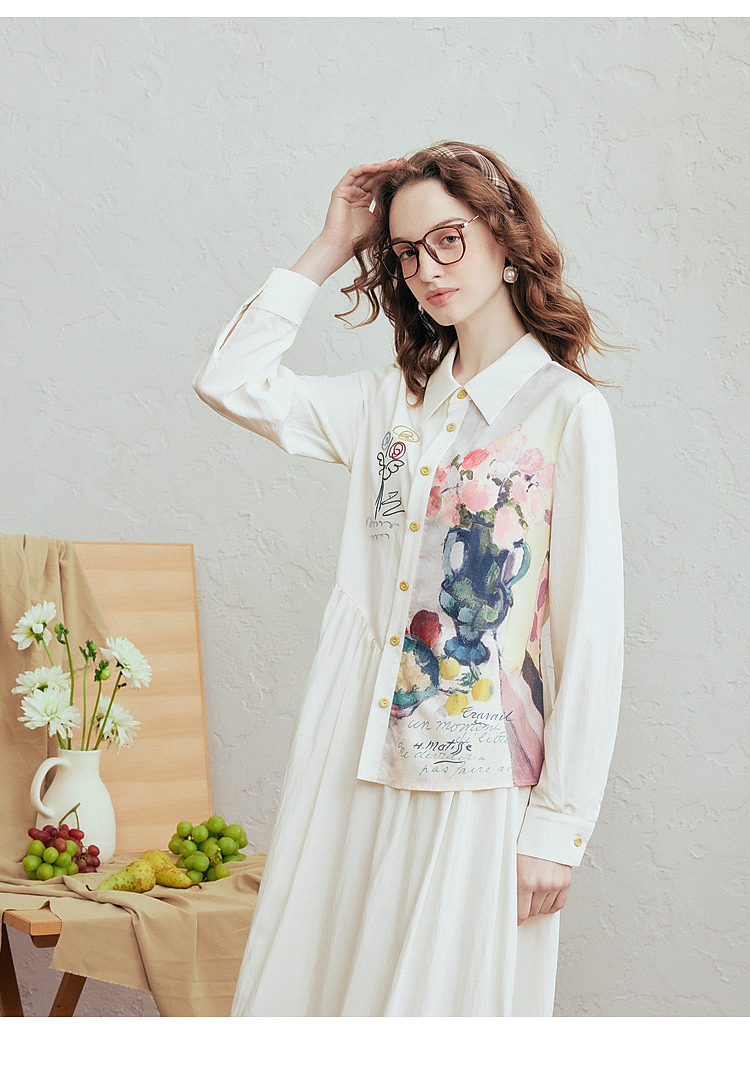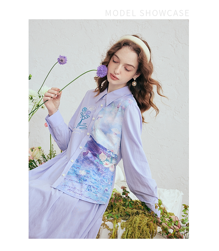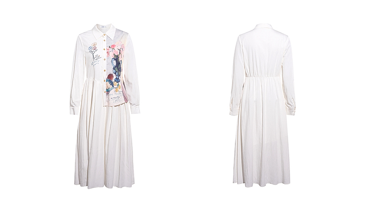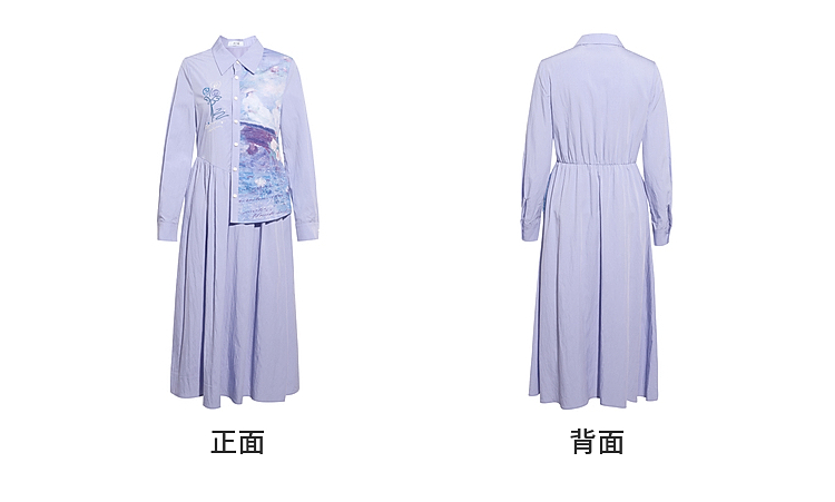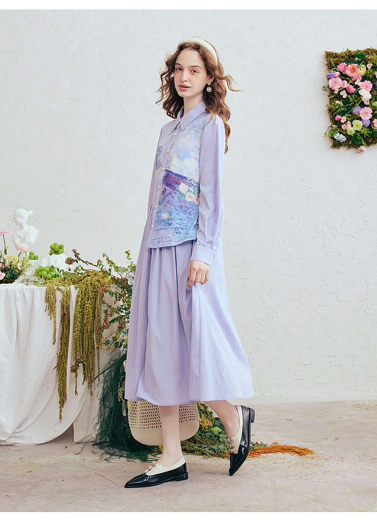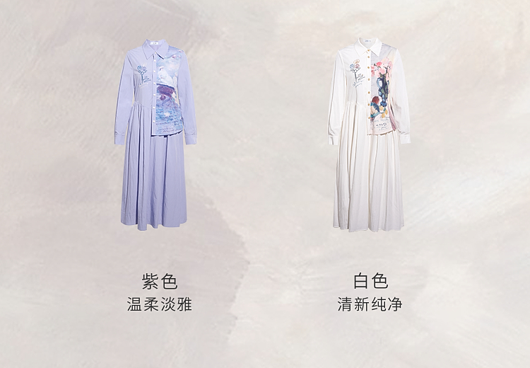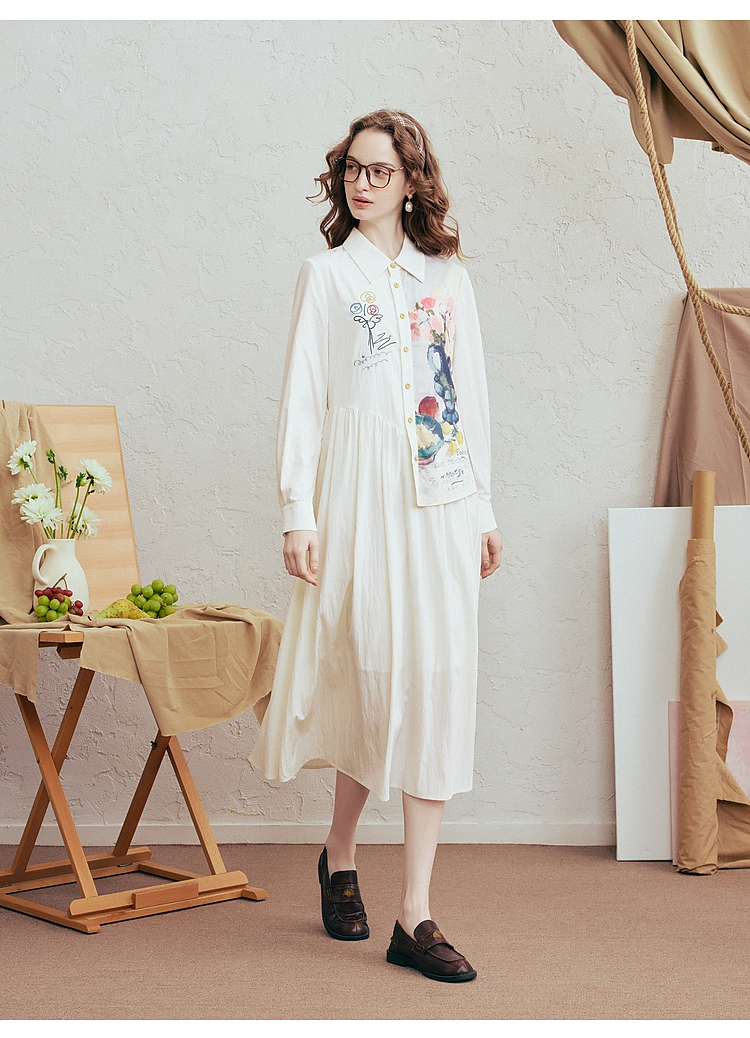 两三事 风絮花楹 2026春季新款文艺风刺绣印花不对称a字连衣裙