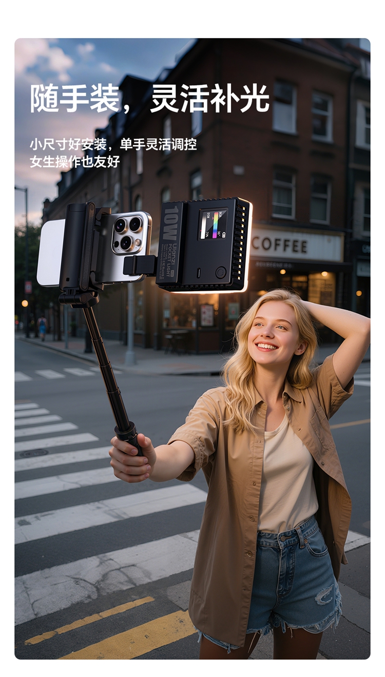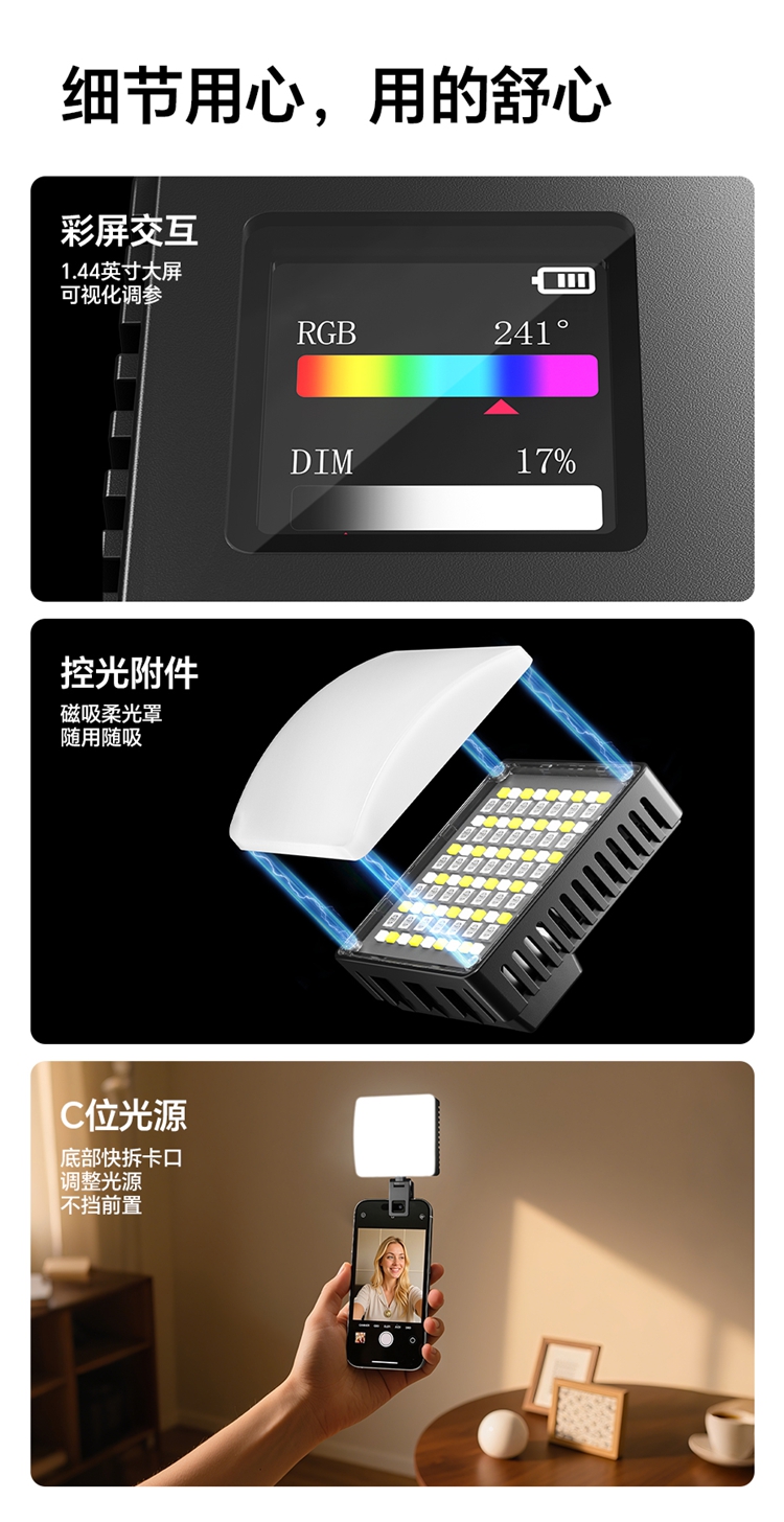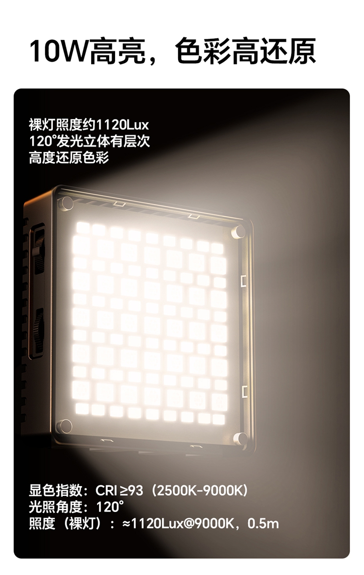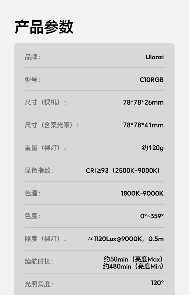Ulanzi优篮子 C10RGB口袋10W补光灯直播视频拍摄双色温摄影灯led便携RGB全彩常亮灯微单反相机手机通用打光灯