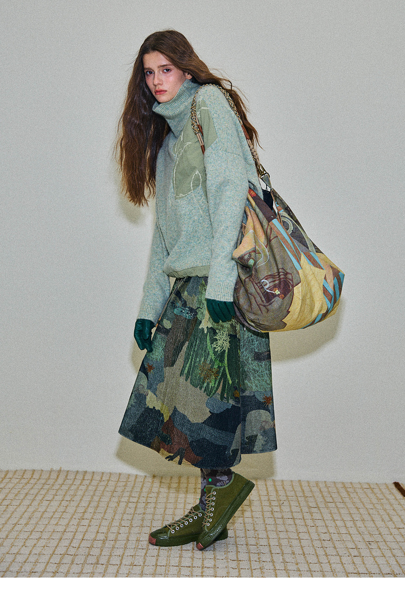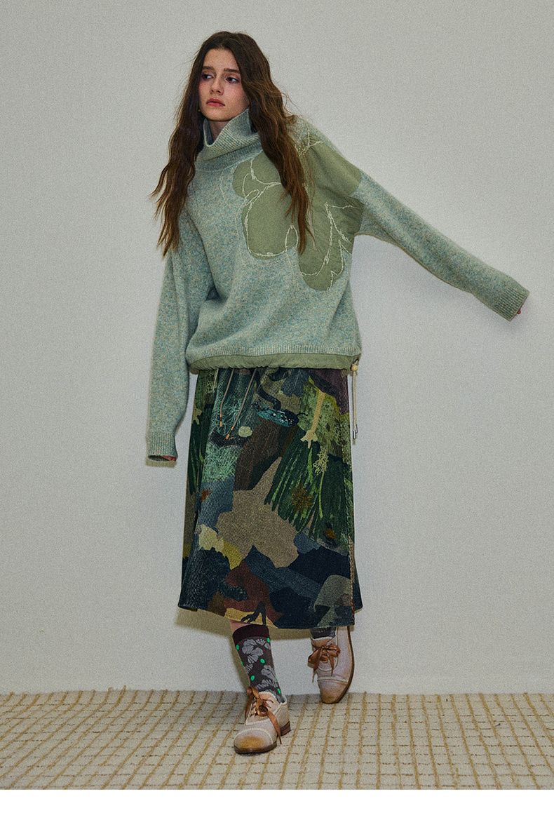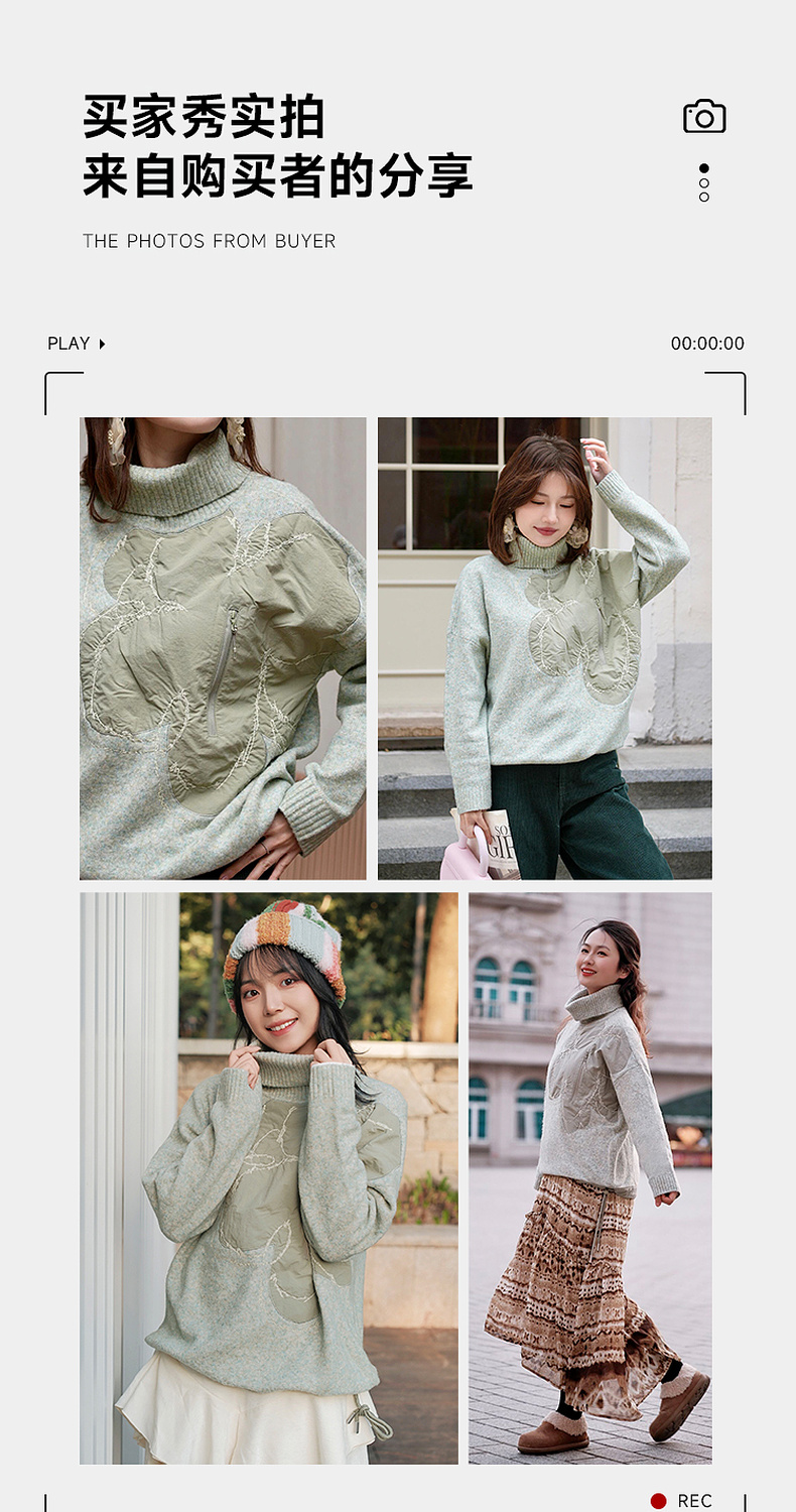 谜底套头针织衫长袖2025年冬季新品高龄宽松绣花保暖女254MZ1871