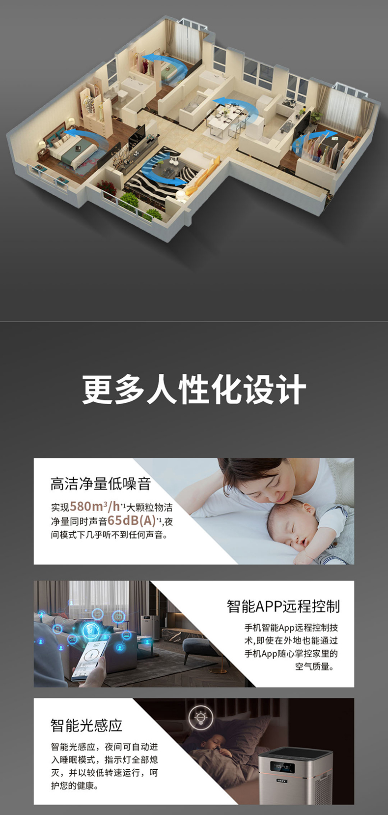 莱克(LEXY) 莱克空气净化器K5 无害除醛空气净化器滤病菌除花粉过敏源智能净化机