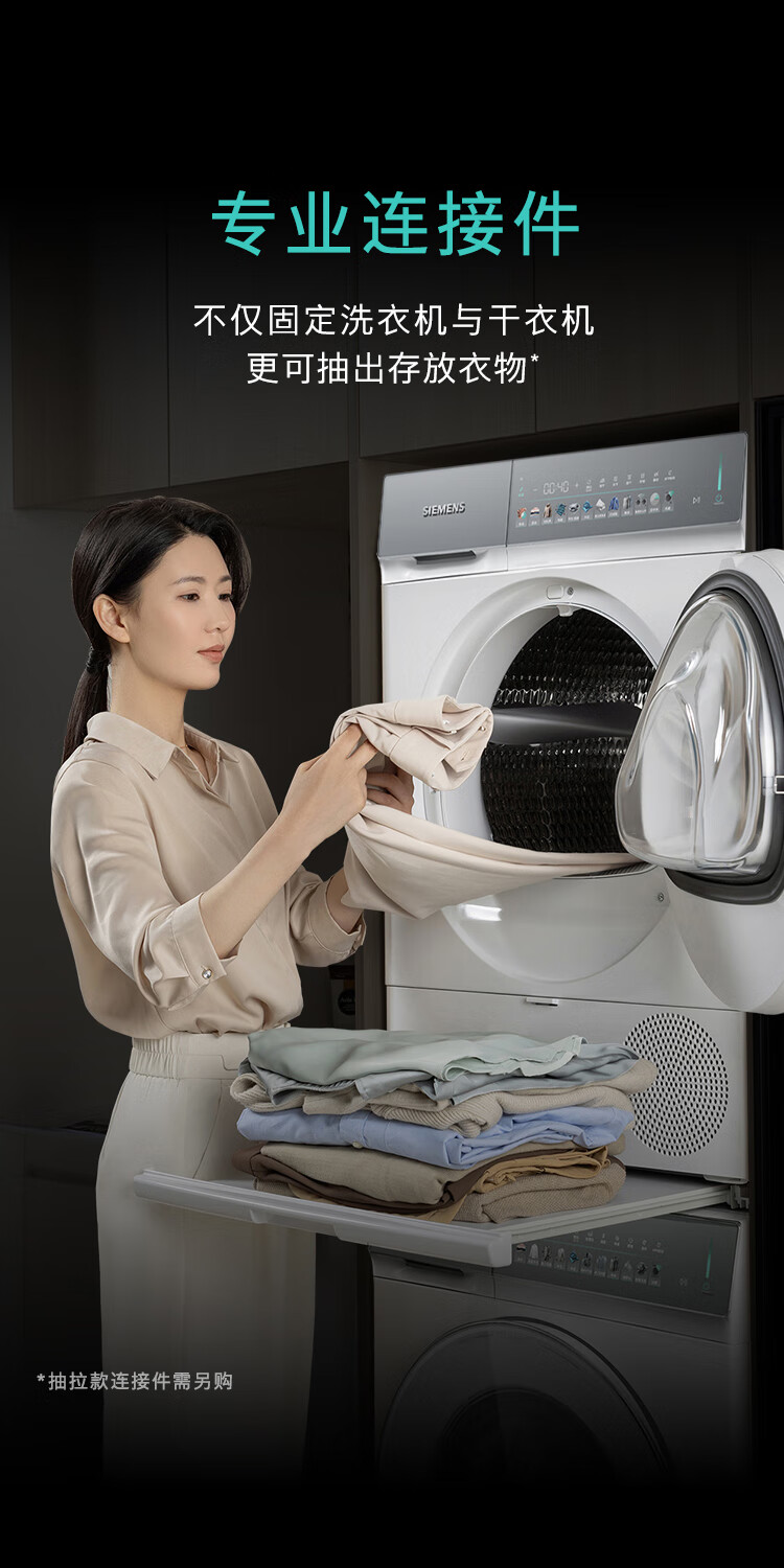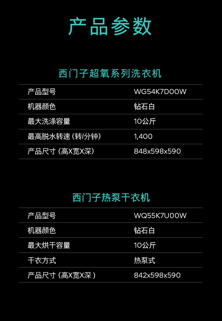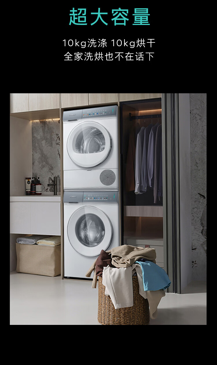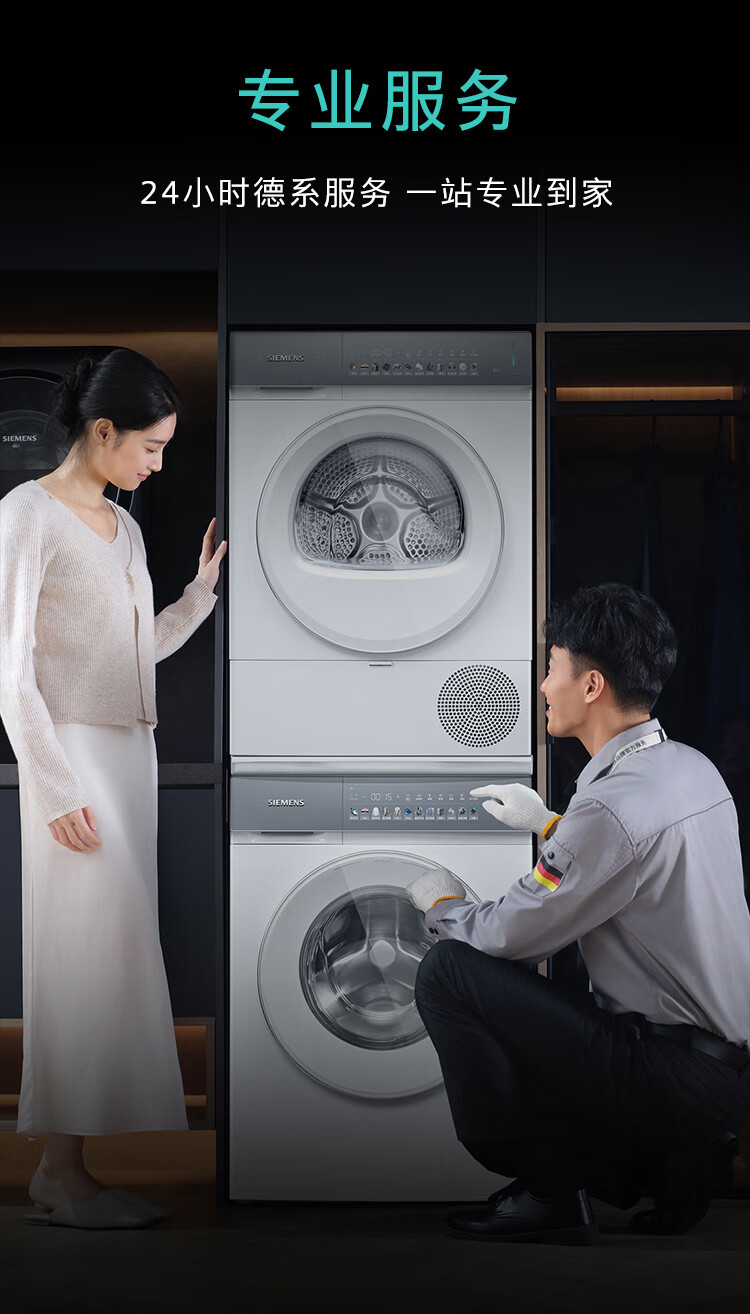 西门子(SIEMENS)iQ500超氧洗烘套装10公斤变频滚筒洗衣机 蒸汽除皱 深层净洗 智能投放 全自动烘干机冷凝器自清洁 WG54K7D00W+WQ55K7U00W