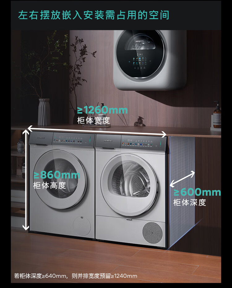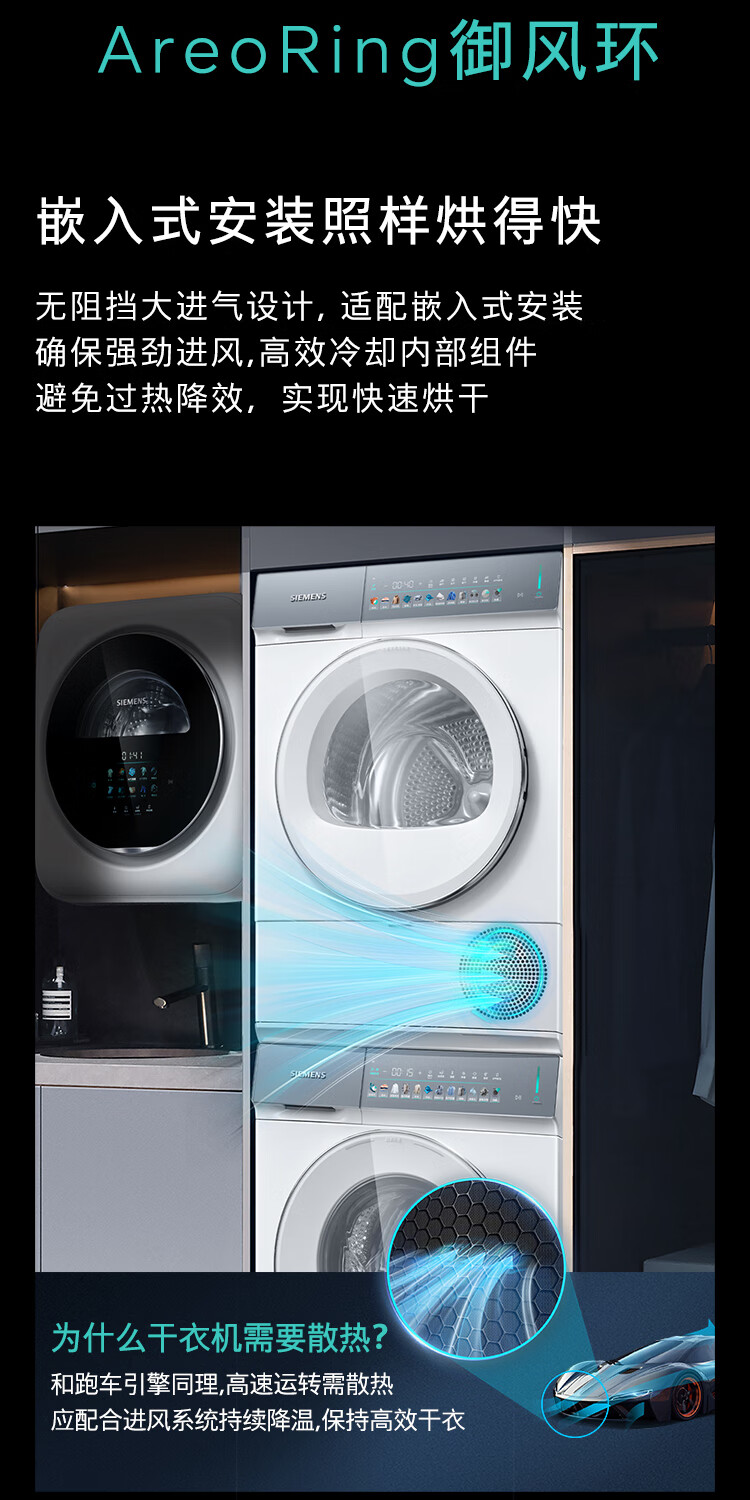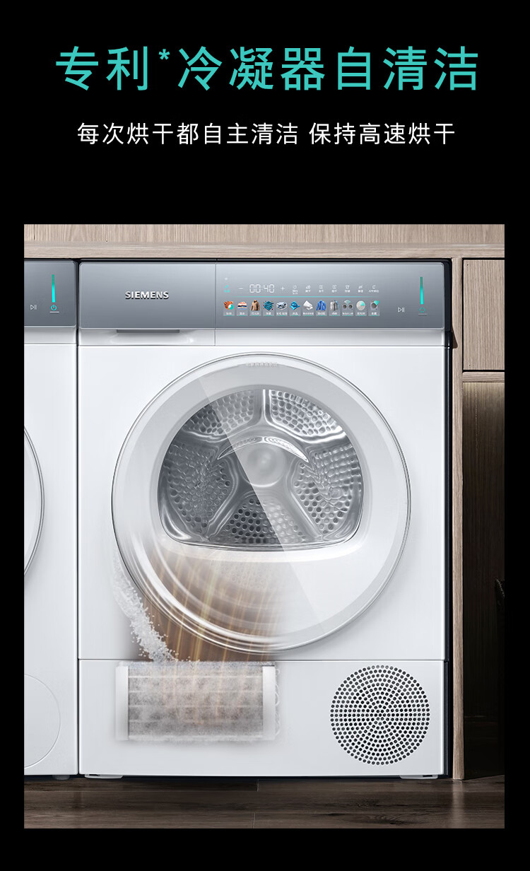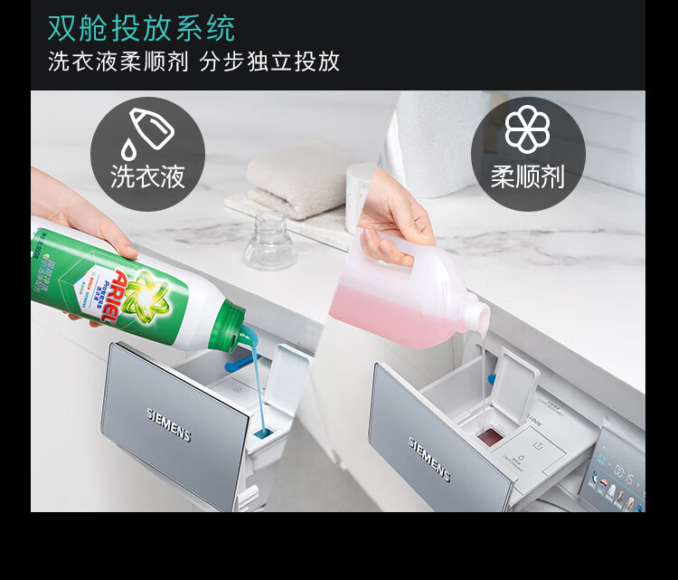 西门子(SIEMENS)iQ500超氧洗烘套装10公斤变频滚筒洗衣机 蒸汽除皱 深层净洗 智能投放 全自动烘干机冷凝器自清洁 WG54K7D00W+WQ55K7U00W