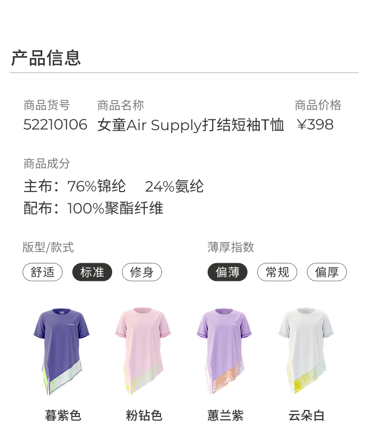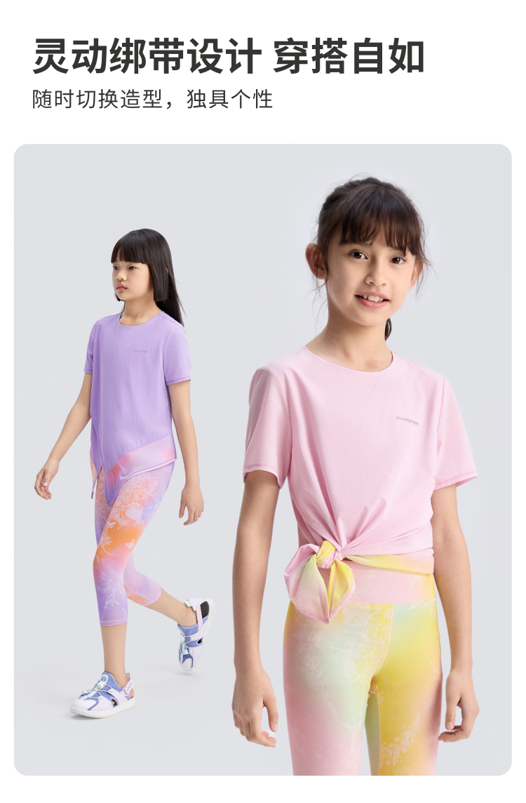 moodytiger女童T恤25夏新轻薄个性打结儿童短袖|Air Supply52210106【DR单】