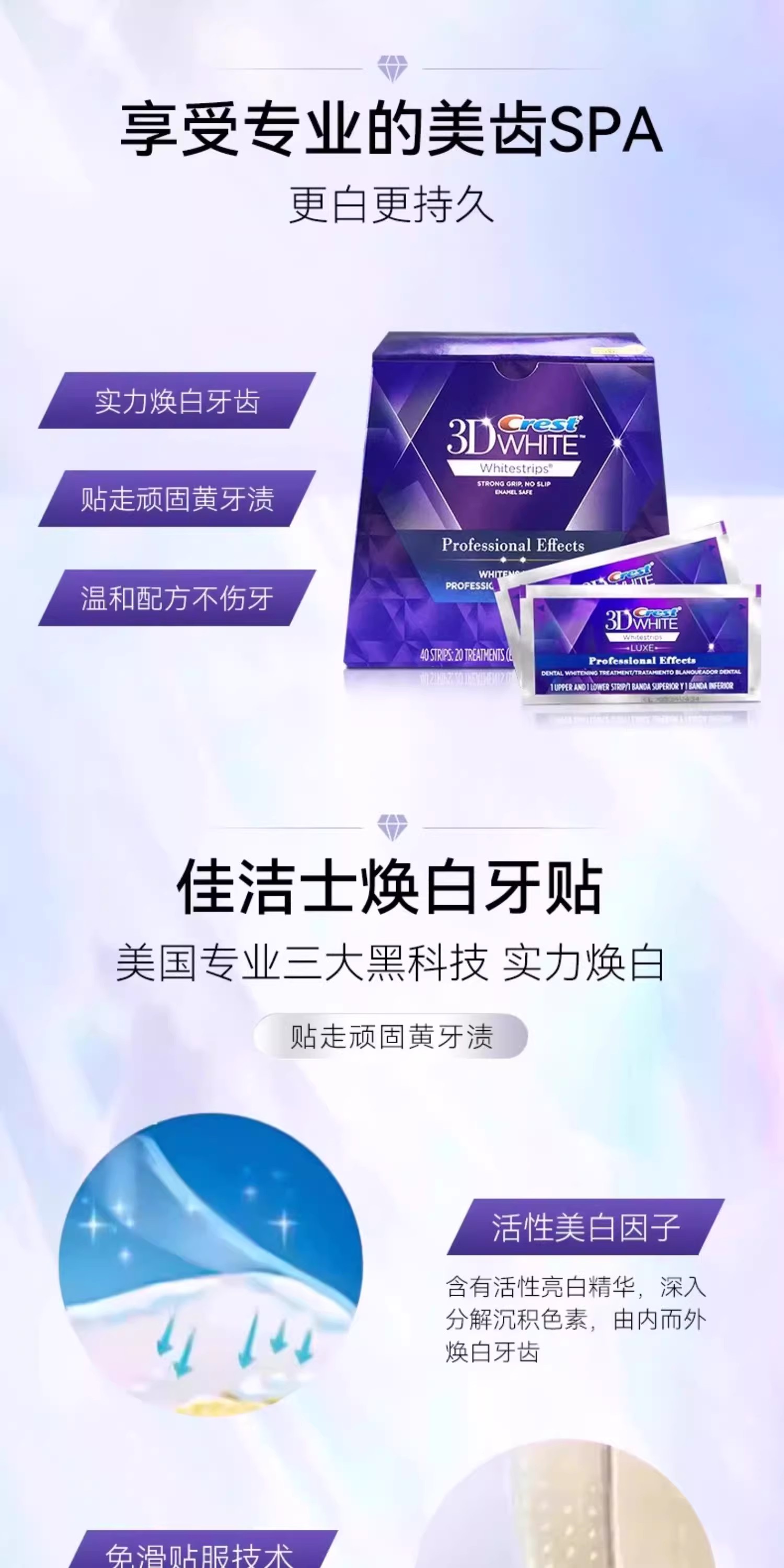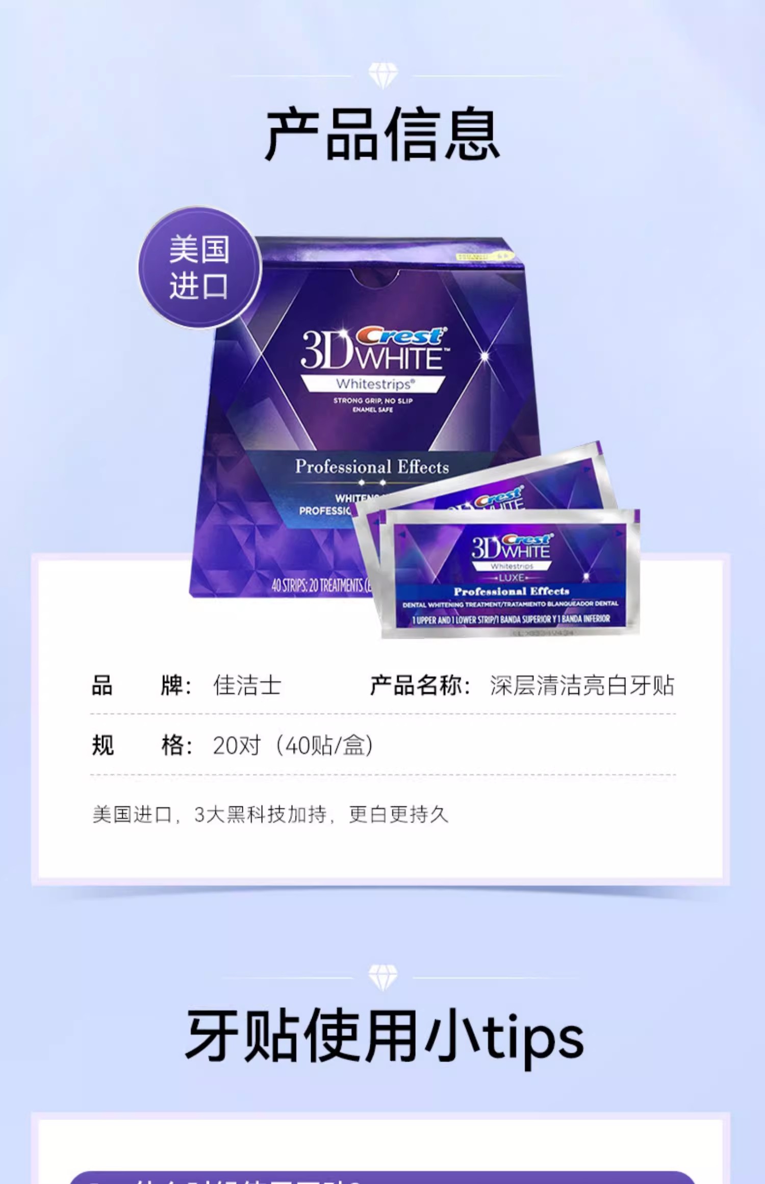 佳洁士 洁亮牙齿美国3D炫亮牙贴 40片