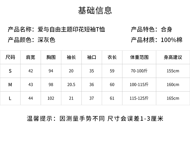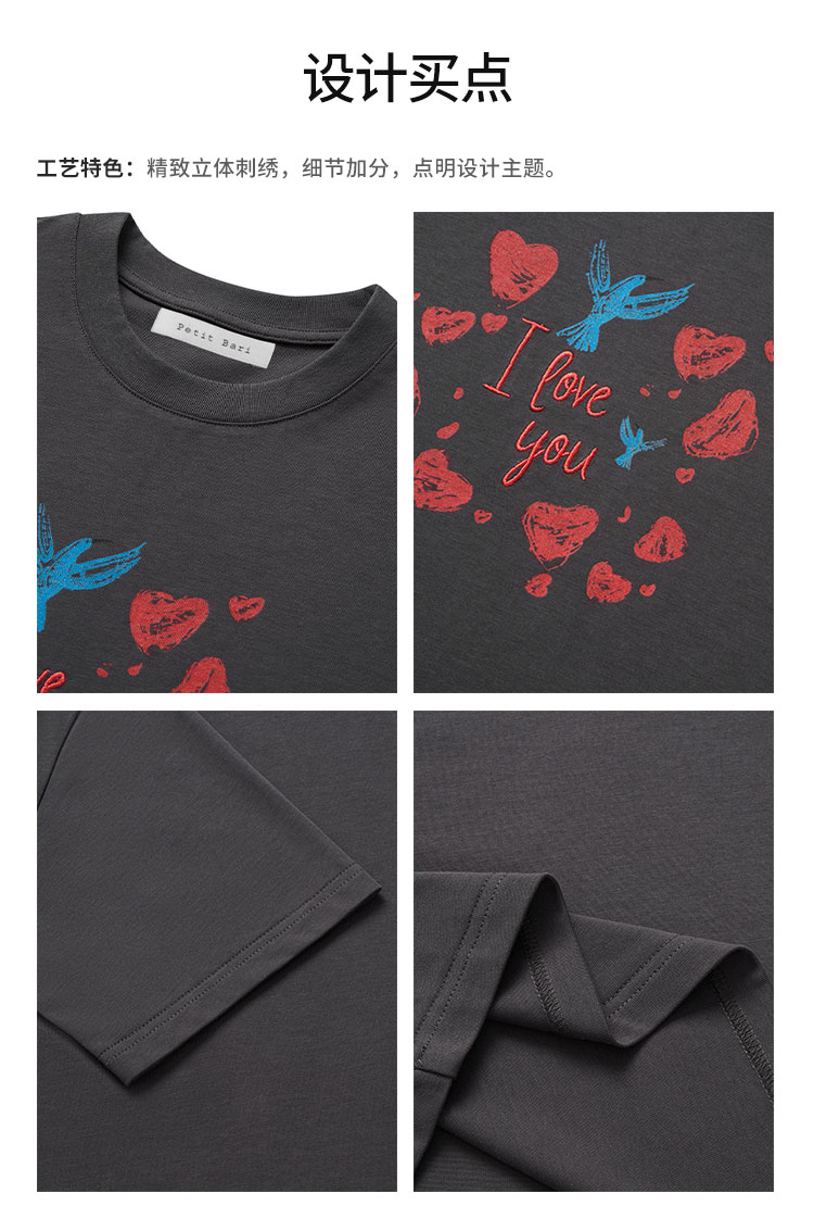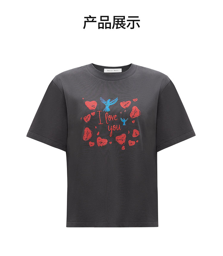 【2件9折】【Petit Bari】爱与自由主题印花短袖T恤宽松