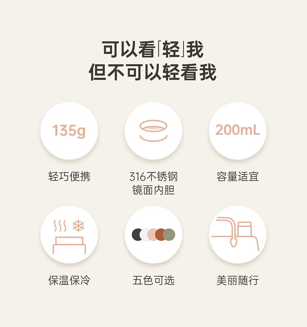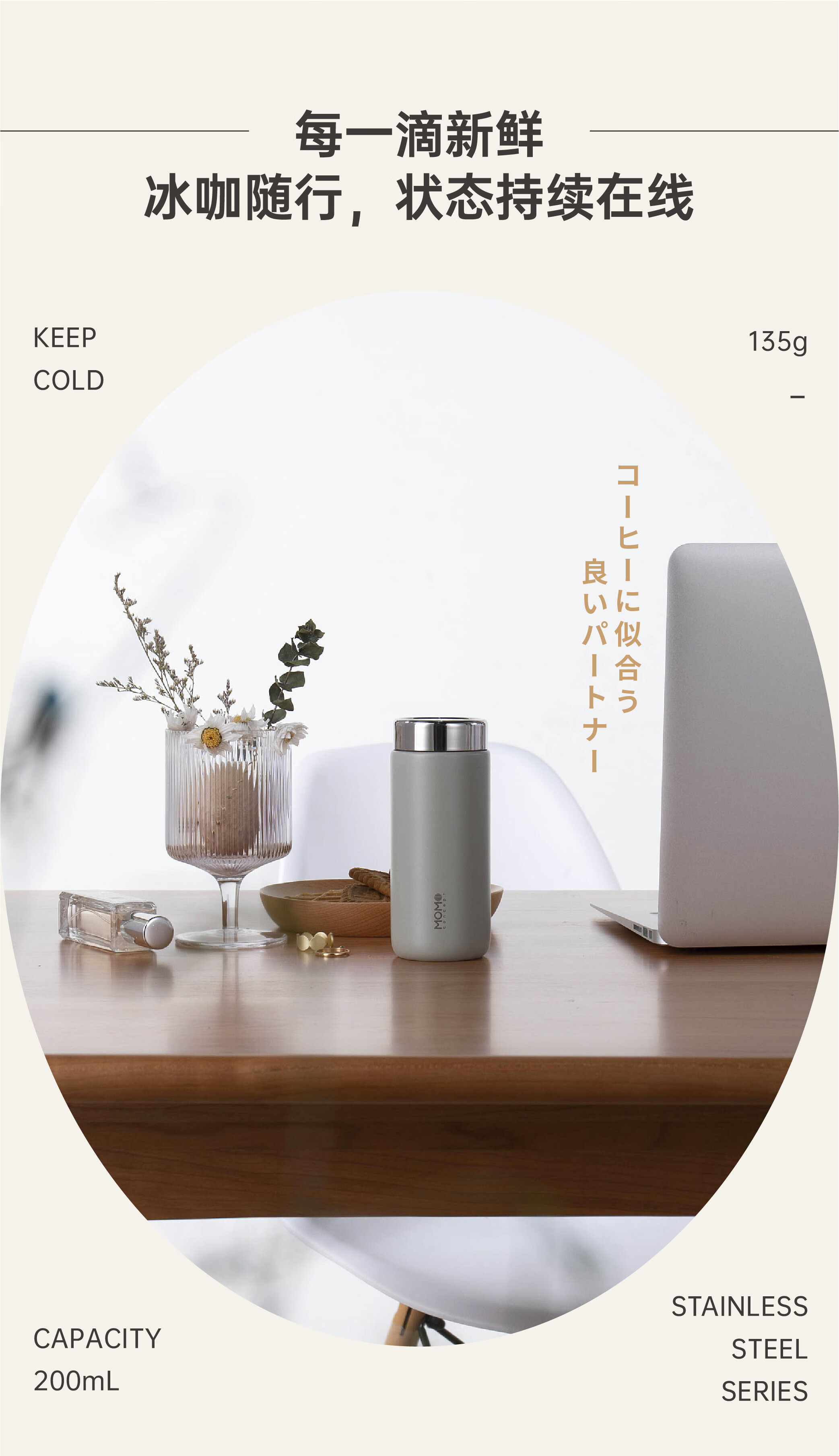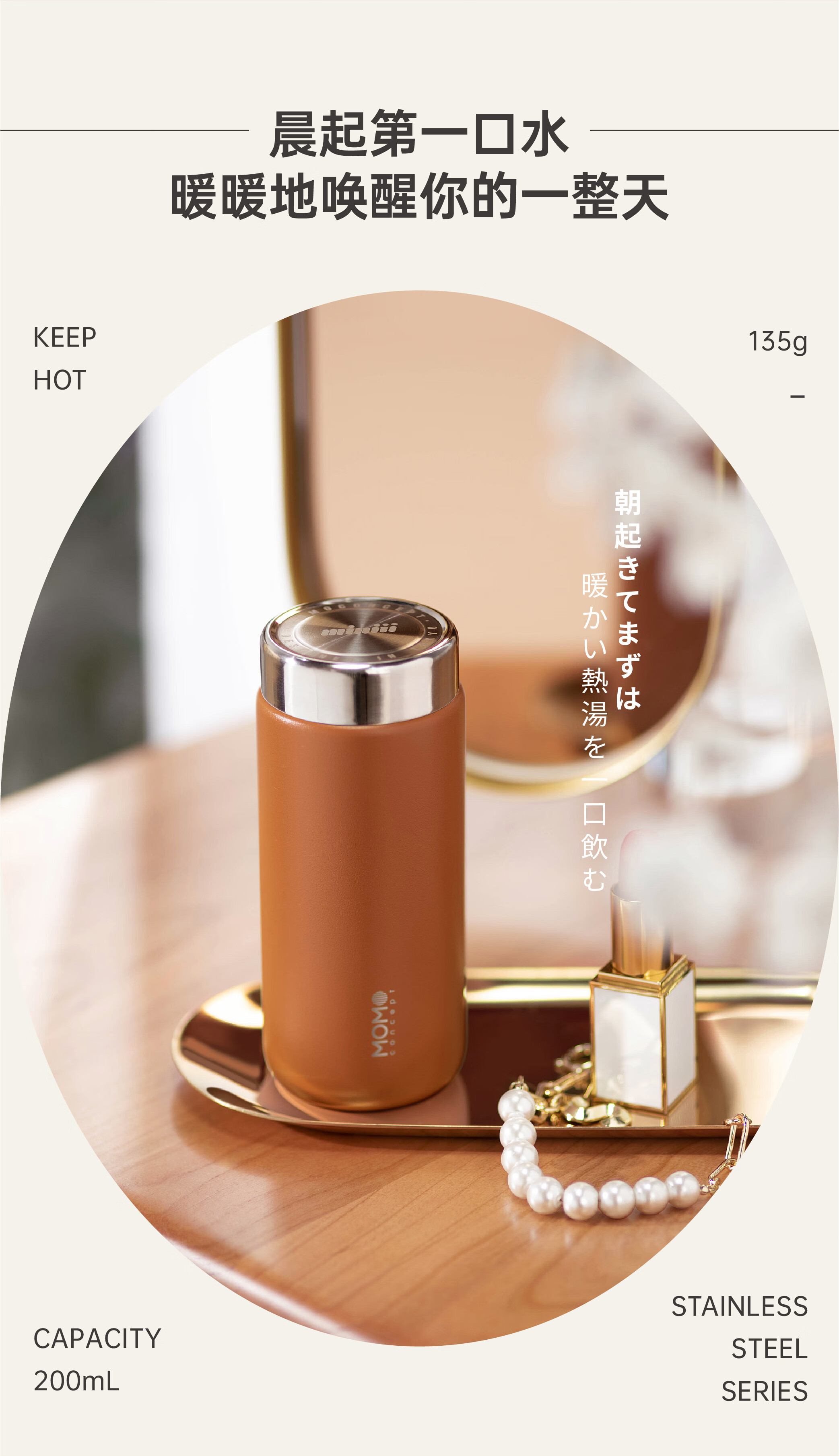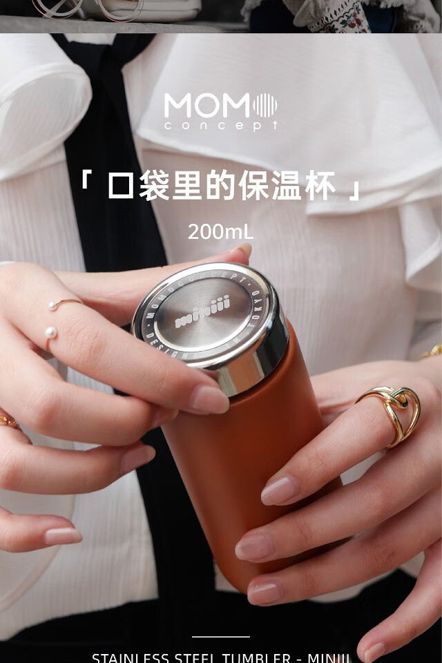 日本MOMO迷你保温杯子女士高颜值小巧可爱便携316不锈钢水杯200ml白