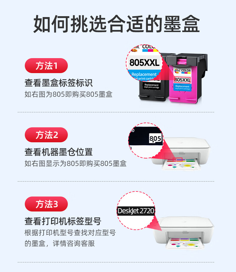绘威惠普805墨盒黑彩色可加墨 适用惠普HP 2720 2721 2723 1210 1212 2330 2332 2722 2729 2700打印机墨盒