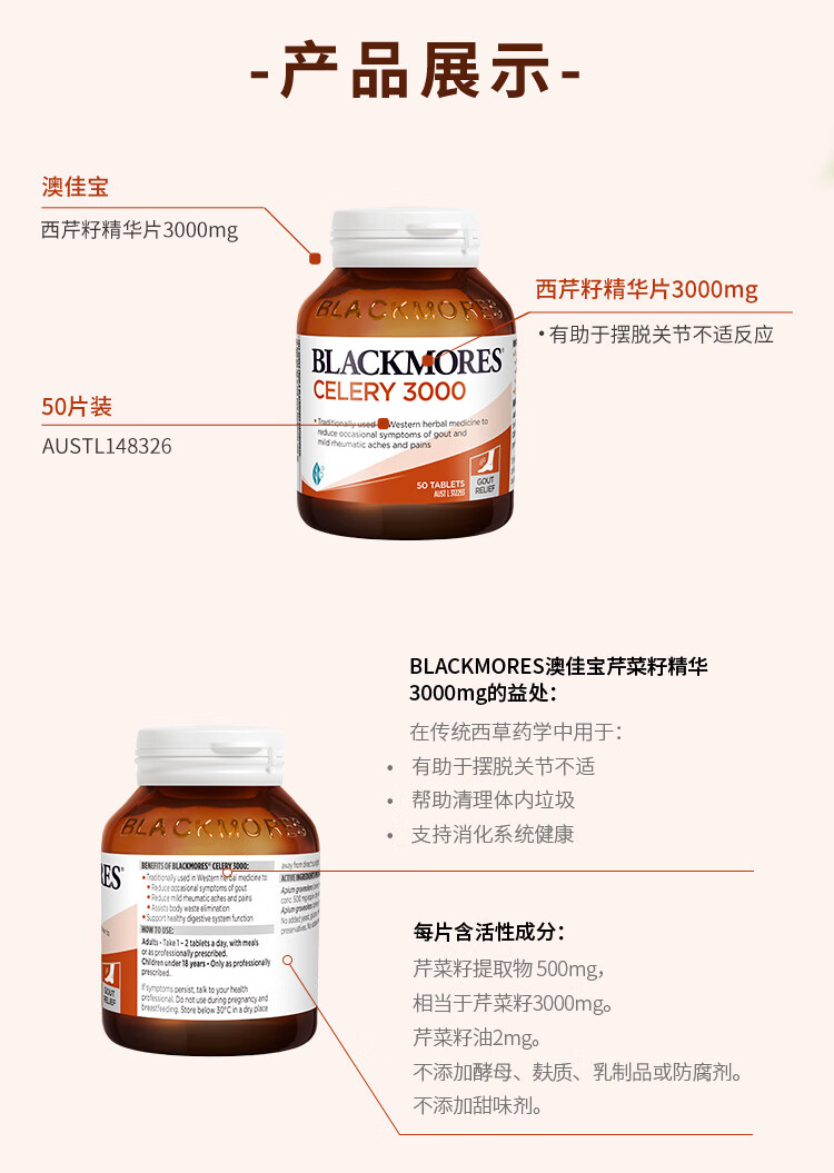 【海豚美购】澳大利亚 BLACKMORES澳佳宝 芹菜籽精华 50粒