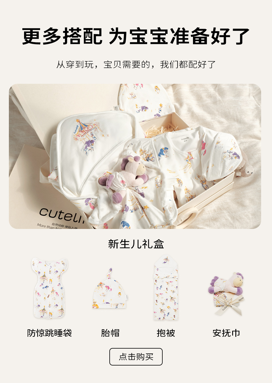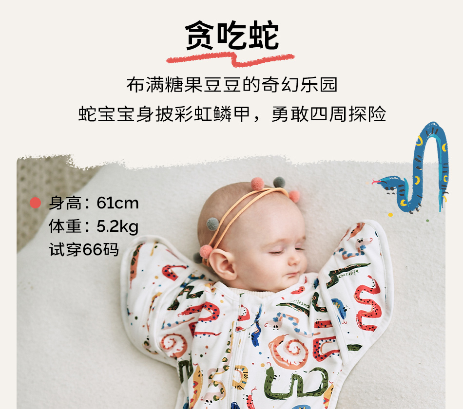 cutelife【竹棉防惊跳睡袋】蛇年新生儿投降式防惊跳睡袋