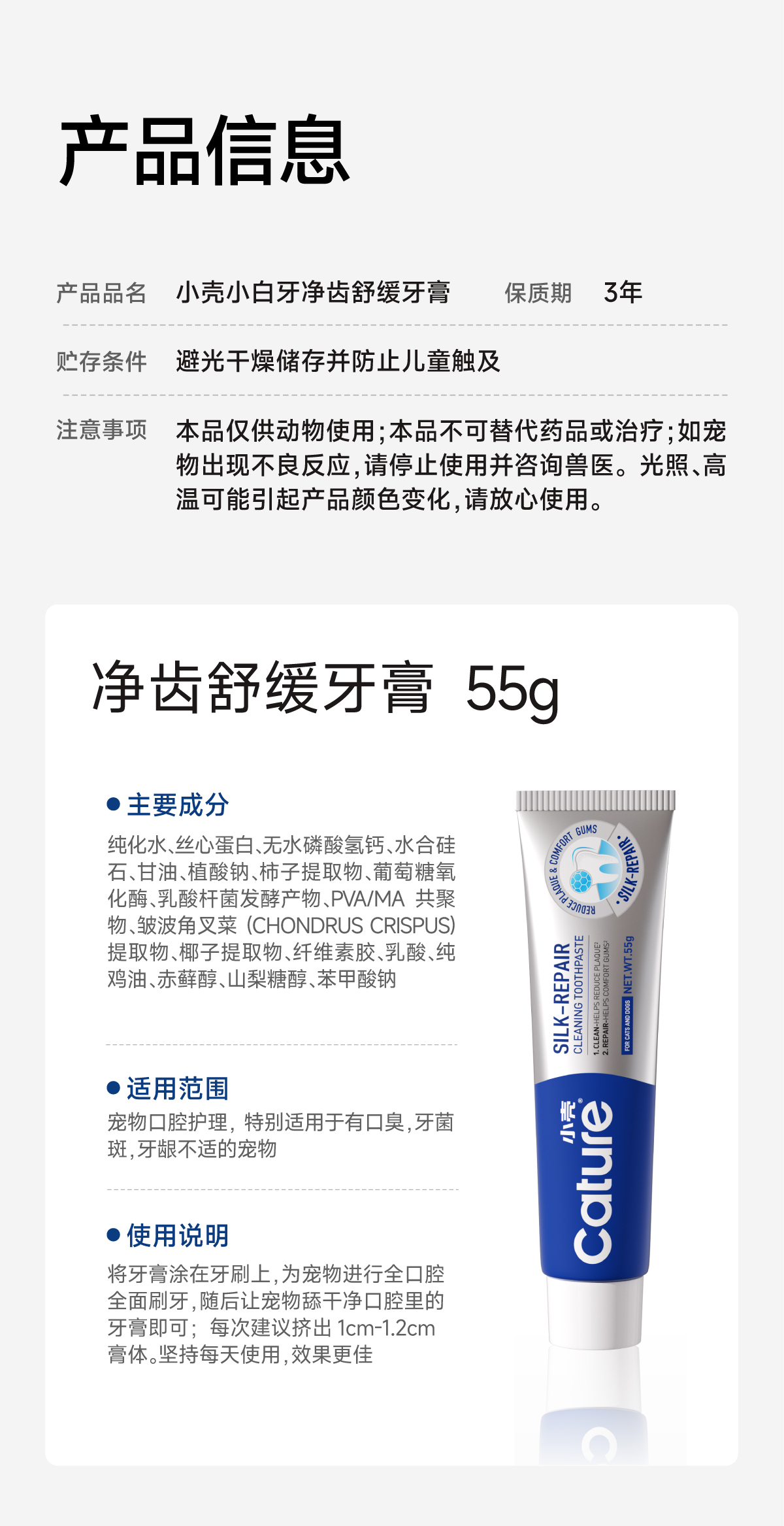 小白牙净齿舒缓牙膏 55g/支(犬猫通用)清洁牙垢舒缓牙龈,可食用