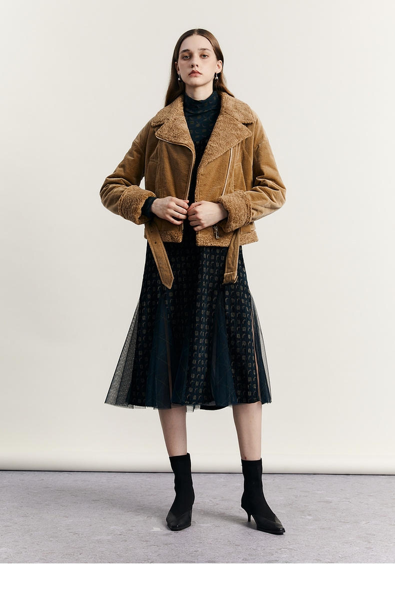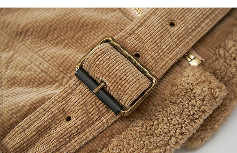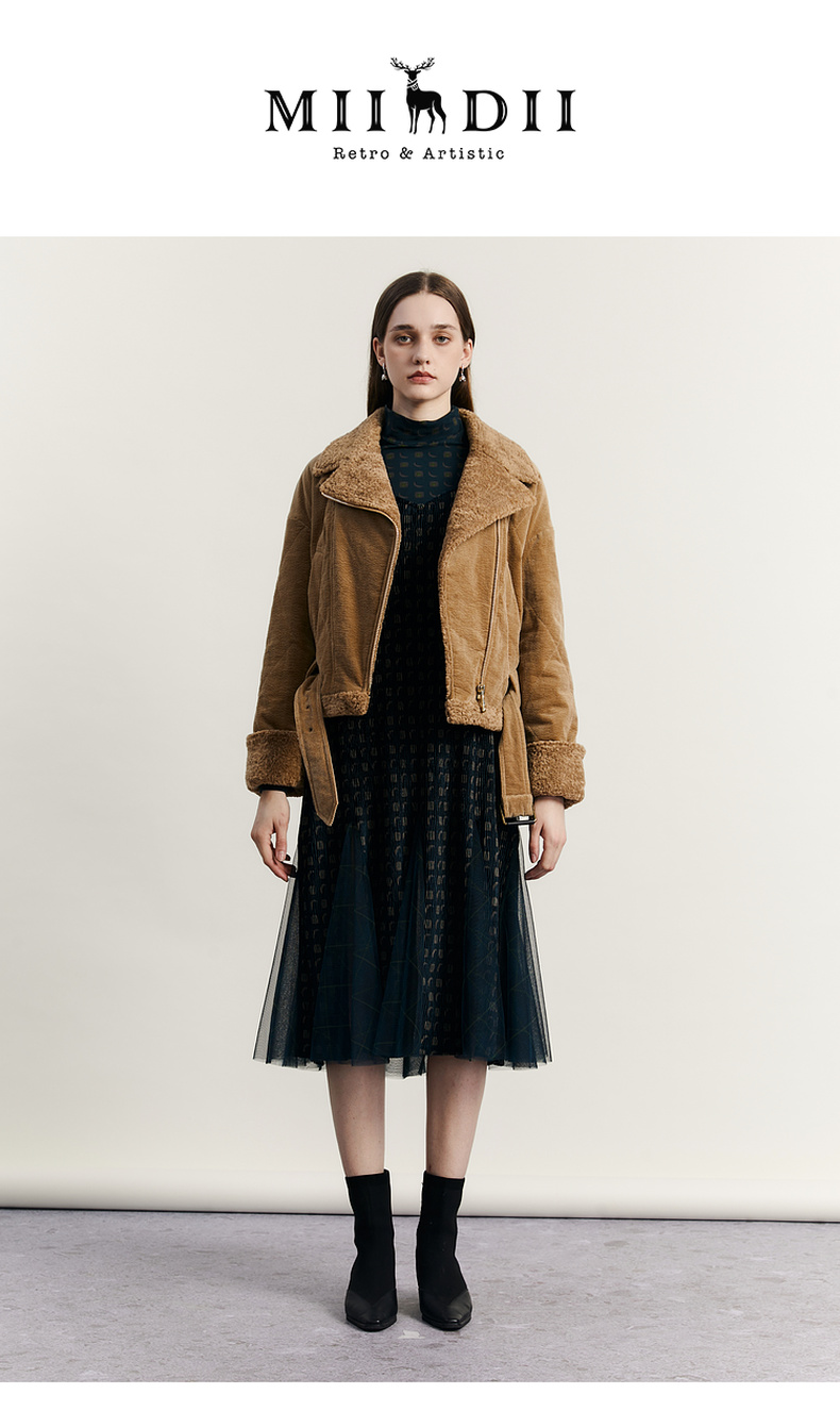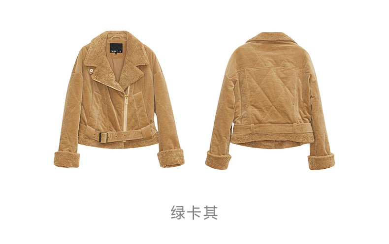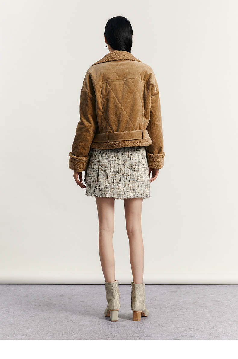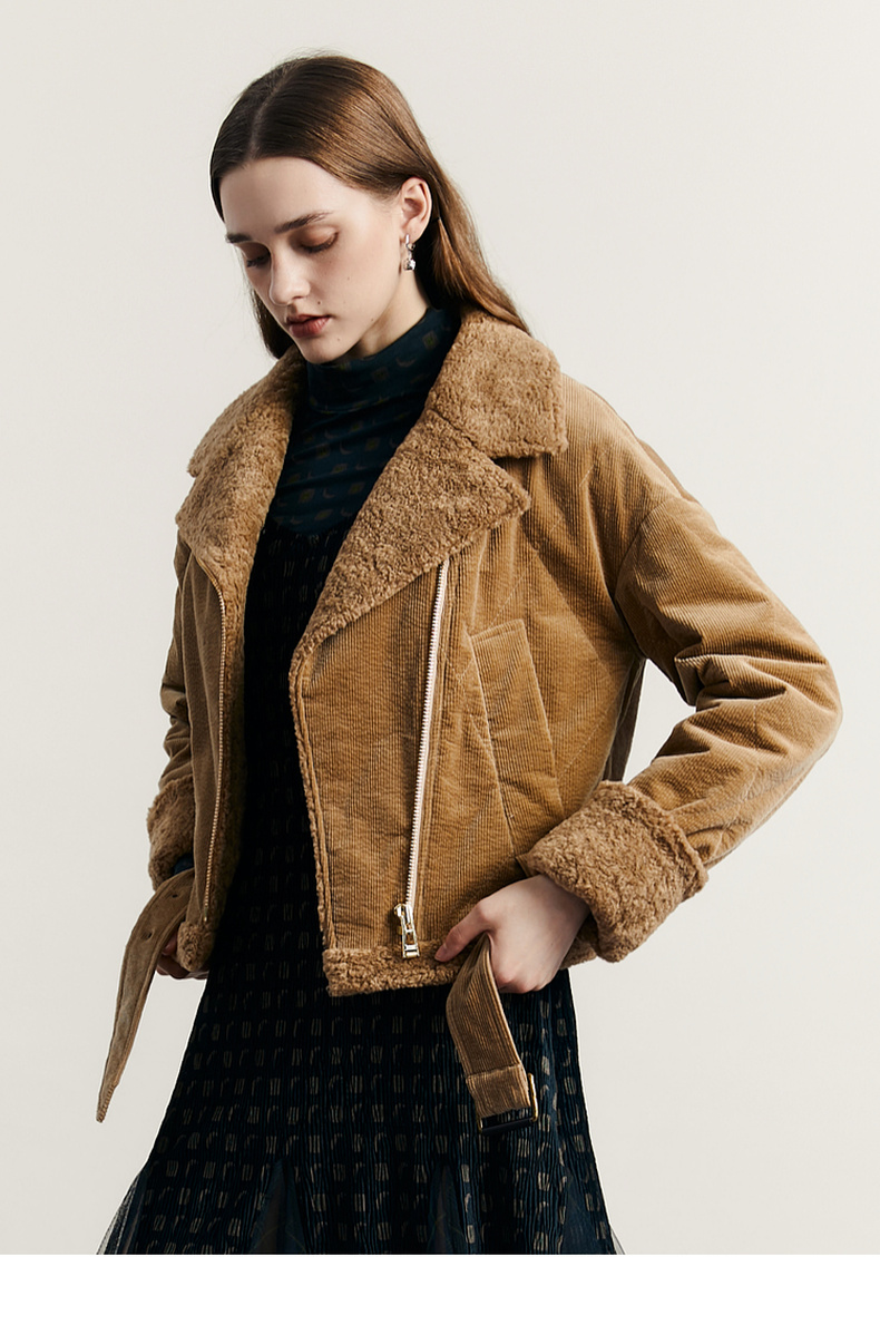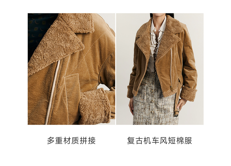 谜底短款棉服女2023秋季新款复古机车风羊羔毛拼接外套233MF1101