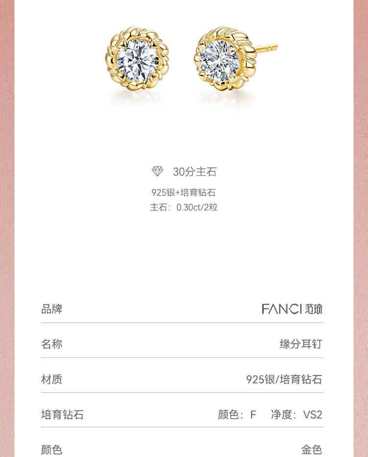 【培育】钻石Fanci范琦 情意绵绵系列 缘分耳钉金色送女生日礼物