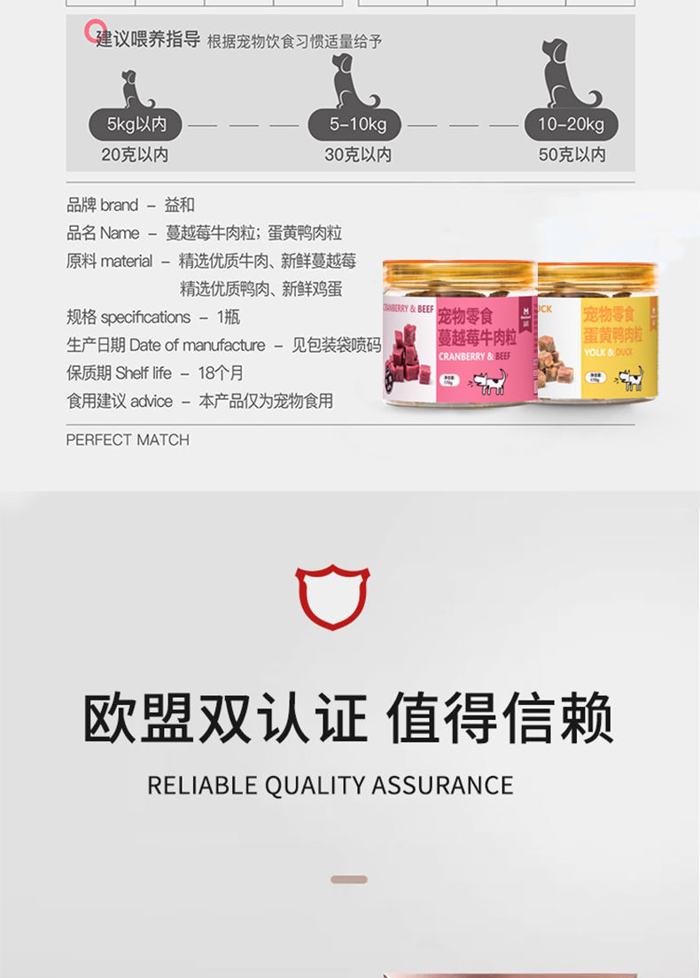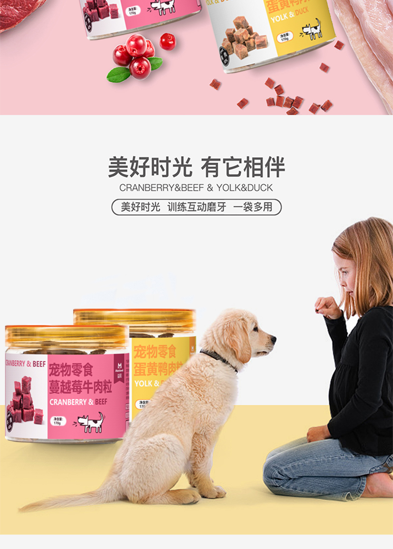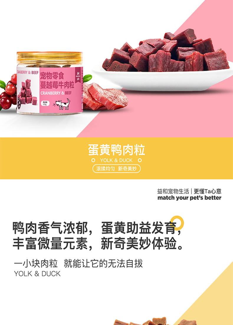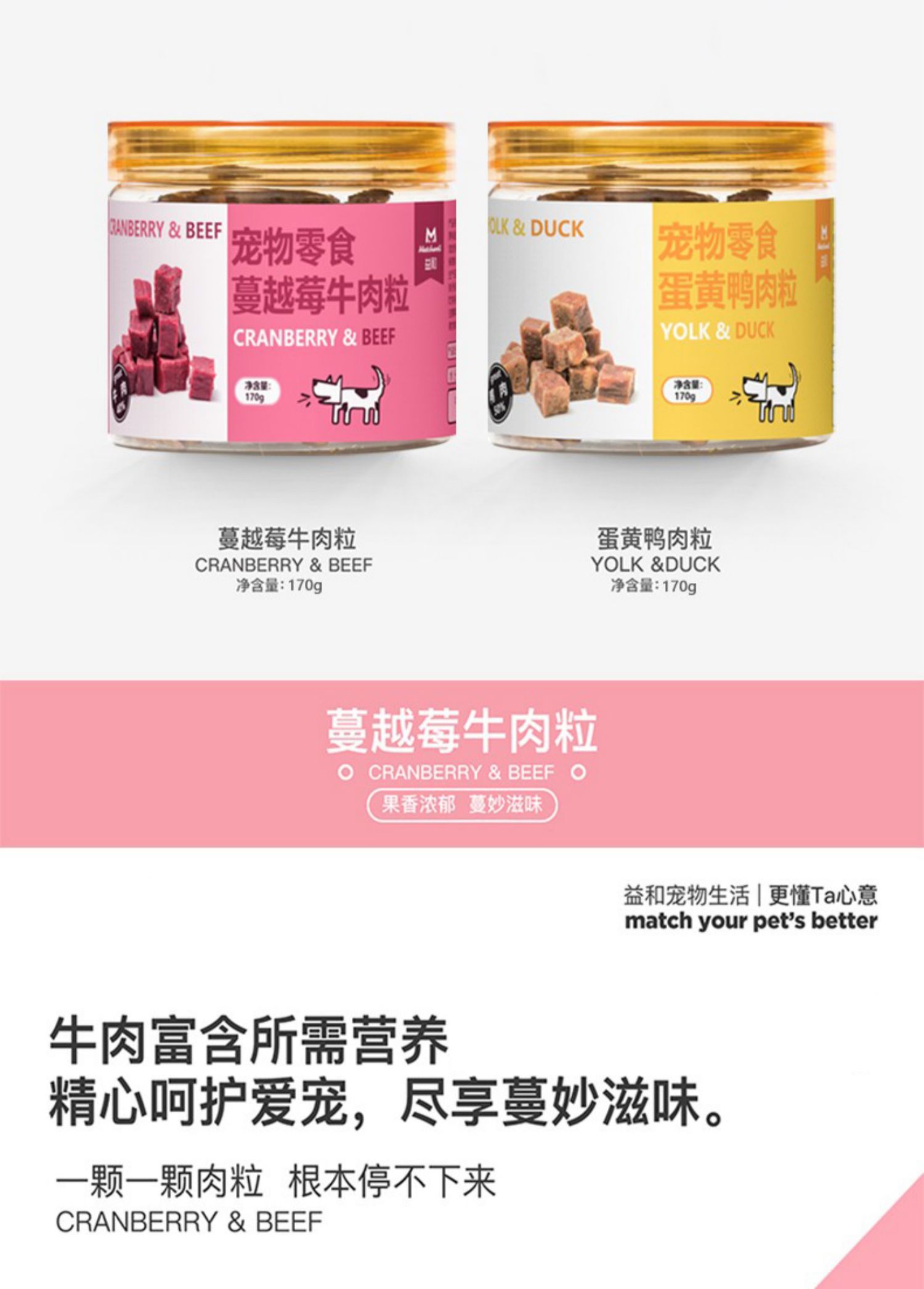 益和狗零食蔓越莓牛肉粒幼犬磨牙补钙蛋黄鸭肉粒成犬训练奖励170g